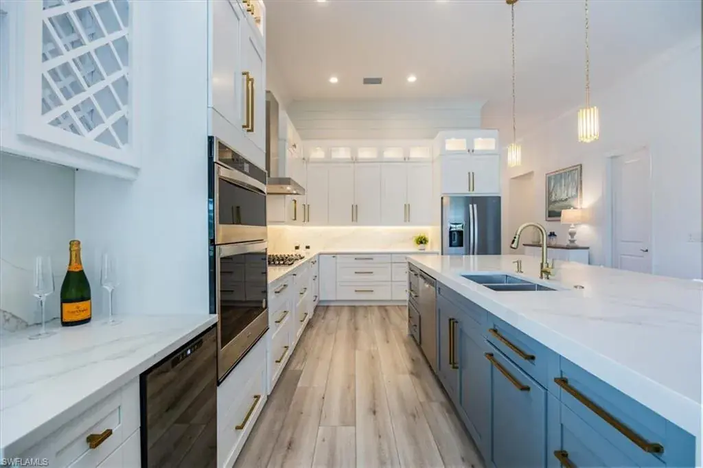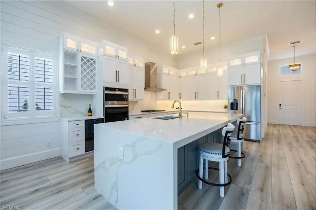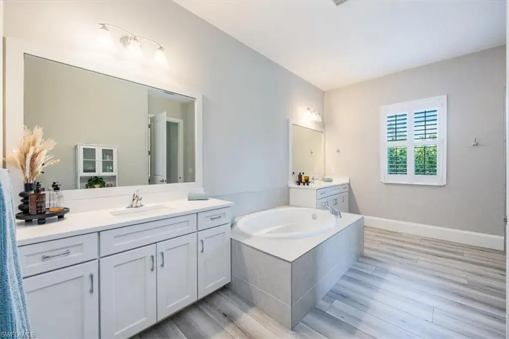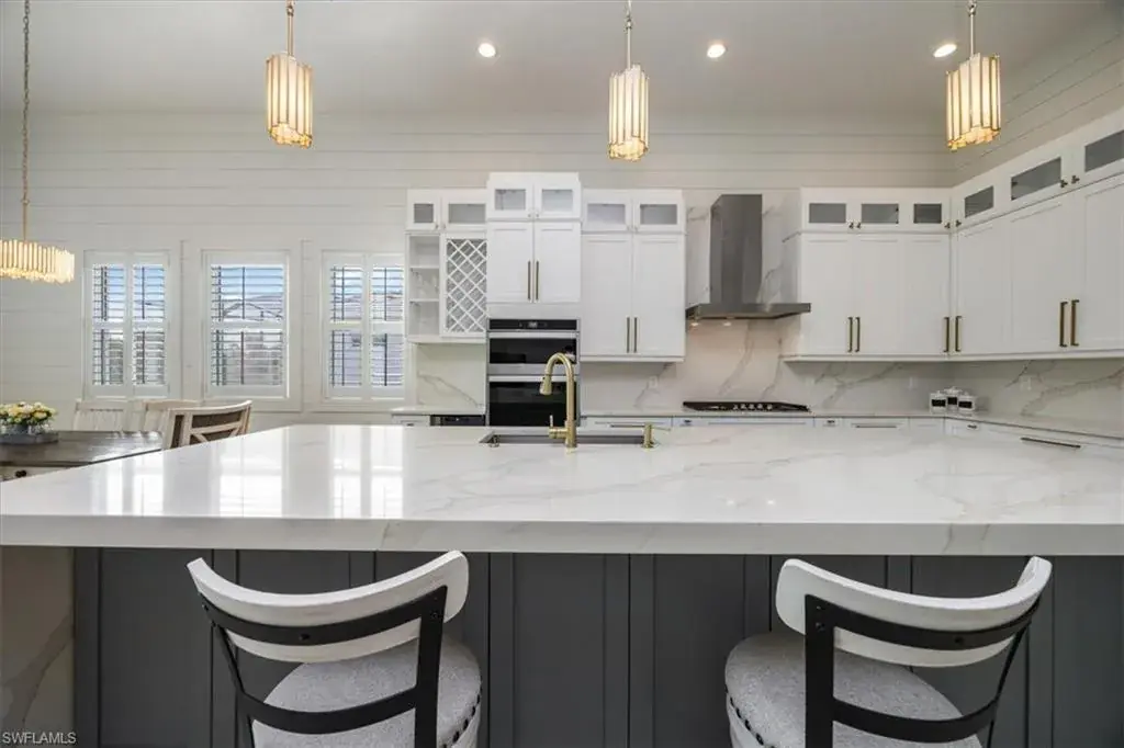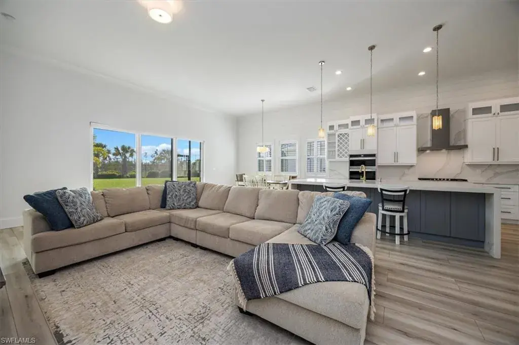 Exceptional Opportunity in Azure at Hacienda Lakes! This stunning home has over 175K in upgrades, and 3-car Garage. Move-in ready and has rarely been occupied (2nd vacation home). It offers a wonderful opportunity to experience luxury living. The expansive Piper Caribbean floor plan is a must-see. Highlights & Upgrades: Chef’s Kitchen: Newly renovated with sleek quartz countertops and backsplash, high-end stainless steel appliances, soft-close cabinetry, two spice racks, a wall oven & microwave, wine/drinks cooler, and a 5-burner natural gas stove. Additional storage in the island and a large walk-in pantry. Premium Finishes: Luxury vinyl flooring throughout, plantation shutters, 12ft ceilings, electrical window treatments in the master bedroom, and sliding doors. Upgraded lighting and fresh paint throughout, with decorative wood shiplap accents in the living room and picture-frame molding in the master bedroom. Spacious Master Suite: Tray ceiling, crown molding, and two walk-in closets. The luxurious master bath boasts white cabinetry with quartz countertops, dual sinks, a soaking tub, a seamless shower, a private water closet, and a linen closet. Additional Features: Den with double French doors, crown molding, and plantation shutters; two guest bedrooms each with en-suite bathrooms, walk-in closets, and a shower/tub combo. A large laundry room with a front-load washer & dryer, a sink, and cabinets. Freshly mulched landscaping, an oversized garage with epoxy floors, keyless entry, an alarm system, and a freezer that is included with the sale. Community & Location: Azure at Hacienda Lakes is a gated community with resort-style amenities, including a pool, spa, tiki hut, BBQ area, meeting rooms, tennis & pickleball courts, fitness center, and an aerobics studio. Located just east of Collier Blvd, it’s near Physicians Regional Medical Center, dining, shopping, and only a short drive to downtown 5th Avenue and Naples Beaches. This is a rare opportunity to own a meticulously maintained, move-in-ready home in one of Naples’ most desirable communities! Don’t miss your chance to experience luxurious living in Azure at Hacienda Lakes!
