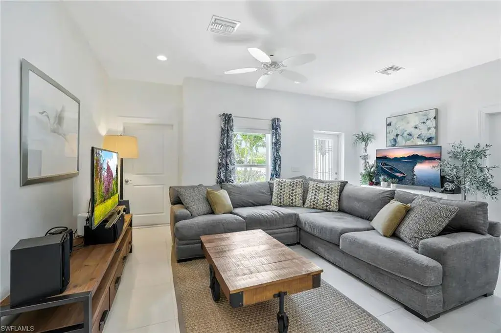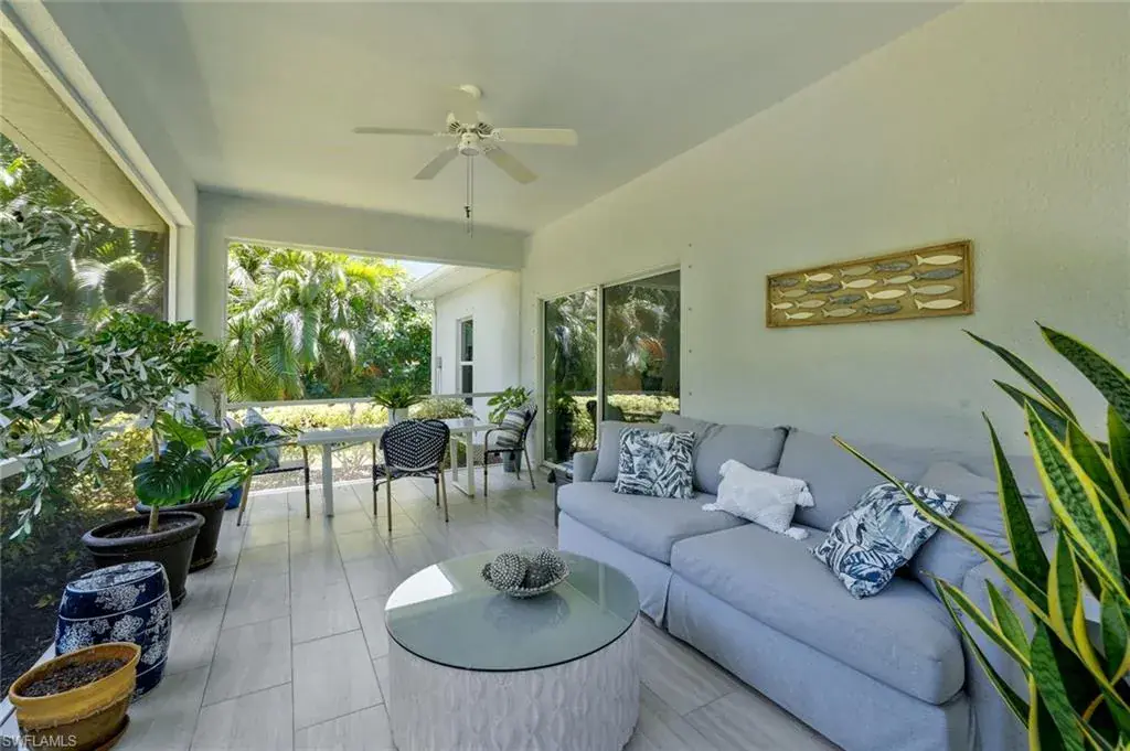 Enjoy Naples’ year-round sunshine in your private tropical oasis with a covered lanai (12×24 travertine porcelain tile), extended patio, lush landscaping, and an outdoor shower—ideal for relaxing mornings or evening cocktails. A 1-car garage and extended driveway provide ample parking and storage.
