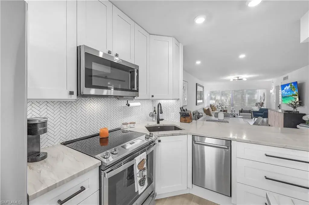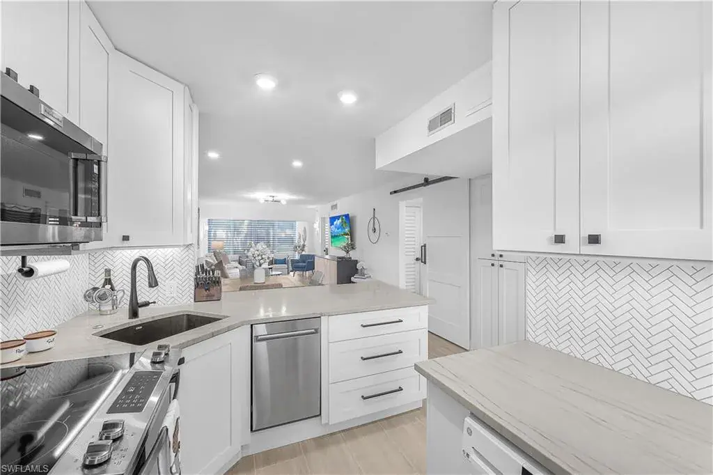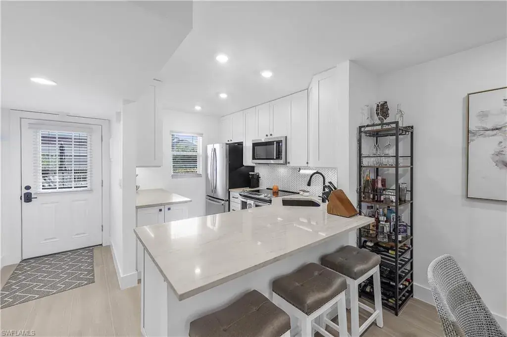 Experience what Naples is all about at Coquina Sands` Banyan Club! Expect luxury, and quality at every corner in this masterfully crafted condo. Entirely renovated and re-imagined, featuring 2 bedrooms, and 2 baths at over 1,000 Sqft. The light, bright, and airy open-concept design seamlessly connects spacious living areas with two generously sized bedrooms, creating a harmonious flow throughout the home. At the heart of this exquisite condo is a strategically designed kitchen, perfect for culinary enthusiasts and entertainers alike. With ample storage, in-unit laundry, and an oversized countertop that comfortably seats three, this kitchen is both functional and stylish. Ideally located in the heart of Naples, Lowdermilk beach access and the new Four Seasons are only a block away. Easy access to local eateries, and shopping along 5th Ave S, 3rd Ave S, Venetian Village, Bayfront, and Tin City – which are perfect for any lifestyle. Act quickly—opportunities like this in Coquina Sands are rare and fleeting. Available immediately! Come see the absolute best of what Naples has to offer, fall in love, and move right in!