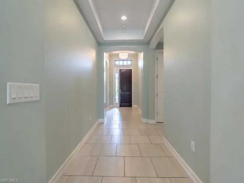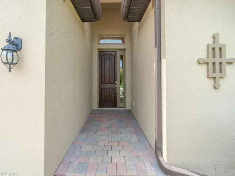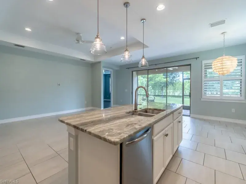 Modern comfort meets North Naples convenience. Welcome to 16374 Barclay Ct — a beautifully maintained, contemporary home nestled in the desirable gated community of Barrington Cove in North Naples. Built in 2019, this residence offers just over 2,000 square feet of thoughtfully designed living space, blending functionality and style across a spacious open floor plan. Step inside to discover a bright, airy foyer that flows seamlessly into the kitchen and dining areas — ideal for both everyday living and entertaining. The kitchen boasts quartz countertops, stainless steel appliances, a large island with breakfast bar seating, and walk in pantry. Large sliding glass doors invite natural light with southern exposure that leads out to a covered lanai and private backyard — perfect for morning coffee or evening gatherings. This split-bedroom floor plan ensures privacy, with a generous primary suite featuring dual walk-in closets and a luxurious en-suite bath with dual vanities and a walk-in shower. Additional bedrooms provide flexibility for guests, a home office, or a growing family. The den has a built in murphy bed. Situated on a quiet cul-de-sac street, this home offers peace and privacy while still being just minutes from top-rated schools, shopping, dining, and the pristine Gulf beaches. With low HOA fees and no CDD, 16374 Barclay Ct combines comfort, location, and value — a rare find in today’s market!