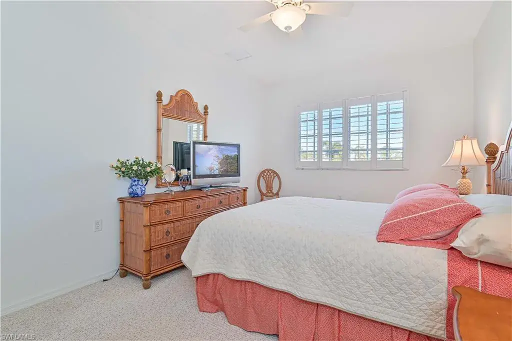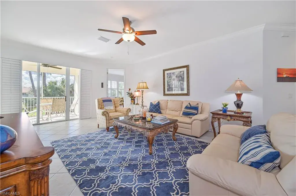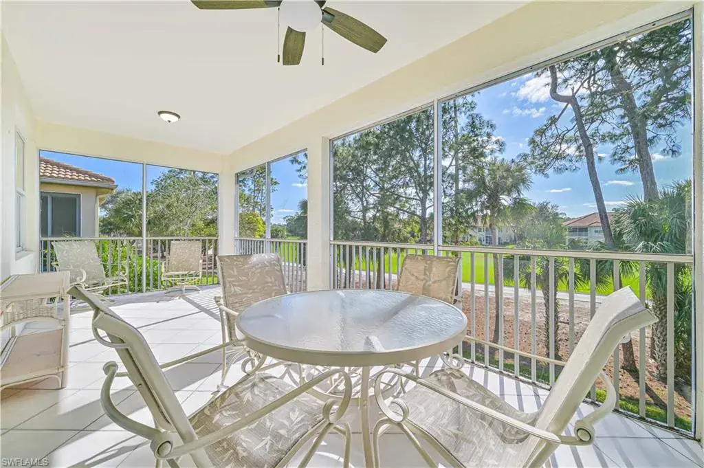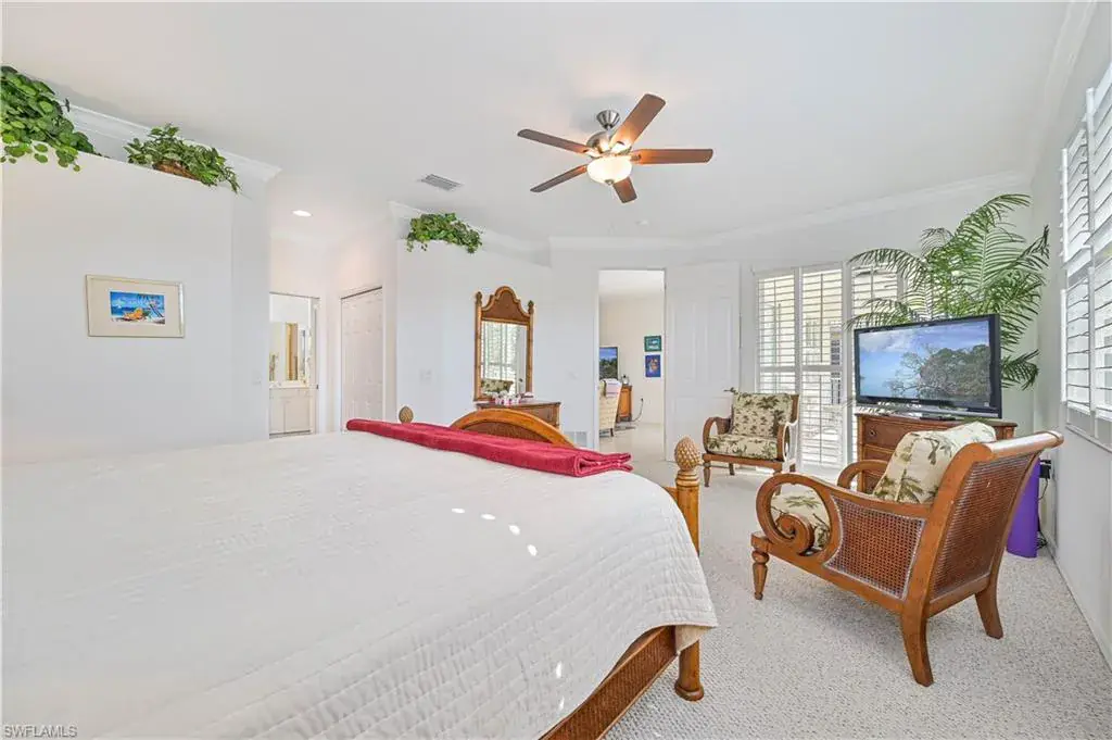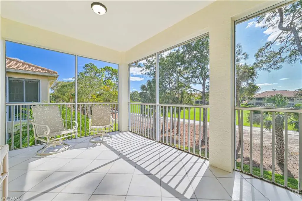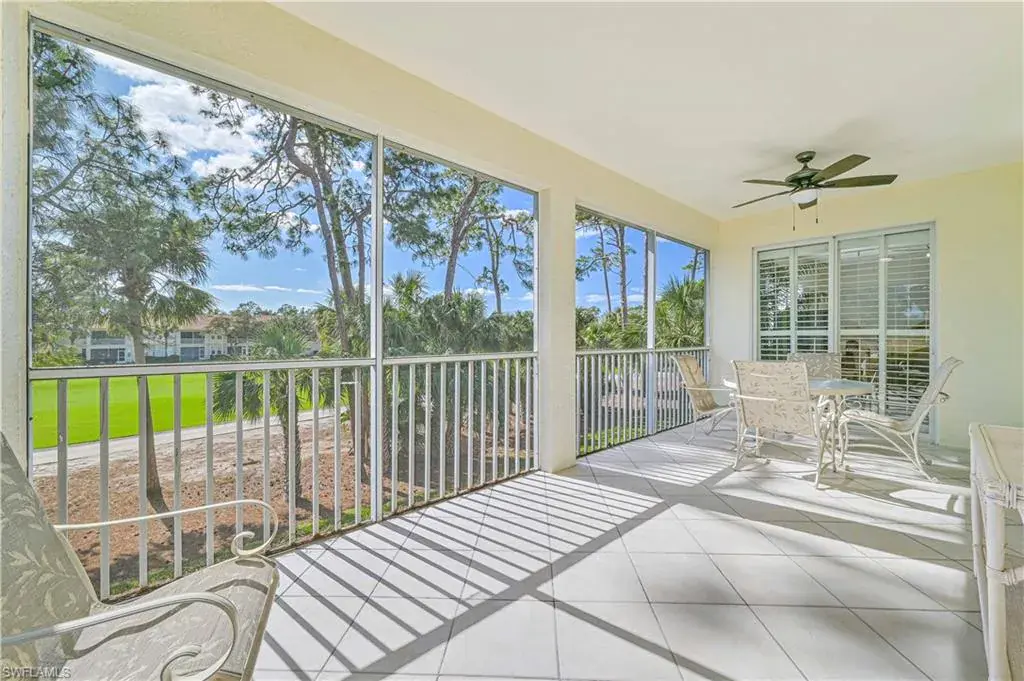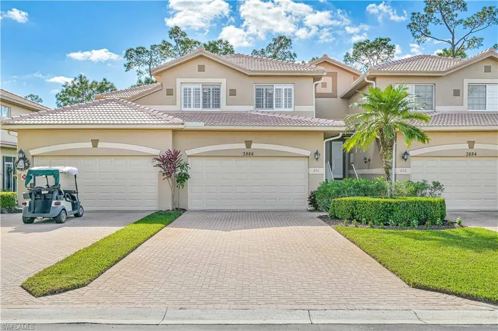 Step into this stunning 2nd-floor turnkey carriage home, offering nearly 2,200 square feet of well-appointed living space with breathtaking views of the newly renovated, $10 million championship golf course. Perfectly situated overlooking the 6th hole, this home is your chance to embrace the finest in golf course living within the highly desirable bundled golf community of Forest Glen. All of the bedrooms are larger than expected, providing ample space for comfort and relaxation. The home boasts southern exposure, ensuring plenty of natural light and sunny days. As the original owner, this meticulously maintained home has never been rented and has been thoughtfully upgraded with a brand new roof installed (9/2024) and a new A/C system (2023), ensuring peace of mind and modern efficiency. Inside, you’ll find a well-designed layout with diagonal tile flooring in the main living areas, cozy berber carpet in the bedrooms, plantation shutters, and elegant crown molding throughout the main living areas and primary bedroom. The primary suite offers a private retreat with walk-in closets featuring custom organizers and an en-suite bath with dual sinks, a soaking tub, and a walk-in shower. Enjoy the added convenience of impact windows and doors, providing safety and ease of living. The spacious two-car garage offers ample room for additional storage or a workshop. Just a short walk to the clubhouse and all of its exceptional amenities, you’ll find yourself enjoying world-class golf, tennis, pickleball, bocce, and outstanding dining options. The recently enhanced 18-hole course, designed by Arthur Hills and Steve Forrest, is a golfer’s dream. Residents also have access to a state-of-the-art fitness center, daily fitness classes, and scenic trails for biking or jogging through the beautiful preserve. With the Gulf beaches and downtown Naples just a short drive away, this home offers the perfect balance of peaceful living and easy access to everything the area has to offer. Don’t miss this incredible opportunity to experience the best of Southwest Florida living—move in just in time to enjoy the rest of the season!
