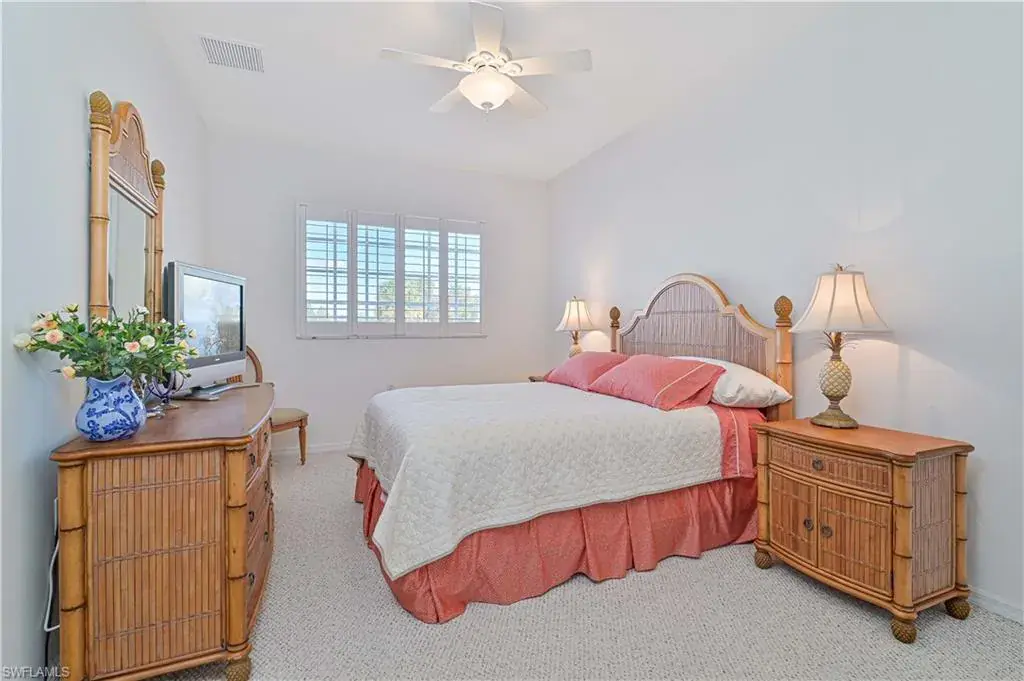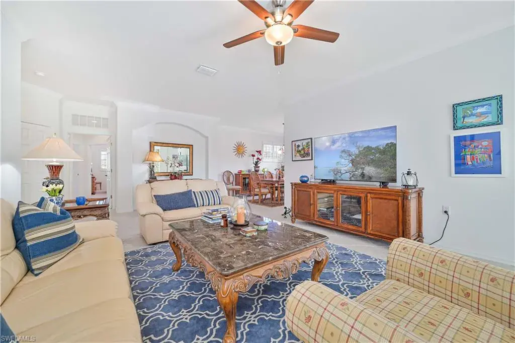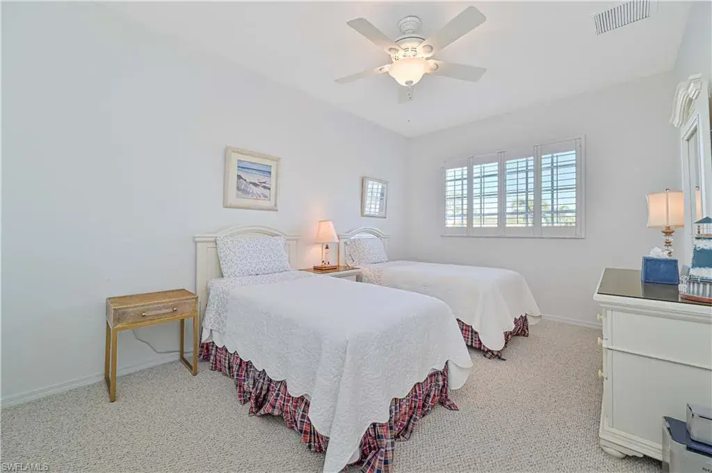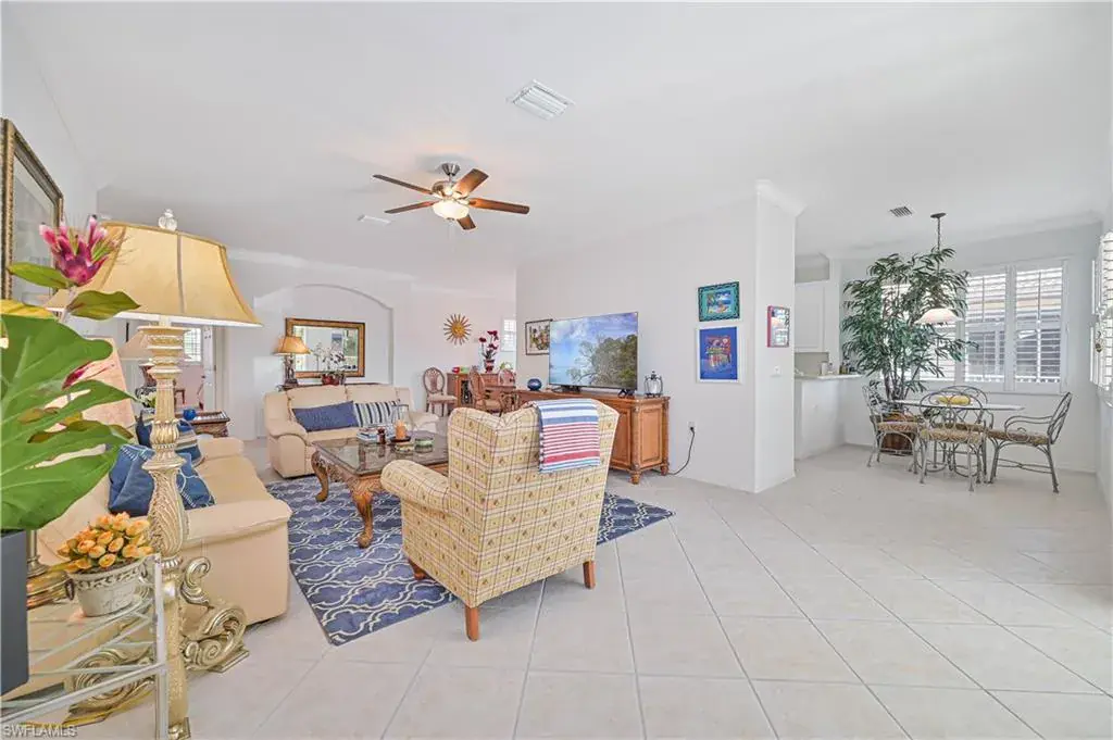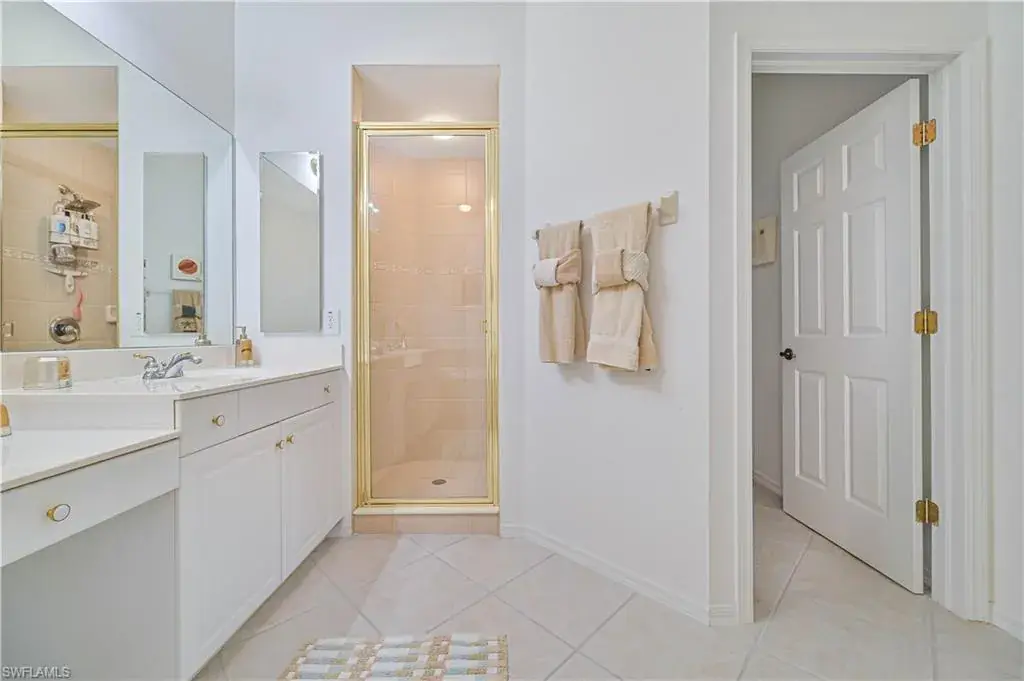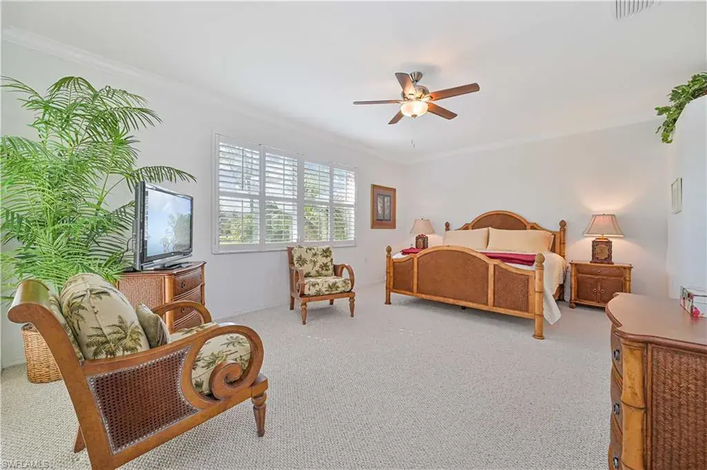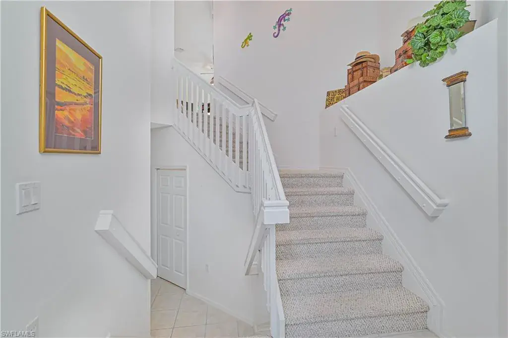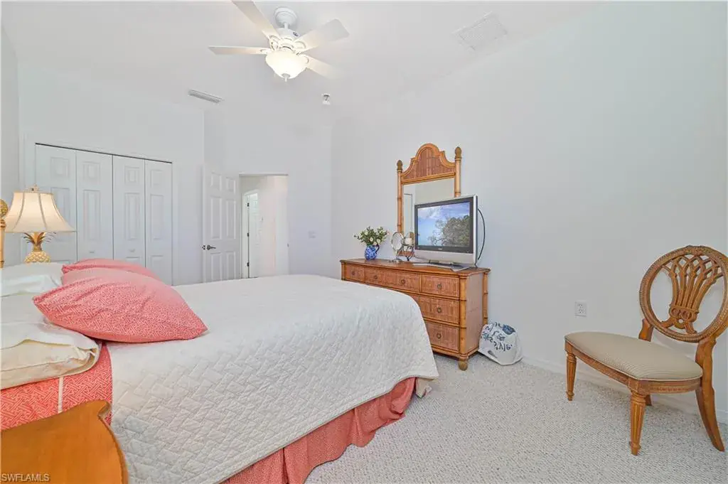 Step into this stunning 2nd-floor turnkey carriage home, offering nearly 2,200 square feet of well-appointed living space with breathtaking views of the newly renovated, $10 million championship golf course. Perfectly situated overlooking the 6th hole, this home is your chance to embrace the finest in golf course living within the highly desirable bundled golf community of Forest Glen. All of the bedrooms are larger than expected, providing ample space for comfort and relaxation. The home boasts southern exposure, ensuring plenty of natural light and sunny days. As the original owner, this meticulously maintained home has never been rented and has been thoughtfully upgraded with a brand new roof installed (9/2024) and a new A/C system (2023), ensuring peace of mind and modern efficiency. Inside, you’ll find a well-designed layout with diagonal tile flooring in the main living areas, cozy berber carpet in the bedrooms, plantation shutters, and elegant crown molding throughout the main living areas and primary bedroom. The primary suite offers a private retreat with walk-in closets featuring custom organizers and an en-suite bath with dual sinks, a soaking tub, and a walk-in shower. Enjoy the added convenience of impact windows and doors, providing safety and ease of living. The spacious two-car garage offers ample room for additional storage or a workshop. Just a short walk to the clubhouse and all of its exceptional amenities, you’ll find yourself enjoying world-class golf, tennis, pickleball, bocce, and outstanding dining options. The recently enhanced 18-hole course, designed by Arthur Hills and Steve Forrest, is a golfer’s dream. Residents also have access to a state-of-the-art fitness center, daily fitness classes, and scenic trails for biking or jogging through the beautiful preserve. With the Gulf beaches and downtown Naples just a short drive away, this home offers the perfect balance of peaceful living and easy access to everything the area has to offer. Don’t miss this incredible opportunity to experience the best of Southwest Florida living—move in just in time to enjoy the rest of the season!