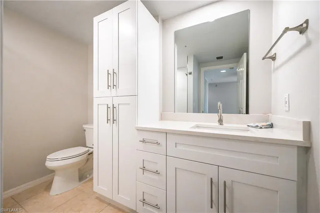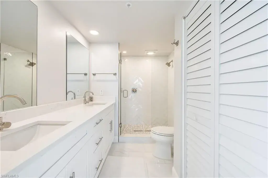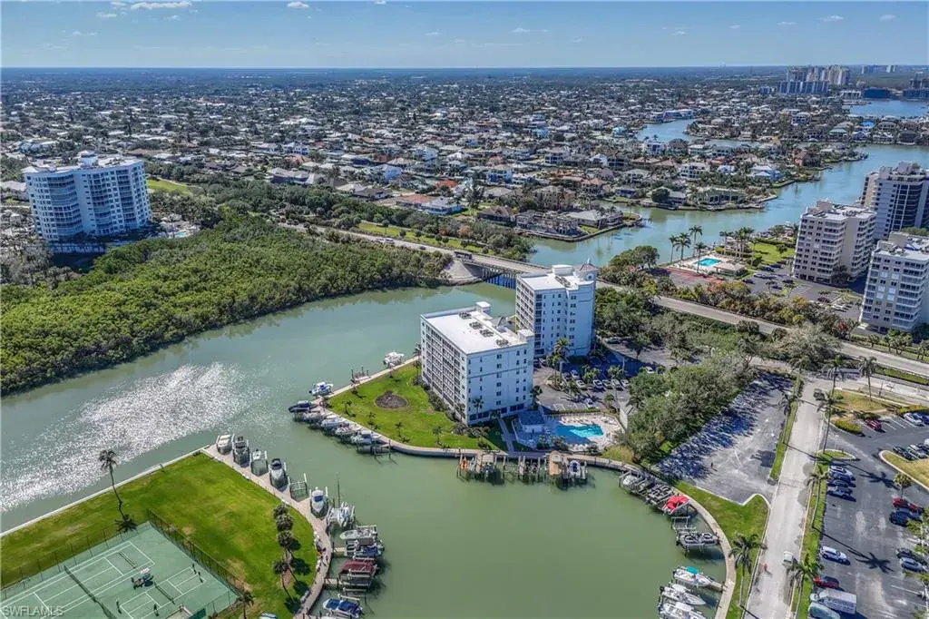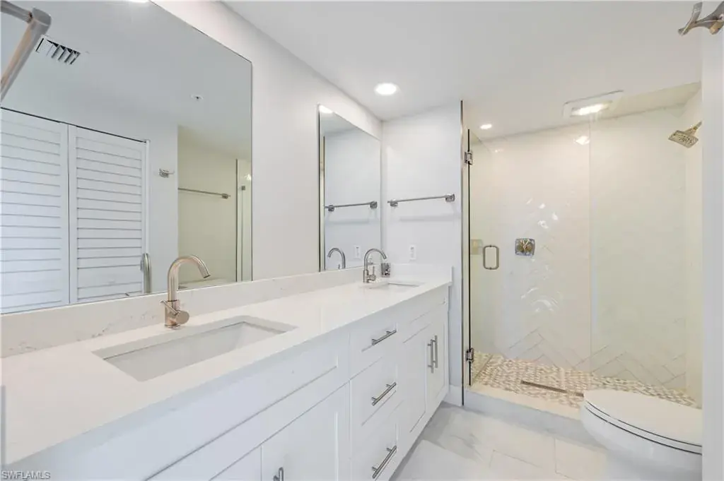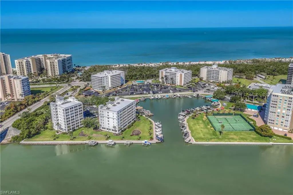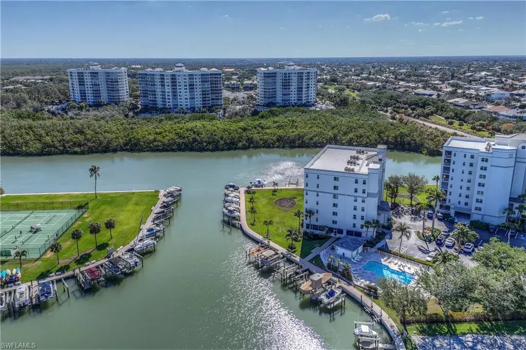 Sweeping and unobstructed long bay and inter-coastal views from every window of this pet friendly, light and bright end unit, 3 bedroom condo with 52 weekly rentals allowed (approix. $3,000 per week in season)! RARELY AVAILABLE BOAT DOCK & LIFT available for $50,000 and UNDER BUILDING PARKING SPOT also available FOR $40,000 (buyer has first right of refusal to purchase either/both separately). Both bathrooms have been totally and recently updated with all of the latest modern coastal finishes. The open kitchen has granite countertops and solid wood cabinets with pull out drawers. All windows have been replaced with high impact adding to your peace of mind in this spacious condo with tankless water heater and plenty of storage. Built in 1995, Baypoint is a mid-rise, low density building, just steps to Vanderbilt and Delnor-Wiggins Pass beaches on the coveted Baker Carroll Point peninsula. 33 Bluebill Ave. also boasts a beautiful, waterfront pool and hot tub next to the private marina and is minutes to Naples fine dining, shops and entertainment. Beach, boating and beauty–have it all (including your pup) in Baypoint!