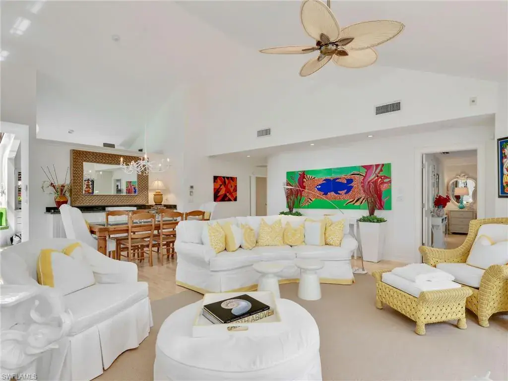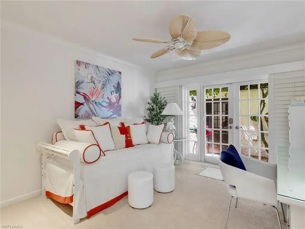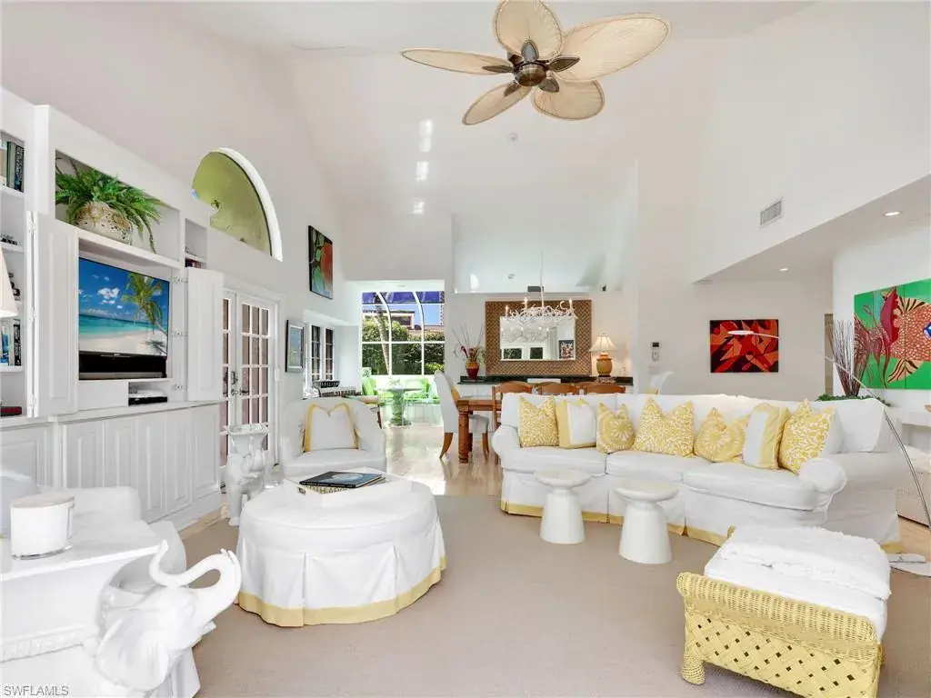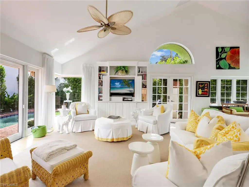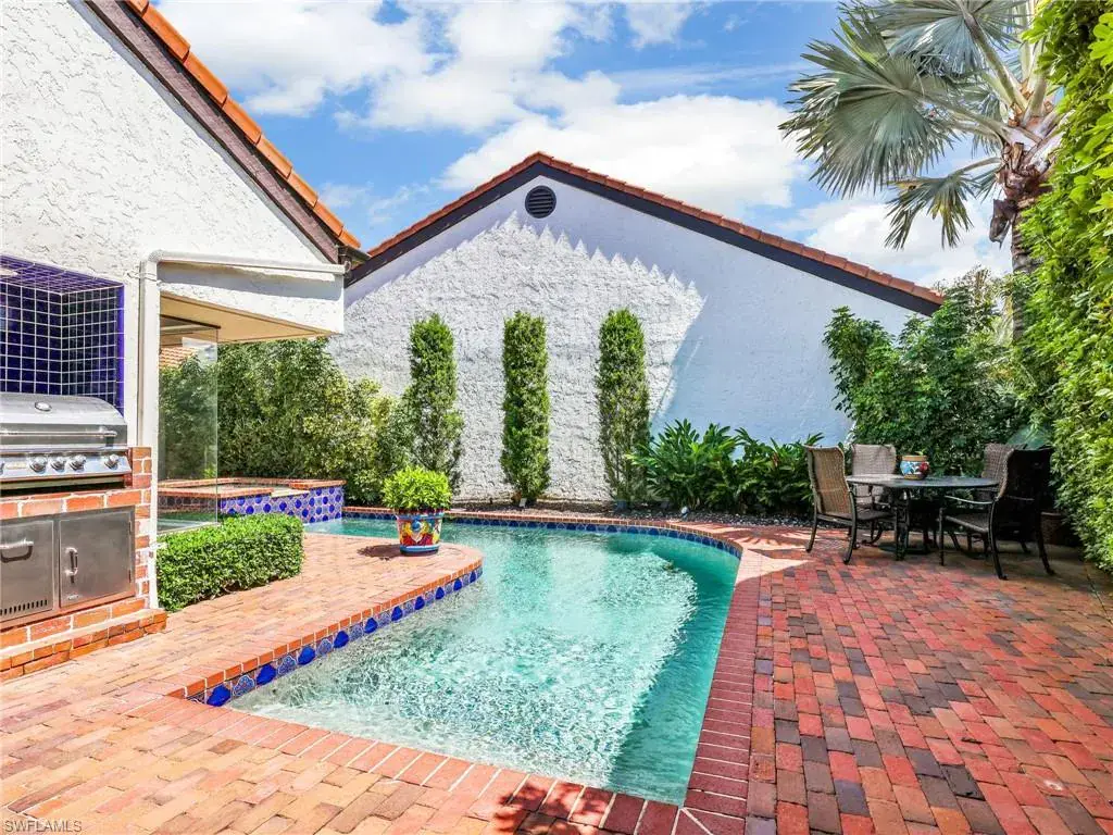 Welcome to your private tropical oasis! Nestled in the hidden gem of Bay Villas within Pelican Bay, this 3 bedroom, 2 bathroom villa offers bright and airy living spaces. French doors open from every room to a private landscaped courtyard with an expanded brick-paver patio and private heated pool & spa, creating the perfect setting for indoor-outdoor living! Entertain with ease in the custom outdoor kitchen featuring a built-in grill, beverage fridge, ice maker, sink, and stylish tile finishes. Surrounded by lush landscaping, this resort-style space also includes a private outdoor shower for the ultimate tropical retreat. Inside the villa, soaring vaulted ceilings & walls of windows add tons of natural light throughout the living spaces. Offered turnkey furnished with numerous upgrades, this home features coastal décor & furnishings, wood floors, plantation shutters, custom cabinetry, built-in entertainment center, specialty lighting, custom mirrors, paddle fans, and Sonos sound bars in the living room & primary bedroom. Bathed in natural light, the kitchen boasts a charming breakfast nook with built-in seating, sophisticated stacked white cabinetry with illuminated glass-front uppers, under cabinet lighting, cooktop with slide-in oven, stainless steel dishwasher, and a NEW stainless steel refrigerator (2025). A separate dining area with a custom dry bar including a beverage fridge & a separate wine cooler makes entertaining effortless. The private primary suite is a true retreat with floor-to-ceiling sliding glass doors overlooking the courtyard gardens. The spa-style primary bathroom features a designer glass tile shower with frameless glass door, dual vanities with makeup area, custom mirror, skylight, Toto toilet, and a large walk-in closet with custom built-ins. The 2nd bathroom includes a glass enclosed floor to ceiling tile shower, Toto toilet, custom mirror, and glass vessel sink. Additional notable features include a spacious 2-car garage with abundant built-in storage, newer roof (2019), newer garage roof (2020), A/C (2020), and a laundry room with ample cabinets & utility sink. As a Pelican Bay resident, enjoy exclusive access to nearly THREE MILES OF PRIVATE BEACHFRONT with two beachfront restaurants, chair and umbrella service, kayaks, sailboats, paddle boards, and a convenient tram system for easy access. The community also features world-class tennis with 18 Har-Tru courts and is expanding with a NEW RACQUET CENTER that will include 8 additional Har-Tru courts and 20 PICKLEBALL COURTS! Additional amenities include a state-of-the-art fitness and wellness center, a vibrant Community Center with an art studio, card rooms, and versatile meeting spaces, plus beach fitness classes, lifestyle events, and over 80 acres of scenic parks, nature trails, and bike paths. Perfectly located near Waterside Shops, Artis–Naples, and Mercato, Pelican Bay offers the ultimate Naples lifestyle—don’t miss this rare opportunity!