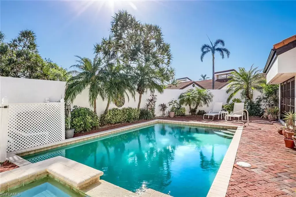 Welcome home to your gorgeous, private, and serene villa located in the heart of Pelican Bay. You will instantly fall in love with the spectacular vaulted ceilings, skylights, and distinctive features that make this home one of a kind. Lounge every day alongside your pristine heated pool and spa and enjoy ultimate privacy; your outdoor oasis is complimented by beautiful landscaping and a privacy fence. Lovely French doors connect the outdoor patio to the spectacular living room and huge master suite, offering an abundance of natural light throughout the home. This residence is complete with a wine cooler, a generous two-car garage, tile on the diagonal, and is being offered turnkey. You will be a short distance to some of Naples’ best destinations, including Waterside Shops, the Baker Museum, and Artis—Naples. Pelican Bay offers 3 miles of pristine private beach access and two beach restaurants, a community center with a full fitness center and spa, two tennis facilities, and complimentary canoeing, kayaking and sailing. Club Pelican Bay offers 27 holes of golf, separate membership required. Welcome home!