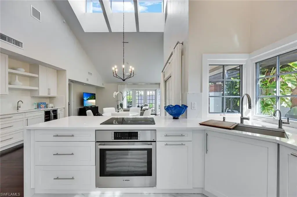 Welcome to this exquisite residence in the highly desirable Bay Villas community in Pelican Bay. There is an abundance of natural light in this open concept floor plan which makes it great for entertaining. This property is truly exceptional and has undergone renovations in the kitchen and bathrooms with high-end appliances exuding modern luxury. Your outdoor living space offers paver pathways to your peaceful oasis retreat. The ultimate setting for relaxation with a water feature, there is even room for your own pool. Pelican Bay offers a three-mile stretch of pristine beaches, with attended cabana service offering lounge chairs and umbrellas, canoeing and kayaking. Ride the Tram to either the north or south beach where you will find dining options to enjoy the gorgeous sunsets. Pelican Bay provides tennis at the commons and more courts at the community center, which also offers art classes, various clubs, and a state-of-the-art fitness center. This property offers the ultimate resort living with upscale amenities. This is an unparalleled opportunity to experience the epitome of coastal living. Pelican Bay is located west of 41 near the upscale Waterside shops, Artis-Naples, Baker Museum and Clam Pass which you can walk to. It is a short drive to The Ritz-Carlton, Mercato, 3rd St South and 5th Avenue.