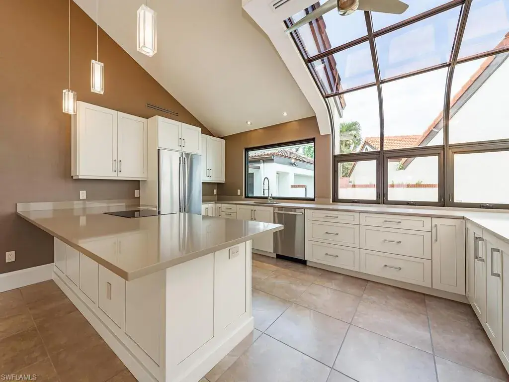Brought Down to the Studs, All New Electric Wiring, Plumbing, Tankless Hot Water, New Windows with Film, Volume Ceiling, Breakfast Nook, Solid Wood Doors & Cabinets, SS Jenn Air Built in Oven, Induction Cook Top, Microwave, Dishwasher & Double Door Refrigerator with Lower Freezer Drawer, added for Your Convenience. Quartz Countertops, 24 x 24 Porcelain Tile Floors, Floor to Ceiling Tile & Water Saver Kohler Toilets in Bathrooms, Master has Double Sinks with Extra Large Shower & Bench Seat, All Closets Have Shelves, Lights & Built in Organizers. Lenox A/C 2021, Lutron Lighting Controls, Outside Shower, 2 Car Garage is Fully Insulated & Mitsubishi Air Conditioned, Lift Master Garage Door Hurricane Code, Epoxy Floor with Built in Cabinetry & the Entire Villa & Garage Attic Areas have Wooden Floors for Extra Storage. BELLISSIMA!!!