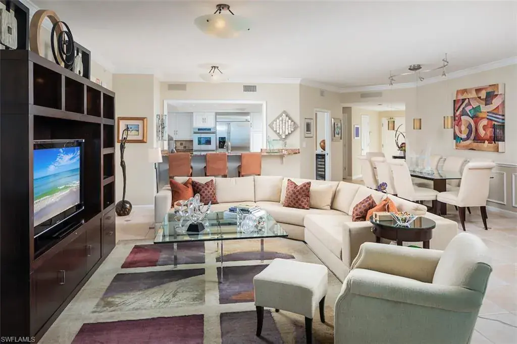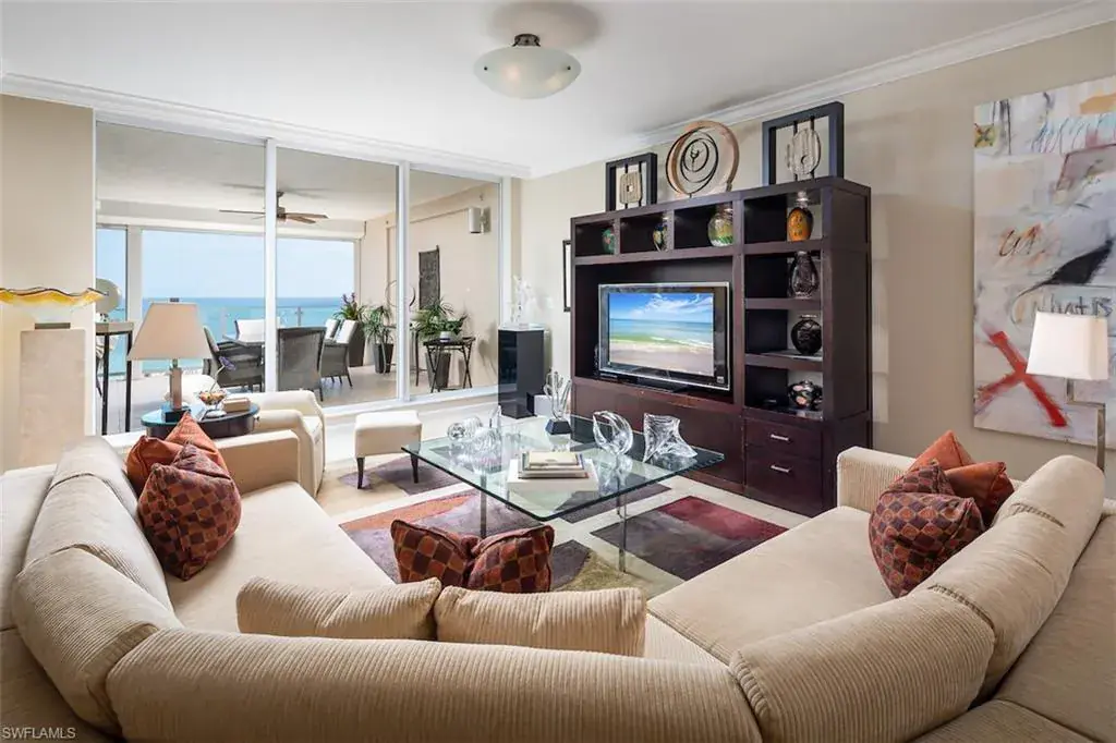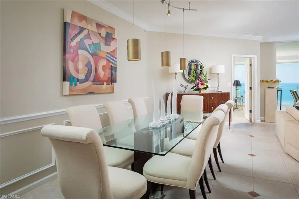 Spectacular Sunsets, Beautiful Beaches, Unique Spaces. This beachfront jewel with interiors by a reputable local interior designer has 3 bedrooms, 3 full baths, a den with floor to ceiling windows, and a spacious covered balcony. Perched on the 17th floor, you will be mesmerized by the most amazing views of Venetian Bay, the city to the east and the Gulf of Mexico and Clam Pass to the west. You’ll enjoy a unique level of privacy and tranquility in this special gem in Baypointe within the exclusive 24/7 guard-gated enclave of Naples Cay. Living the Baypointe lifestyle affords a beautifully renovated building with a resort style swimming pool, large sunset deck, stunning social room with catering kitchen, state of the art fitness room, tennis courts, elegant owners lobbies with just 3 units per floor, three guest suites, new elevators, and pets are welcome. Upscale shopping, dining and entertainment await at Venetian Village, Waterside shops, and Artis-Naples. Come live your best life on the beach!