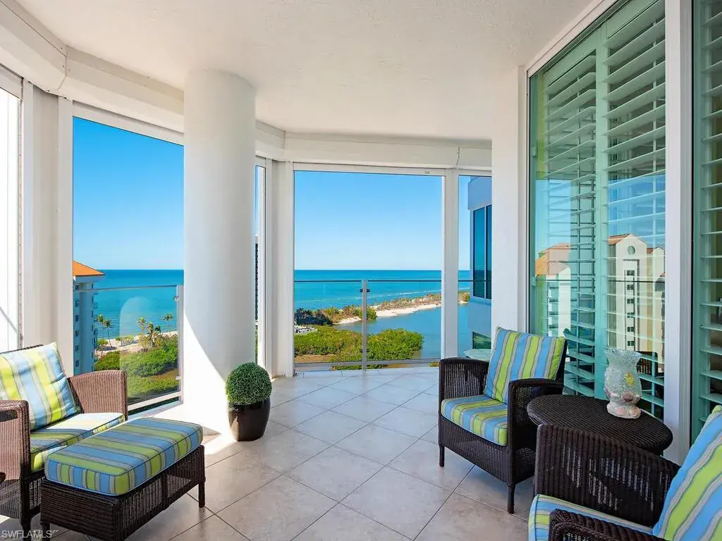 Panoramic vistas of the Gulf of Mexico, Clam Bay, and Venetian Bay are abundant from this meticulously designed / maintained sky-high residence located in the locally favored Baypointe at Naples Cay.