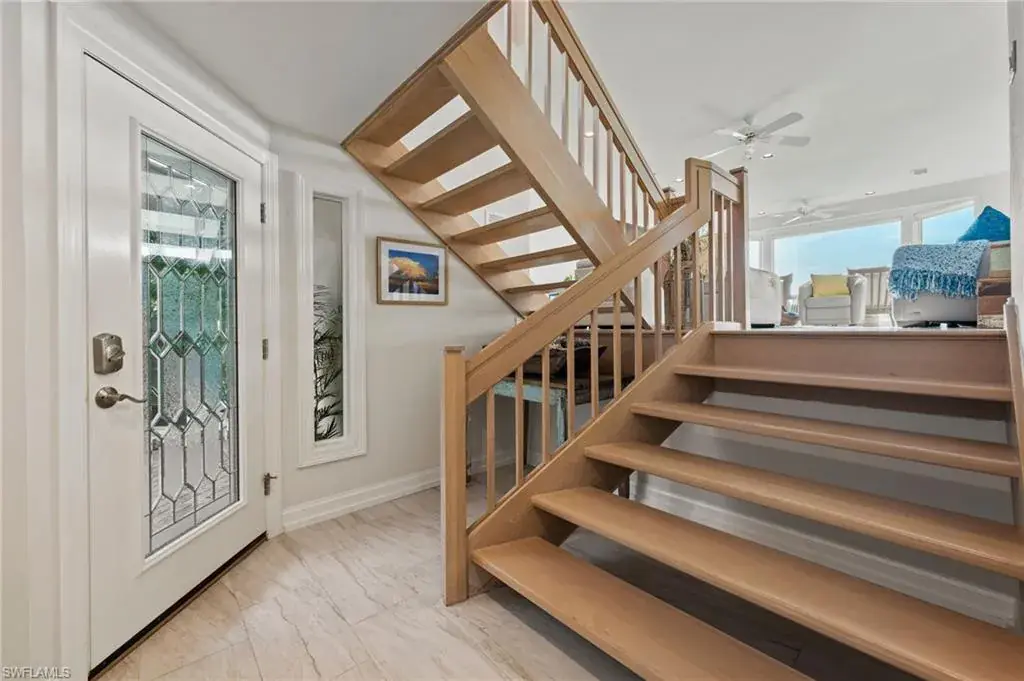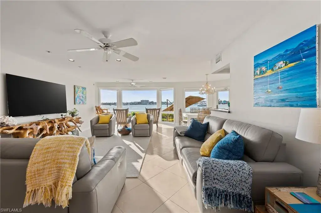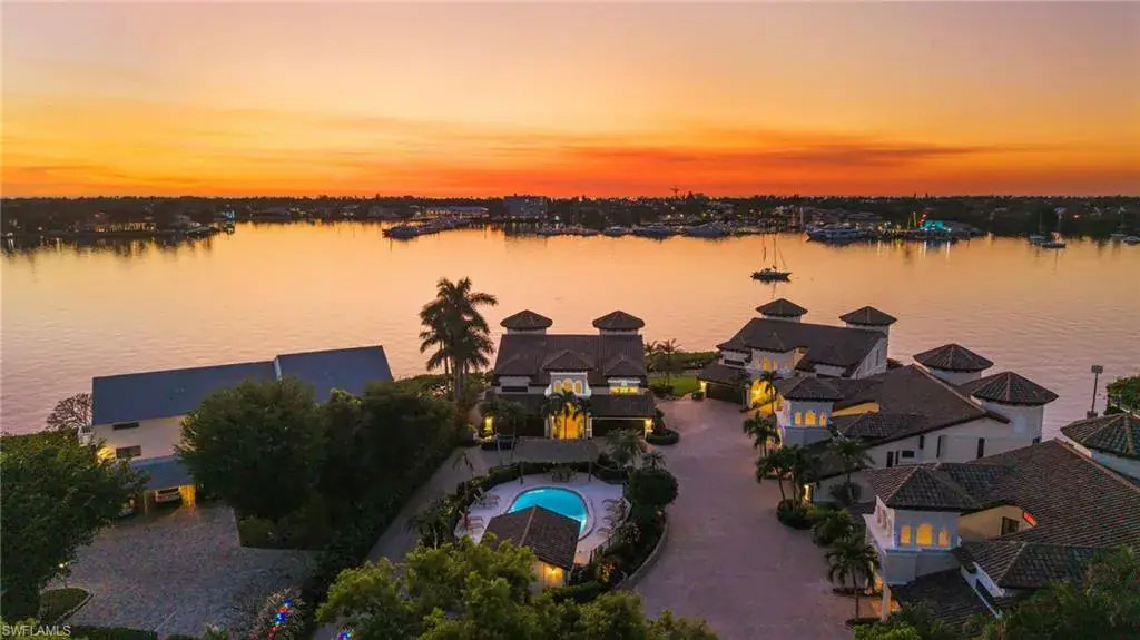 Expansive picturesque sunset and water views of Naples Bay. Situated at the Tip Lot in Bayview Estates this 3 Bed 3 Bath Townhome will impress you with the wall of windows overlooking the breathtaking water views! Offered partially furnished, the living area is open and inviting with lots of natural light and tile floors. The kitchen offers stainless steel appliances and granite counter tops. Beautiful water views from your primary suite opens up to a balcony overlooking the scenic bay. Located on a cul-de-sac in a private enclave of 8 residences. You will love the private pool area with the Tiki hut! Stunning bay views with a boat dock that will accommodate up to a 32ft boat and a private deck at the waters edge for entertaining. 2-car garage with A/C, close to Olde Naples. Optional purchase of kayak launch with two kayaks.