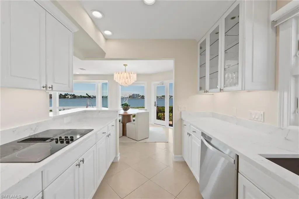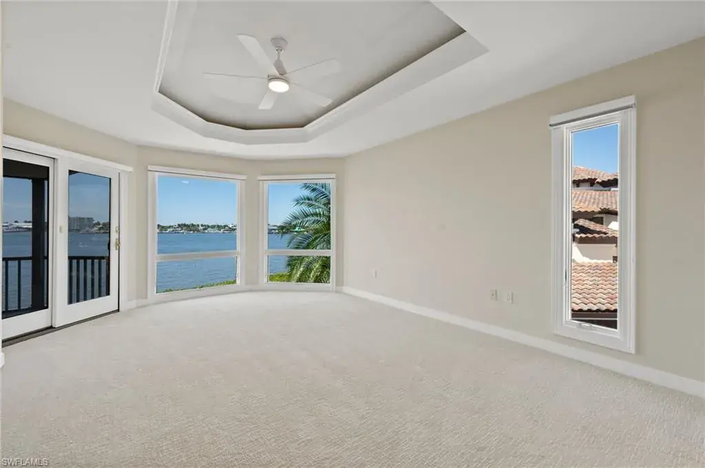 It’s All About The Picturesque Views of Naples Bay, looking West to the City Docks and Naples Yacht Club at Crayton Cove. This 3 Bedroom 3 Bath Condo (with rare 2 car garage) will “Wow” you with its breathtaking views the minute you walk through the front door! With the rear of the condo one large bank of windows, you will have an unobstructed view of the passing boats, Naples Marina and Spectacular Sunsets. Offered partially furnished in a neutral palette, you’ll enjoy the calming feel of both the interior and all outside your windows. The kitchen offers stainless steel appliances, quartz counter tops and plenty of cabinet space (as well as “the view”). Your primary and a guest suite open up to a balcony where all three, once again, come with, “the view” of the scenic Bay. Aside from the views, this Townhome is just steps away from its own boat slip that will accommodate up to a 32ft boat, for when you can’t resist a leisurely day (or night) out on the pristine waters of the Gulf or a quick trip to the beaches of Keewaydin Island. Add the private pool area with the Tiki Hut as well as close proximity to the Beach and all Olde Naples has to offer, and you’ve got a winner.