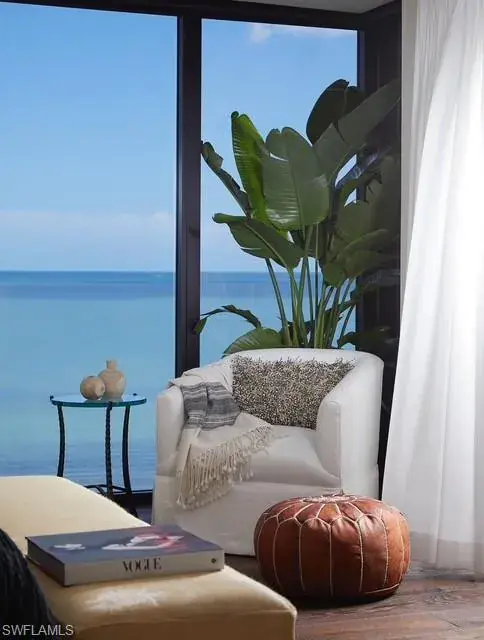 boutique building within the gates and the glam of Naples Cay. This stunning sky estate is the perfect blend of timeless design, modern innovation, and artistic elegance. One of only two direct beachfront high-rise buildings in the exclusive gated enclave of Naples Cay. This chic property is one of the most exquisite and original direct beachfront condos ever on the market as evidenced by the awards and magazine articles. Not the usual developer grade finishes or common place beach themes. This residence is of another caliber. A sophisticated pied-a-terre of over 3000 sq. ft which would be suitable for entertaining National or International dignitaries yet also serves as a residence of complete comfort and total privacy, thoroughly family friendly too. Kayak launch and storage. Walk, bike, or golf cart to The Waterside Shops and restaurants or The Naples Grande, 3 bedrooms and 3 full baths with steam shower and separate sauna in the master with handcrafted cement tiles. The nearly two year labor of love was designed and executed by one of Naples most prestigious firms, Pure Design. Every inch to the studs was renovated, replaced, and expanded from its’ origins by expert craftsmen with the intention of design and quality for a lifetime. The furnishings are predominantly custom and could make this sky palace your “move in tomorrow” option. The chef’s kitchen features Wolfe appliances including steam and convection ovens and induction cook top with honed Black Jasper counters. The timeless chic design of Modern Spanish Colonial style was created to surpass the trends of the moment and be a comfortable testament to a life well lived. The quality finishings in every nook and cranny of 703 will ruin any other beachfront options on your shortlist within the price range. This residence evokes a feeling of substance not readily available in condominium dwellings at any price point. The antithesis of cold and austere. This abode is the rare combination of excellence in design, while cozy and spacious at the same time. The property is one of very few where exhilaration, sophistication and comfort co-exist. Sweeping views to Sanibel and beyond! Pictures can’t possibly do justice to illustrate this property. The Beach House at Naples Cay has performed and exceeded all criteria, improvements and reserves for Structural Integrity Reserve Study and Milestone Study. Documentation provided upon request.