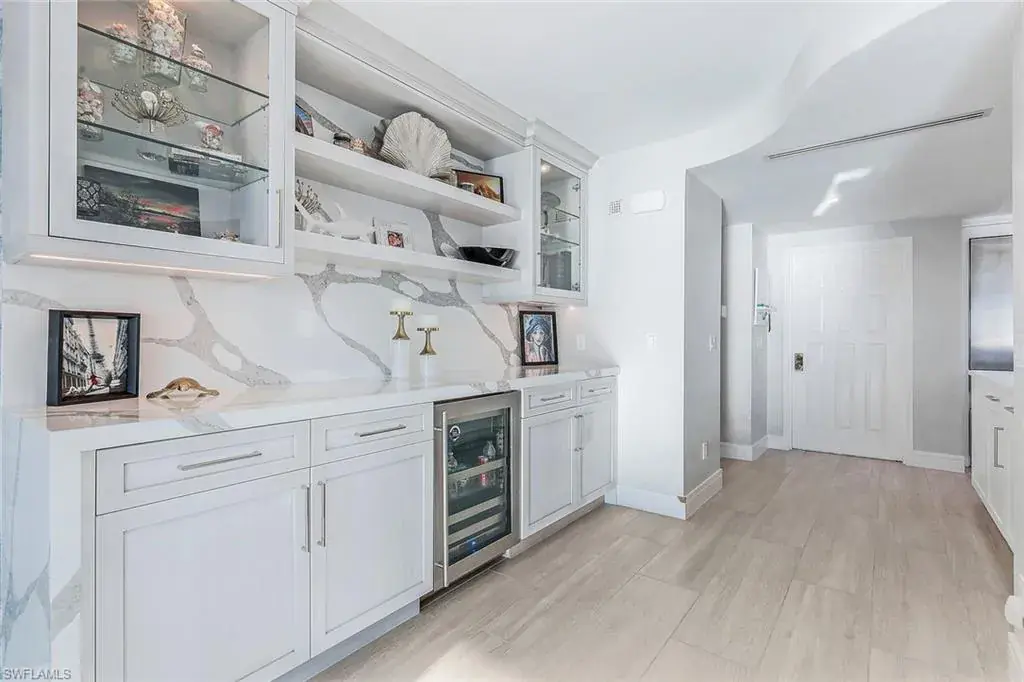 This isn’t just a home—it’s a lifestyle investment. Step into a fully renovated, design-forward space transformed by Design West, Naples’ top-rated design firm. Every inch has been curated with luxurious intent: contemporary cabinetry, quartz countertops, Miele appliances, a built-in buffet bar with beverage cooler, broad plank tile flooring, and California Closets. The 2-bedroom, 2-bath layout includes a spacious kitchen ideal for entertaining, a private laundry room, and a large lanai offering breathtaking panoramic Gulf views.
