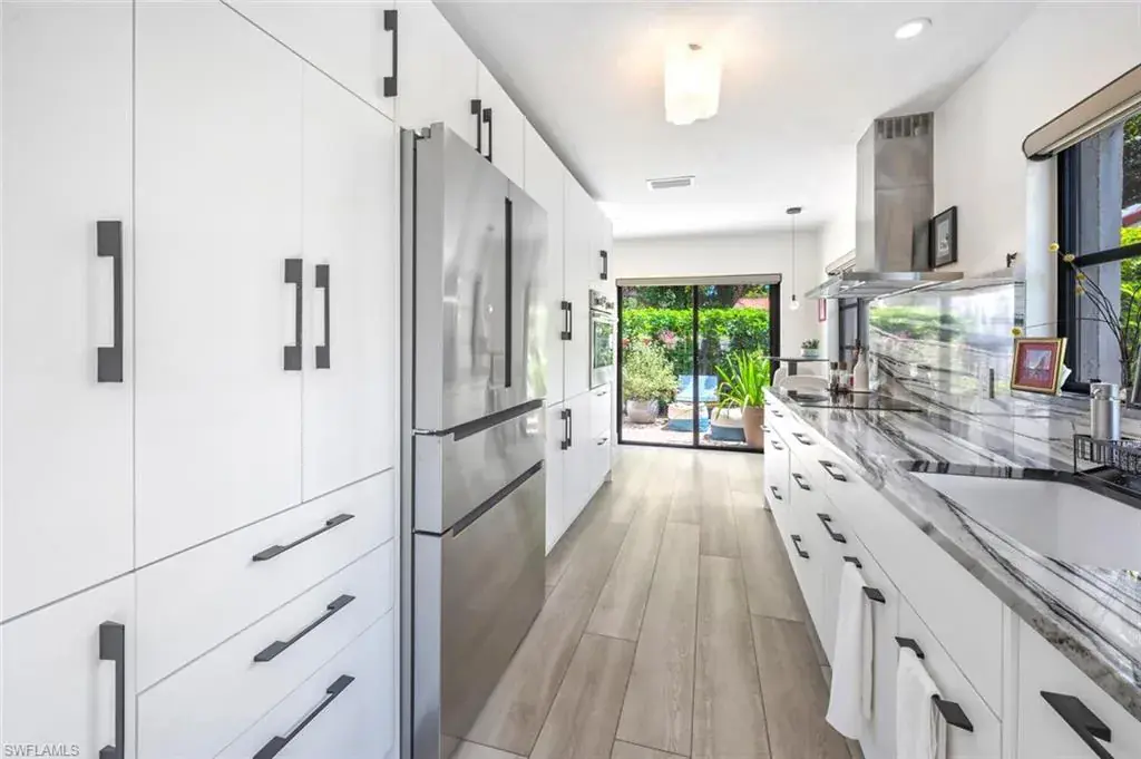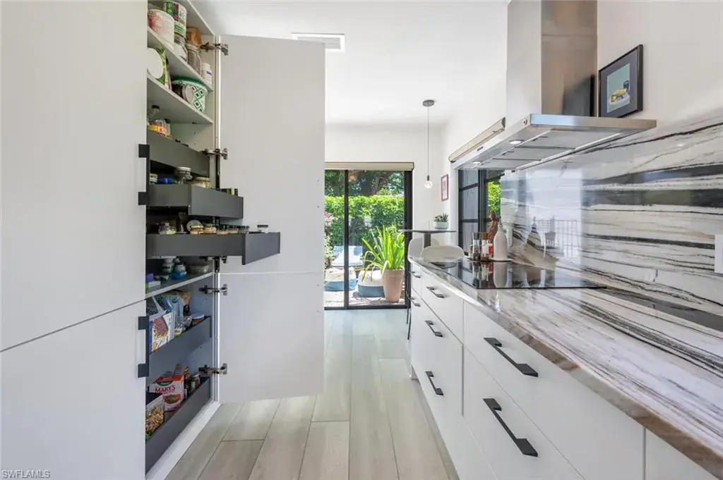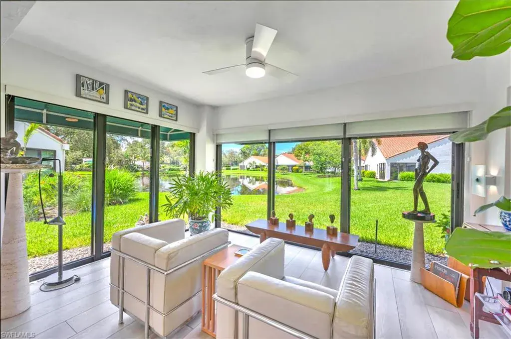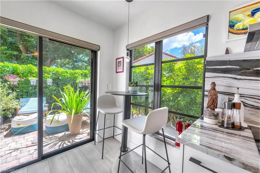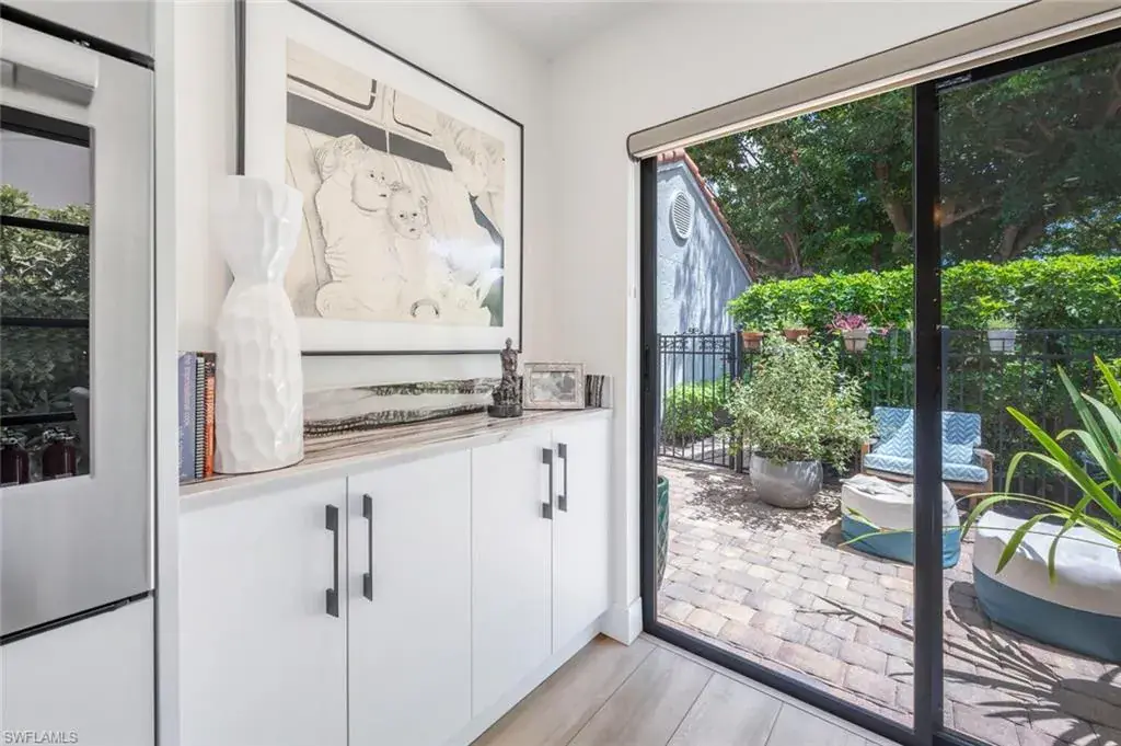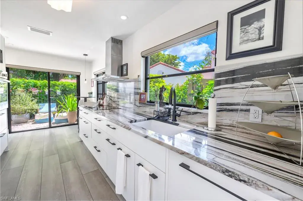 Beautiful, bright and luxurious move-in-ready 2 bedroom 2 bath villa sits on a tranquil inside lake where you will enjoy beautiful views and refreshing Gulf breezes. This beautiful kitchen features Bosch appliances, new cabinetry with German pull-out drawers, a stunning quartzite counter and backsplash, and a Kohler stone composite sink. Bathrooms with new cabinetry, quartz countertops, LED mirrors, Kohler toilets, Kohler and/or Hansgrohe fixtures, Kohler soaking tub, very large step in shower. The 2022-2023 improvements and renovations include: new Kohler plumbing fixtures throughout, wide plank LVP flooring, ungraded electrical panel, whole house surge suppressor, new LG full-size washer and dryer. Also, included are new outlets and Lutron switches throughout, custom lighting, solid core doors with Baldwin hardware and wireless fans. This unique villa is the very last one allowed to add a lanai. The 360 SF easement, along the side of the villa and facing the lake is registered with the county and conveys to the buyer. Beachwalk’s tropical landscaped development conveniently located just a short walk or bike ride to the spectacular Vanderbilt Beach one of Florida’s premier beaches, numerous restaurants, a movie theater, CVS, Publix, a library, an urgent care, the Mercato shopping and dining complex and more. Community amenities include a heated pool and hot tub, 6 lighted tennis courts, bocce, clubhouse, on site manager, exercise room, a 24 hour manned gate and an active social calendar.