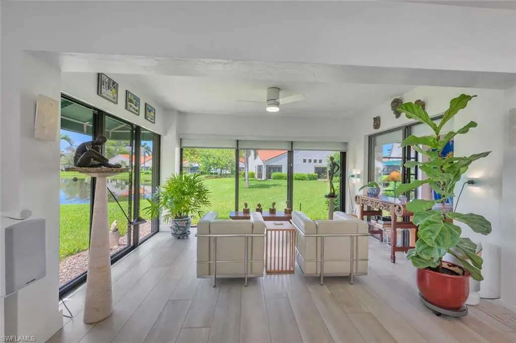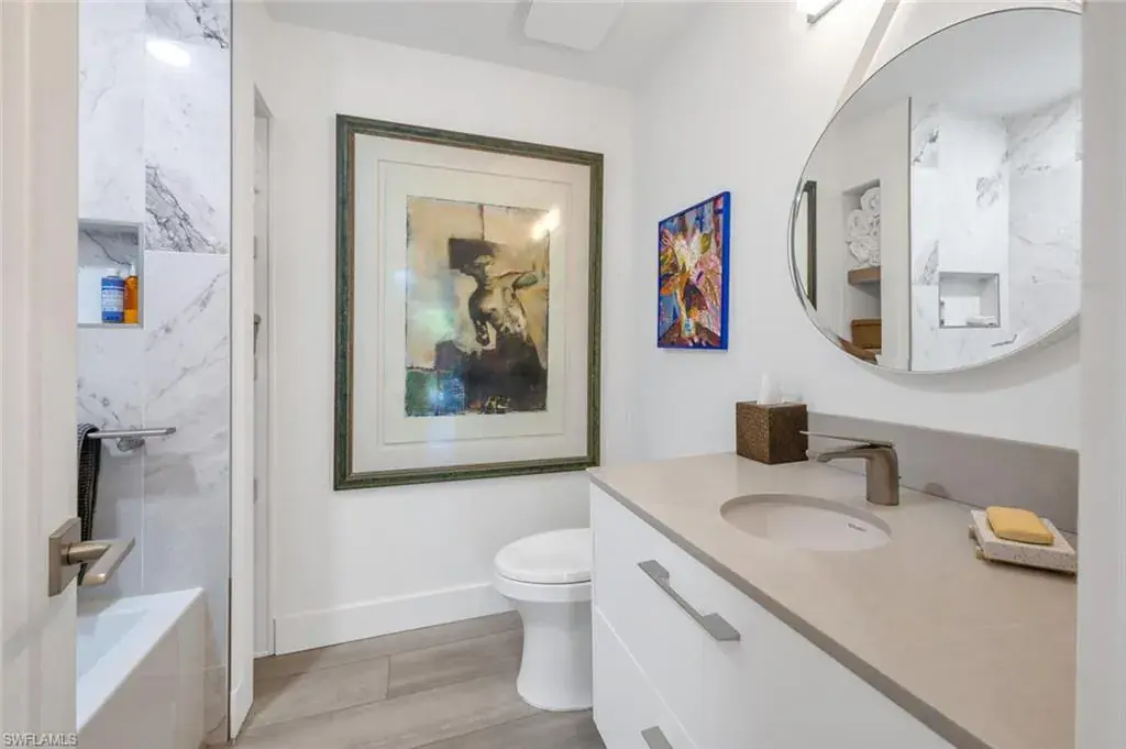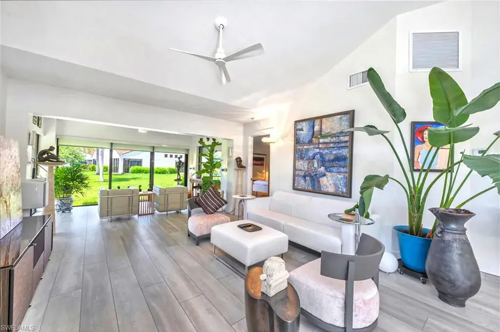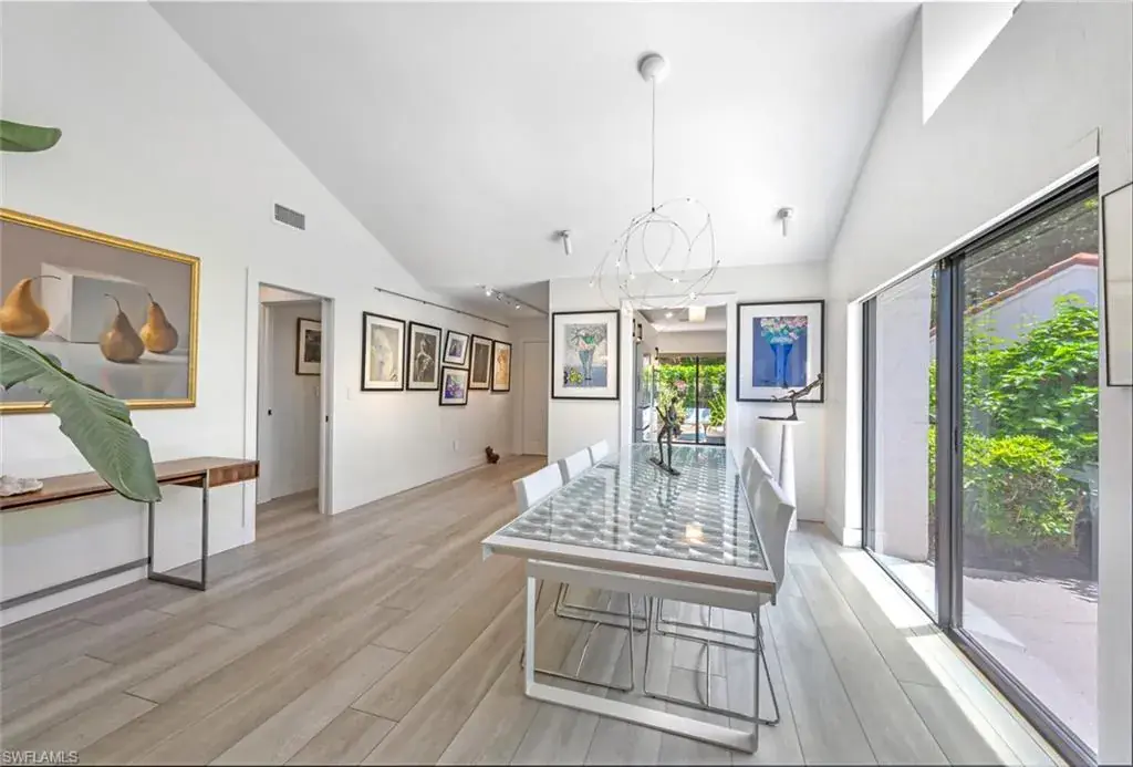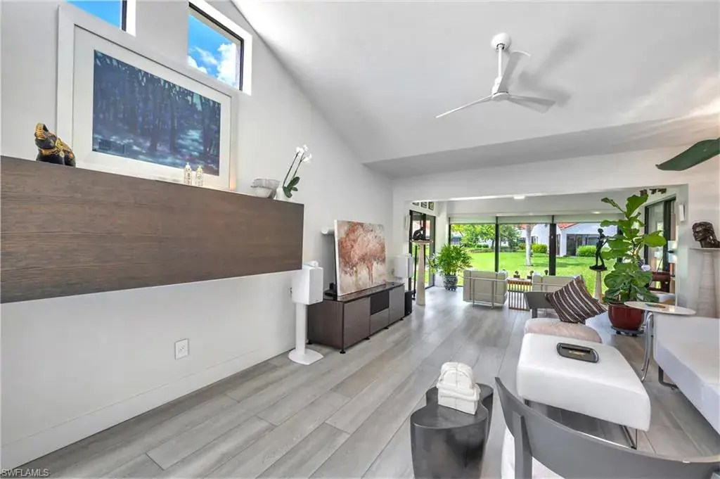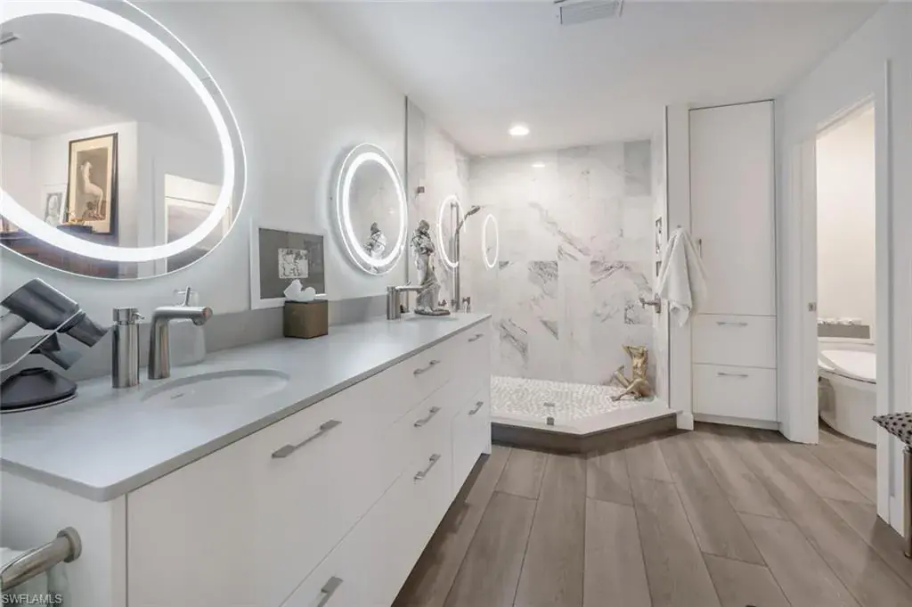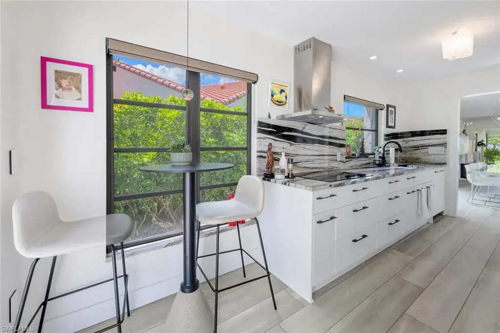 Beautiful, bright and luxurious move-in-ready 2 bedroom 2 bath villa sits on a tranquil inside lake where you will enjoy beautiful views and refreshing Gulf breezes. This beautiful kitchen features Bosch appliances, new cabinetry with German pull-out drawers, a stunning quartzite counter and backsplash, and a Kohler stone composite sink. Bathrooms with new cabinetry, quartz countertops, LED mirrors, Kohler toilets, Kohler and/or Hansgrohe fixtures, Kohler soaking tub, very large step in shower. The 2022-2023 improvements and renovations include: new Kohler plumbing fixtures throughout, wide plank LVP flooring, ungraded electrical panel, whole house surge suppressor, new LG full-size washer and dryer. Also, included are new outlets and Lutron switches throughout, custom lighting, solid core doors with Baldwin hardware and wireless fans. This unique villa is the very last one allowed to add a lanai. The 360 SF easement, along the side of the villa and facing the lake is registered with the county and conveys to the buyer. Beachwalk’s tropical landscaped development conveniently located just a short walk or bike ride to the spectacular Vanderbilt Beach one of Florida’s premier beaches, numerous restaurants, a movie theater, CVS, Publix, a library, an urgent care, the Mercato shopping and dining complex and more. Community amenities include a heated pool and hot tub, 6 lighted tennis courts, bocce, clubhouse, on site manager, exercise room, a 24 hour manned gate and an active social calendar.