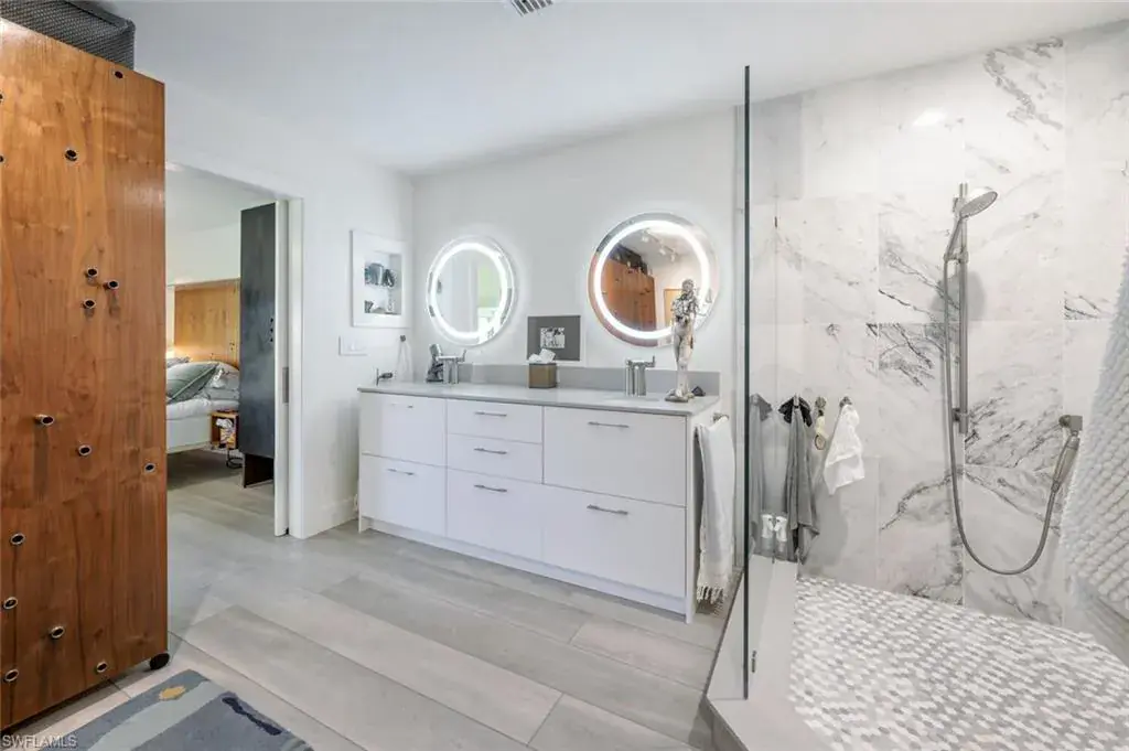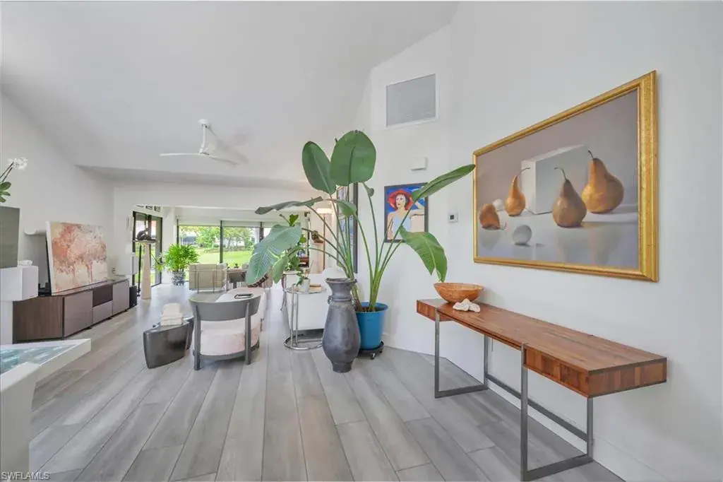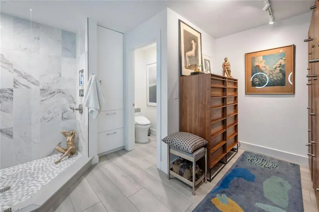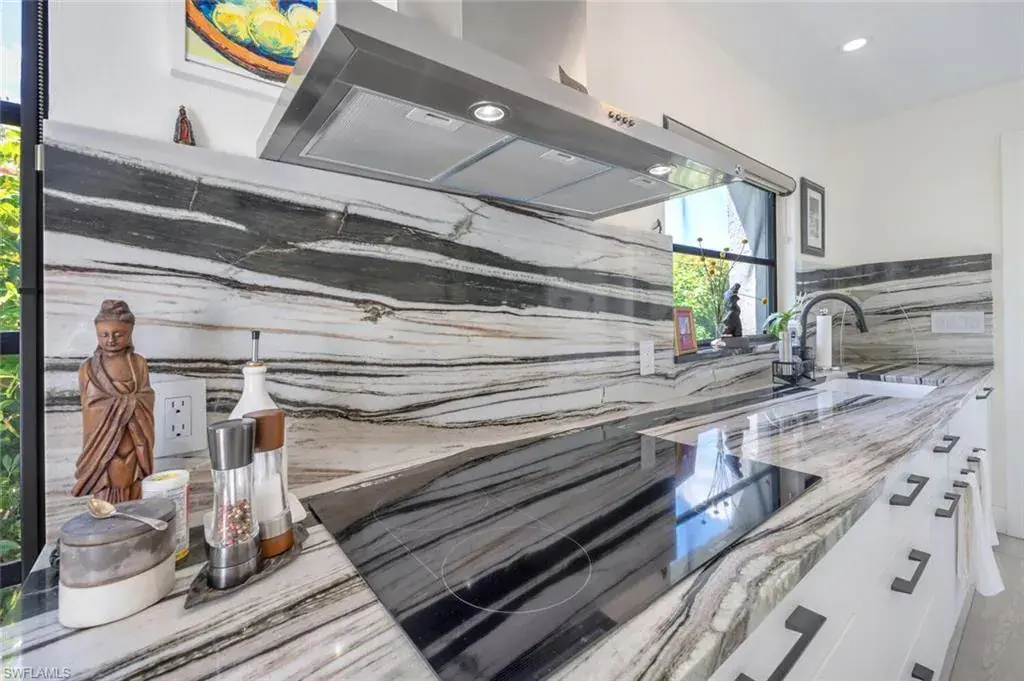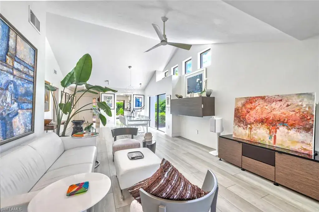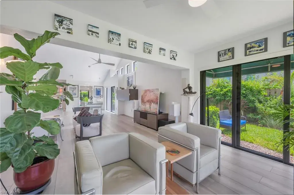 Beautiful, bright and luxurious move-in-ready 2 bedroom 2 bath villa sits on a tranquil inside lake where you will enjoy beautiful views and refreshing Gulf breezes. This beautiful kitchen features Bosch appliances, new cabinetry with German pull-out drawers, a stunning quartzite counter and backsplash, and a Kohler stone composite sink. Bathrooms with new cabinetry, quartz countertops, LED mirrors, Kohler toilets, Kohler and/or Hansgrohe fixtures, Kohler soaking tub, very large step in shower. The 2022-2023 improvements and renovations include: new Kohler plumbing fixtures throughout, wide plank LVP flooring, ungraded electrical panel, whole house surge suppressor, new LG full-size washer and dryer. Also, included are new outlets and Lutron switches throughout, custom lighting, solid core doors with Baldwin hardware and wireless fans. This unique villa is the very last one allowed to add a lanai. The 360 SF easement, along the side of the villa and facing the lake is registered with the county and conveys to the buyer. Beachwalk’s tropical landscaped development conveniently located just a short walk or bike ride to the spectacular Vanderbilt Beach one of Florida’s premier beaches, numerous restaurants, a movie theater, CVS, Publix, a library, an urgent care, the Mercato shopping and dining complex and more. Community amenities include a heated pool and hot tub, 6 lighted tennis courts, bocce, clubhouse, on site manager, exercise room, a 24 hour manned gate and an active social calendar.