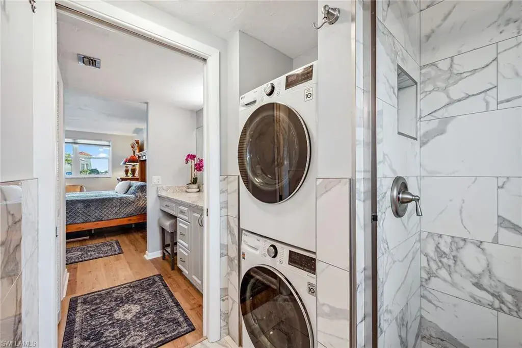In the desired BeauMer community on Gordon River, this two-story end unit is across from Bayfront and Tin City, just a five-minute walk to 5th Avenue’s fine dining, boutique shopping and vibrant nightlife! As you step inside the generous 1,100 square feet, two-bedroom and two-bath home, the welcoming foyer opens into a fully equipped kitchen adorned with solid wood cabinets, quartz countertops, a convenient pantry, and a pass-through to the open dining area and living room. Natural light cascades through floor-to-ceiling glass windows, illuminating the luxury vinyl plank flooring throughout. The adjacent owner’s suite is complete with a walk-in closet and an updated en-suite bath featuring marble tile flooring, a walk-in shower with matching floor-to-ceiling tile, and dual vanities finished with granite, full-width mirrors, updated lighting and a makeup counter. For your convenience, this home has its own full-size LG stacking washer and dryer, which is on the main level. A spiral staircase guides you to the lower floor where a guest bedroom awaits, featuring a wall of floor-to-ceiling glass windows, tile flooring, an en-suite bath with a walk-in shower, and direct access to the attached one-car carport. The residence has a new HVAC system in March 2024, impact-resistant windows and is turnkey furnished, making it ready for immediate enjoyment. As a BeauMer resident, indulge in exclusive amenities like heated community pool and spa, poolside grilling areas, bike storage, fish cleaning station and ample guest parking. The adjacent River Point Marina offers docks for sale or lease, providing direct access to the gulf. Across the street, Gordon Marina offers rentals for kayaks, jet skis, paddle boats and sailboats, enhancing your waterfront lifestyle. BeauMer is permitted for monthly rentals. Don’t miss this opportunity.