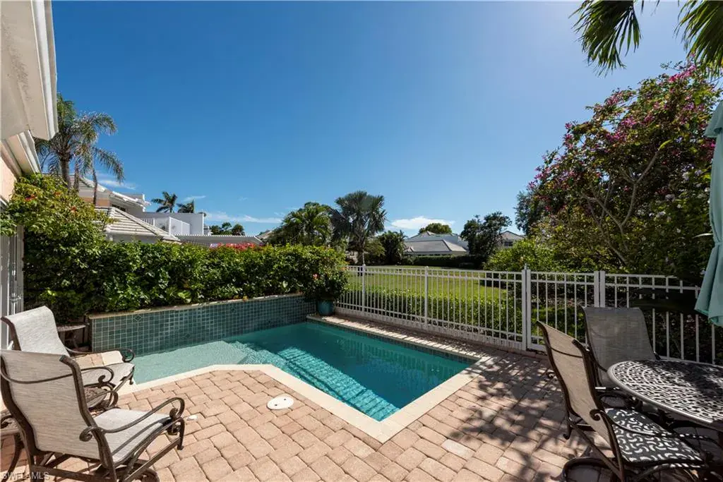 Wonderful opportunity to make this elegantly updated villa your home in the vibrant community of Pelican Bay. This residence, thoughtfully enhanced in 2021, features an abundance of built-in elements and state-of-the-art lighting, creating a bright and inviting atmosphere. Unwind on your private garden patio, complete with a pool, where you can relish stunning sunsets overlooking tranquil neighborhood greenspace. The gourmet kitchen is a chef’s dream, showcasing exquisite stone countertops, a spacious island with a second sink, custom cabinetry, and fully integrated appliances. The Master Suite offers a serene retreat, featuring a generous balcony and a fully remodeled bath adorned with dual sinks and marble finishes. The Guest Bedroom, accompanied by an en-suite bath, boasts lovely views to the north and east. A versatile home office can easily be transformed into additional guest accommodations with a pull-out console bed and a beautifully appointed bath. This villa also provides ample storage solutions and an attached two-car garage for your convenience. Living in Pelican Bay grants access to a premier lifestyle unparalleled in Florida, complete with exceptional amenities such as private beachfront dining, dedicated beach services, canoe and kayak rentals, sailing opportunities, an active racquets program, pro shops, a full-service fitness center, wellness studio, and a vibrant community center hosting events throughout the year. Large dogs welcome with loads of greenspace.