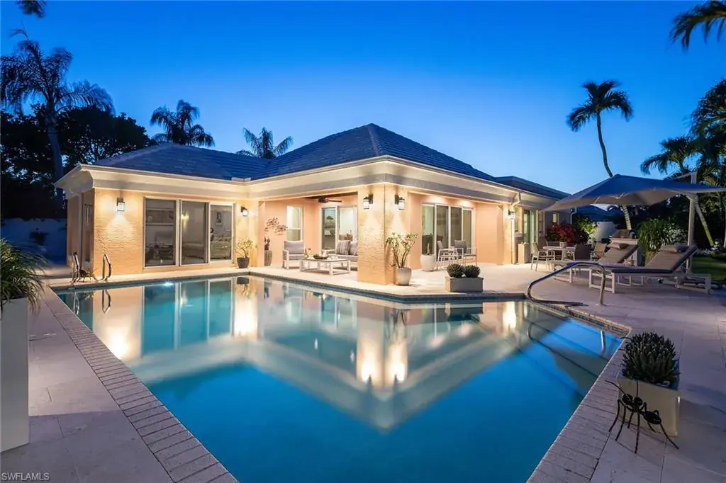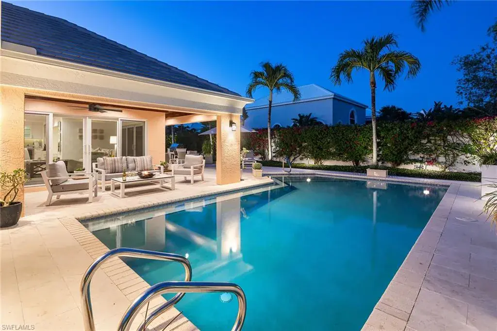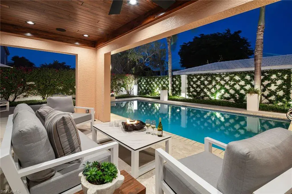 Absolutely enchanting single-family home in the heart of Pelican Bay describes this fully renovated gem. Fabulously reimagined, this home boasts gorgeous wide plank white oak flooring throughout most of the home, 3.5 chic and well-appointed baths, chef’s kitchen featuring white-shaker cabinetry, Wolf gas oven, stainless appliances, pullouts and more, superb, sophisticated design and architectural elements throughout, and a one-of-a-kind signature gathering room with soaring ceilings. The magical outdoor space on this oversized lot boasts charming covered living space, resort-like vertical pool, huge immaculate yard and captivating landscaping with gorgeous bougainvillea, crisscross ivy and superb outdoor lighting. The added bells and whistles include impact windows and doors, new roof, epoxy floor in garage, whole-house generator, buried propane, Zone X location outside the floodplain, and more make this home move-in ready. Pelican Bay offers two private beach clubs with dining and state-of-the-art community, tennis and fitness center, as well as nearby world-class shopping and dining at Waterside Shops, the Mercato and Artis-Naples.