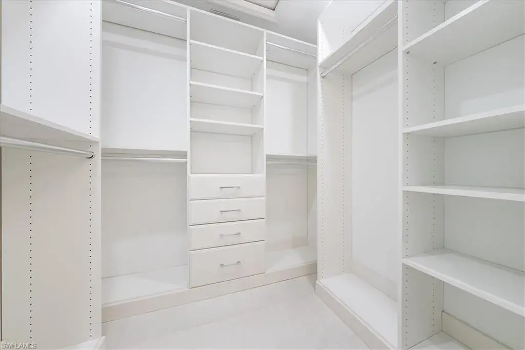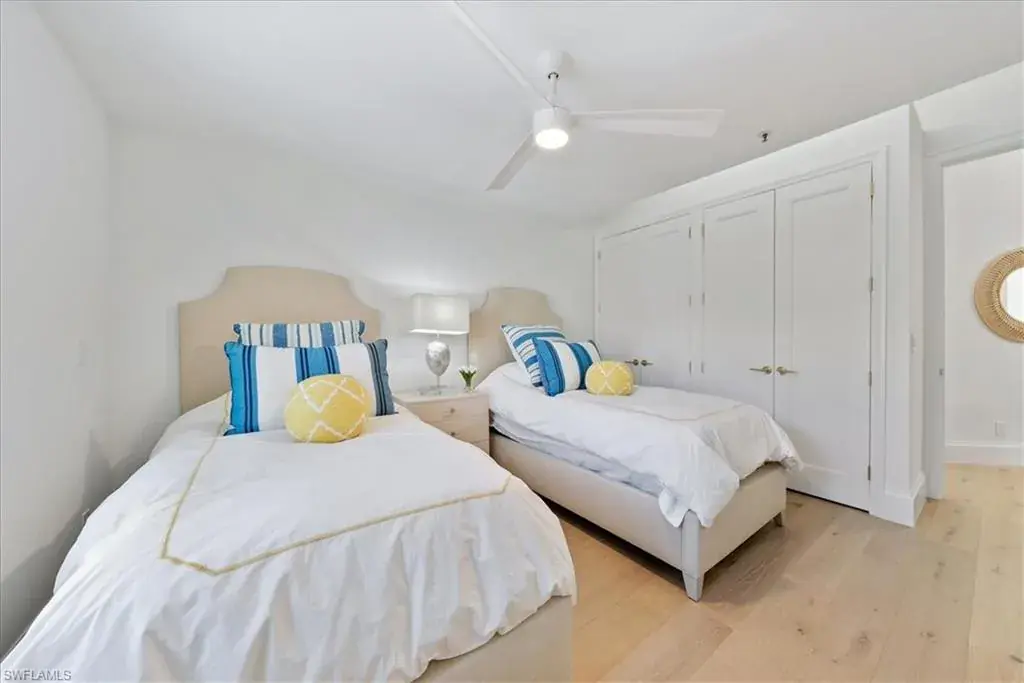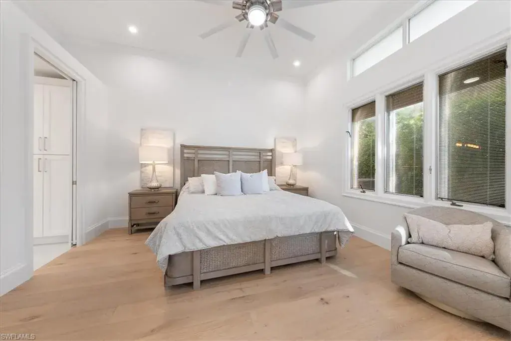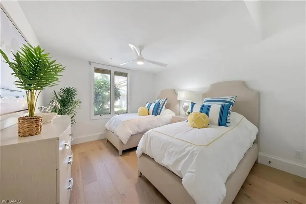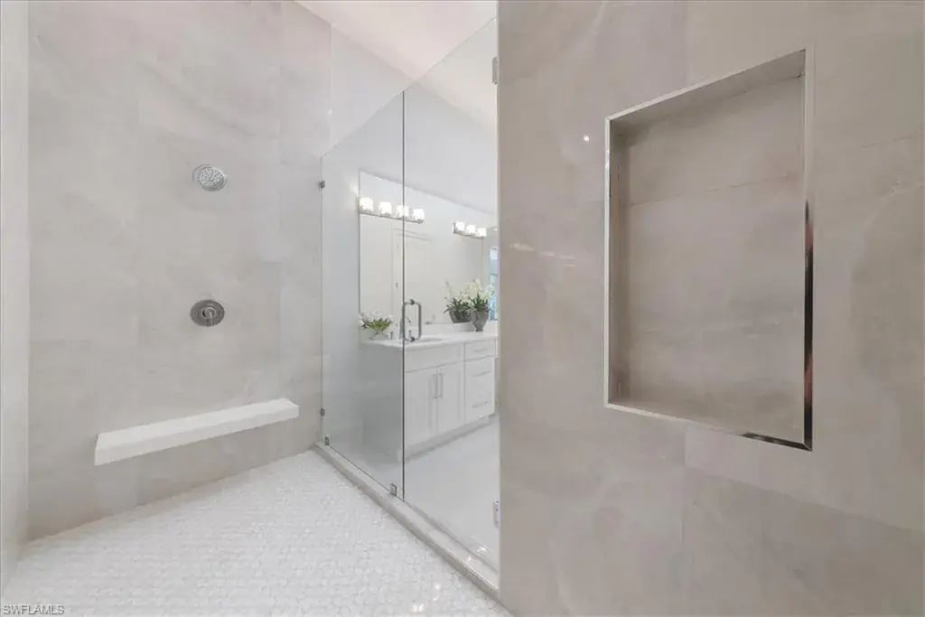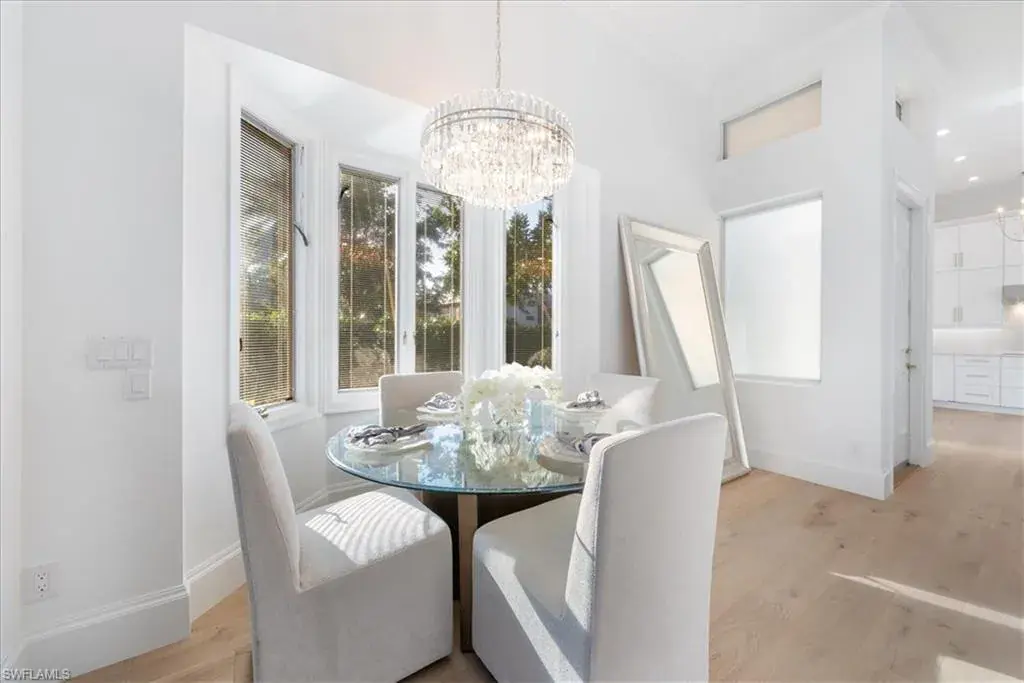 FULLY RENOVATED Single-Story Villa – NO STAIRS!! LuxRe Construction has done it again in the heart of Park Shore off Belair Ln, this end unit attached villa has a newly designed wide open floor plan with high end appliances and finishes, 2 bedrooms, 2 baths, and a 2 car garage. With high vaulted ceilings, 8’ solid core doors, engineered hardwood throughout, fully built out closets with 2 in the primary suite and an oversized guest, Subzero fridge, Wolf Induction Cooktop, Wolf oven and convection oven, and gorgeous Cambria Quartz and Mystery White Marble tops. All of the work has been done for you to move right in! Enter through your own side yard with additional guest parking to this end unit with tons of windows and natural light flowing in. Walk out to your private covered lanai with sliding glass doors to close whenever it is too hot outside, or walk out to your extended patio created with a privacy clusia hedge for uncovered outdoor living space you rarely find in a villa. This development just painted the Villas a beautiful white for a fresh and beautiful new and improved look! This villa is located steps from the Venetian Village Dining And Shops, Community Pool, and Park Shore Private Beach club you can join for a small fee by owning a home in Park Shore. With a location like this you typically have to give up garage space, finishes, ceiling height, or have to go upstairs. This unit has everything you have been searching for and more!
