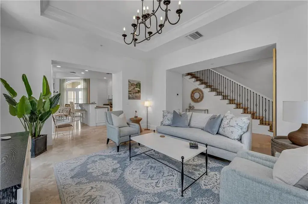 Just 6 blocks to beautiful white sandy beaches in Olde Naples. A short walk to Naples fine dining and shopping of 5th Avenue & 3rd Street.  Bella Vita’s furnished 3 bed/3 bath villa/townhouse lives like a single family home with a two car garage and private elevator.  Watch the sunrise and sunset from any of your 6 balconies.  The Villa boasts 10′ ceilings, Travertine marble, French Oak Wood flooring, solid core doors, custom millwork, lighting and impact glass doors and windows.  Enjoy breakfast overlooking the pool from your gourmet kitchen with its quartz counters, custom cabinetry and high-end appliances.  Your ground level garden oasis/lanai gives you plenty of room to entertain.  This is everything you could want so come and see for yourself.