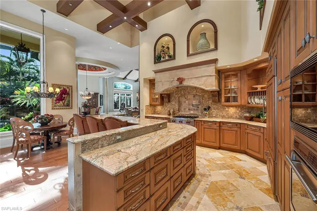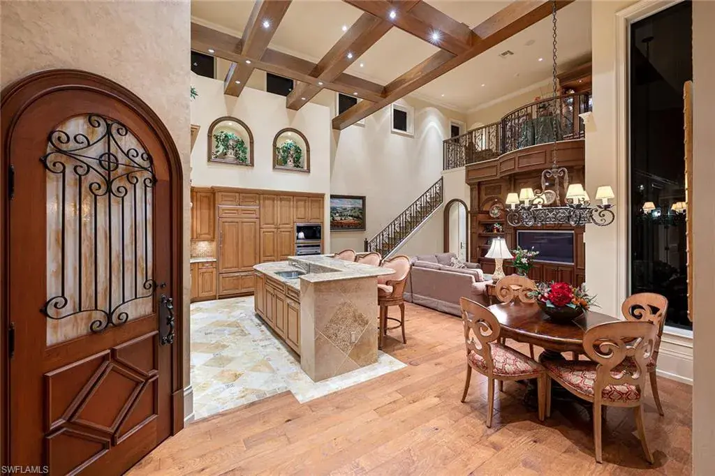 As you enter through the courtyard into your own private oasis, you are immediately drawn in by the expansive outdoor spaces and the rock-adorned spillover waterfall cascading into the lagoon-shaped pool that wraps along the home creating stunning views from both the inside and out. The adjacent outdoor living space is complete with a summer kitchen, fireplace and outdoor shower. This two-story villa is perfect for entertaining with three bedrooms and a den in the main house and two additional bedrooms located in the two-story cabana, a perfect space that offers exceptional privacy. Designed for endless luxurious living, the oversized living room with its soaring ceilings opens up through pocketing sliding doors to additional outdoor living that overlooks serene water views. A chef’s kitchen with luxury appliances, custom wood beamed ceilings, an air-conditioned garage and a new roof in 2020 are only a few of the exceptional features of this home! Located in the award-winning community of Mediterra with a commitment to excellence that has led to three Distinguished Emerald Club Awards.