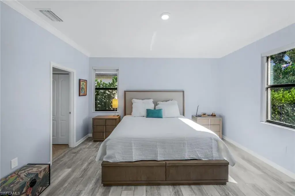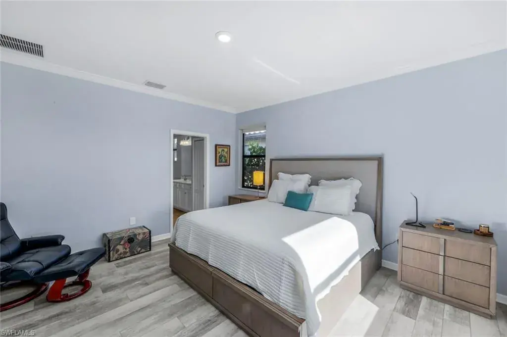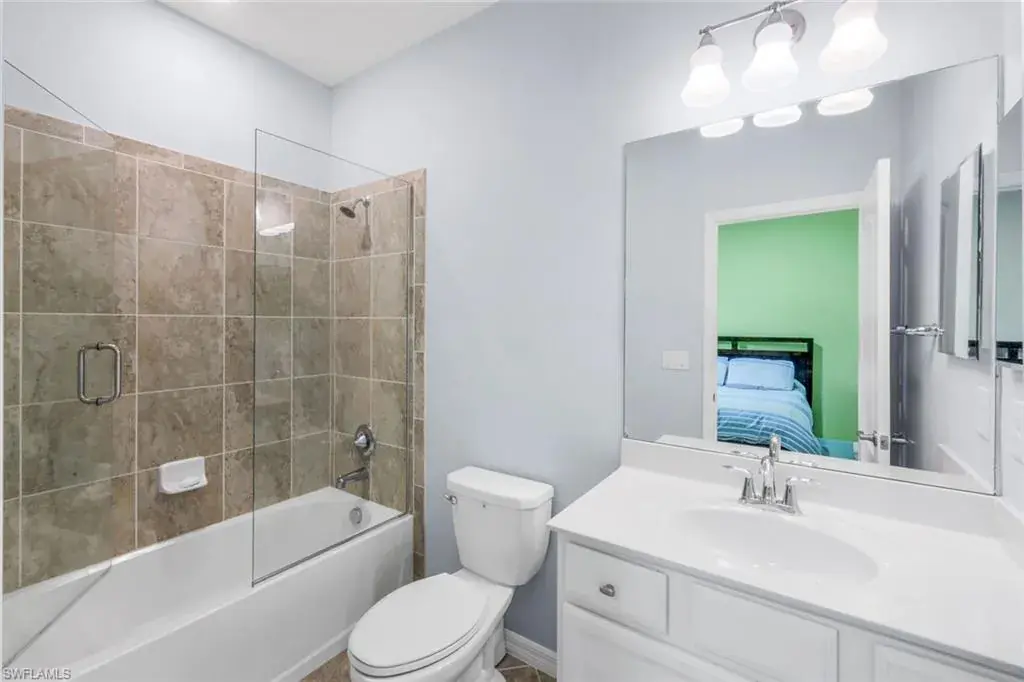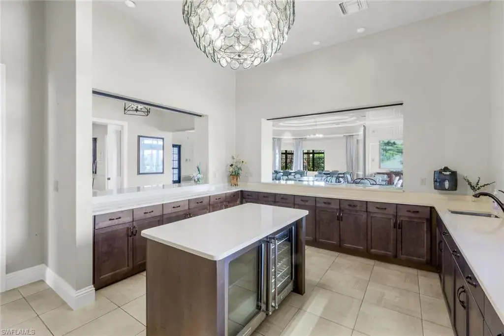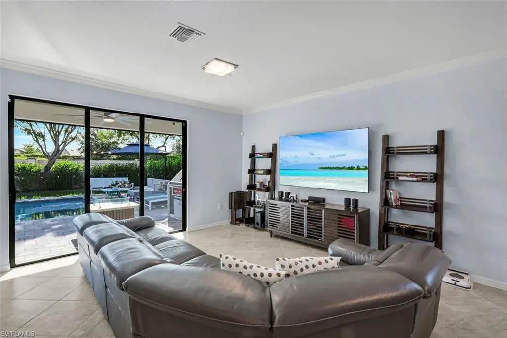 Welcome to Your Naples Oasis! This stunning 3-bedroom, 3-bathroom home with a 2-car garage and extended driveway offers the Naples lifestyle you’ve been dreaming of. Featuring soaring ceilings, an open floor plan, and a large lanai with a private pool, spa, and outdoor kitchen, this residence is perfect for both relaxation and entertaining. Inside, the sleek kitchen showcases white cabinetry, quartz countertops, a stylish backsplash, a massive island with seating for four, stainless steel appliances with hood, and a spacious walk-in pantry. The open kitchen, living, and dining areas flow seamlessly together under a detailed tray ceiling, with windows and sliders filling the home with natural light and views of the pool and lanai.