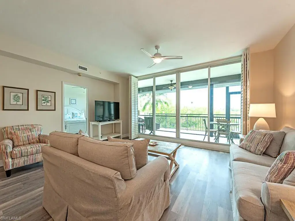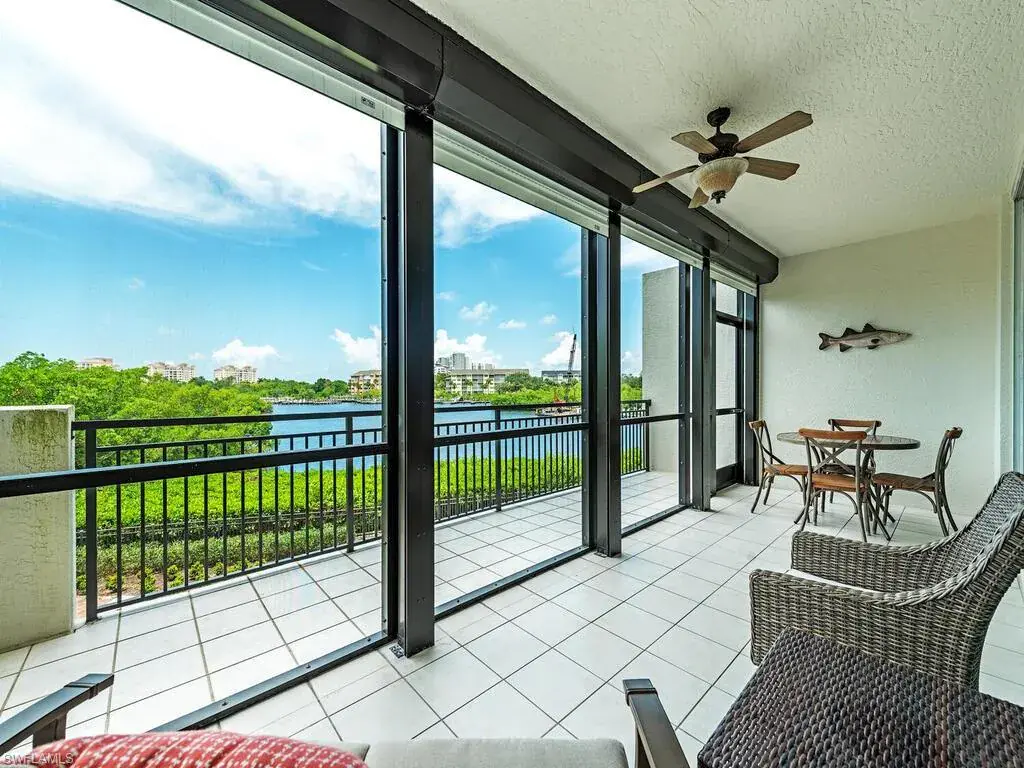 Beautiful views from the oversized balcony of this terrace level residence in Cove Tower. Turnkey – includes furniture and decorator package. Recently remodeled with new stylish flooring, trim, master bath, and freshly painted. The terrace level residences have extra space outside of the screen lanai, offering sparkling water and natural preserve views. Hurricane shutters on the lanai. Open great room plan combines the kitchen, dining, and living area offering generous space for family gatherings and entertaining. Elevator is just steps away from the front door. Located near the community pool. Extra storage space included as well as a corner covered parking space near the front entry. Community amenities include pool, hot tub, grill area, kayak storage. This residence also has a membership to Tarpon Cove Yacht and Racquet Club, which can be transferred to the new owner at a reduced rate. Club amenities include tennis, bocce, dining, fitness center, resort pool, beach shuttle, tiki bar, and an active social calendar. Boat slips available for lease or purchase. Cove Towers is an exclusive gated community with a fantastic location in North Naples, close to beaches, restaurants, shopping.