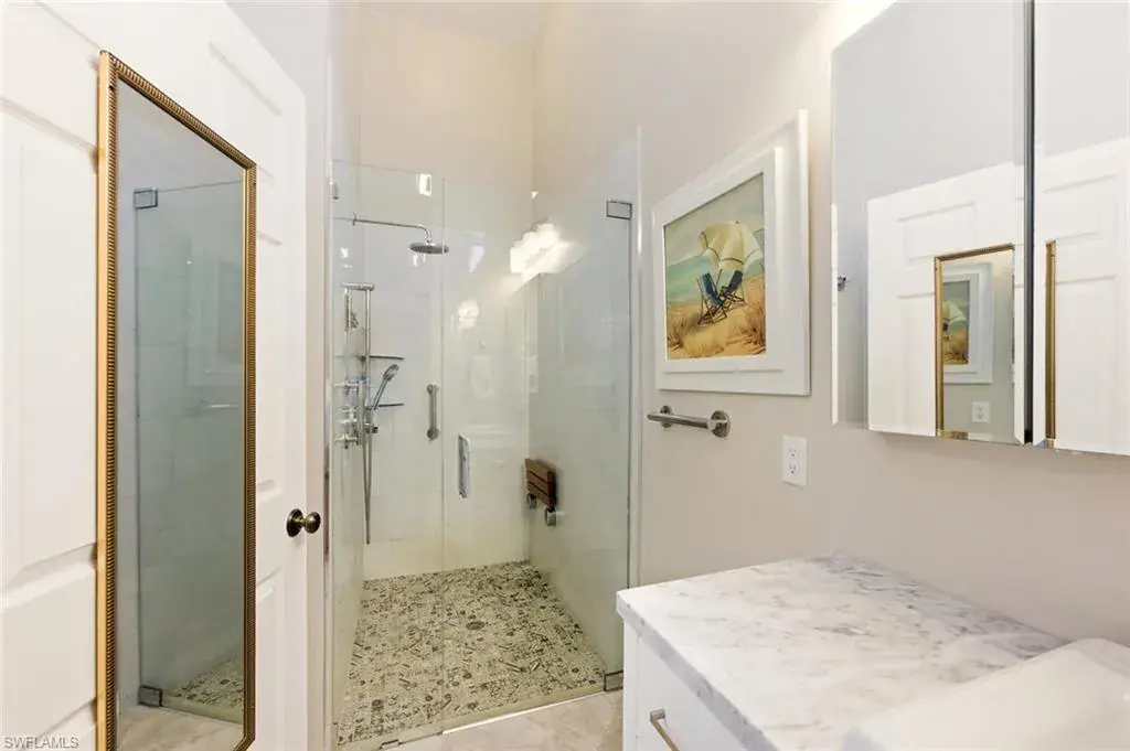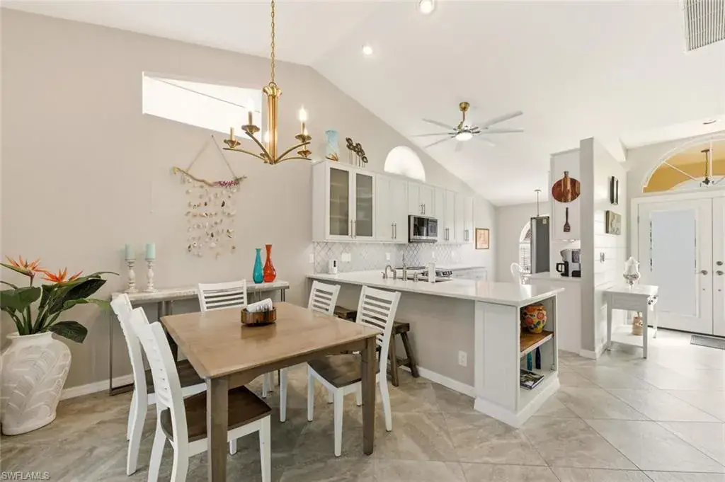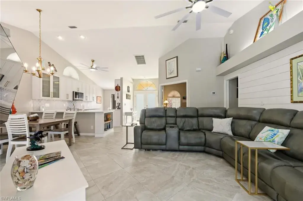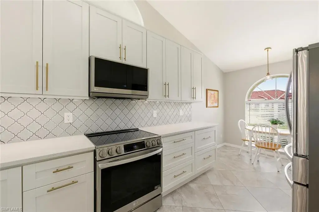 Completely refashioned single family pool home in Berkshire Lakes! This move-in-ready single-story residence of three bedrooms and two baths is situated on a generous canal front lot, great for fishing with room for a dock, and offers a perfect blend of style, comfort, and convenience. This home features Italian porcelain tile in the living areas, newer carpet in the bedrooms, designer lighting and fans throughout. The kitchen is finished with white shaker cabinetry, quartz counters complimented by a designer backsplash and sleek stainless steel appliances. The owner’s suite impresses with a frameless glass shower and window for natural light. The functional layout includes a convenient laundry room located within the home. Additional living area from the sunroom over looking the pool. Roof replaced (2025). Berkshire Lakes has low HOA dues, $640 per year, residents enjoy access to the best of Naples living. Located minutes to downtown Naples 5th Ave & 3rd St, beaches, and a variety of restaurants, shopping, entertainment.