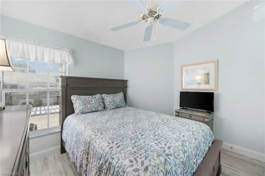 The condo features two generously sized bedrooms, each offering a tranquil, relaxing atmosphere. The primary suite includes a walk-in closet and an en-suite bathroom, providing a private oasis for unwinding after a long day. The second bedroom is equally charming, with easy access to the second full bathroom.
