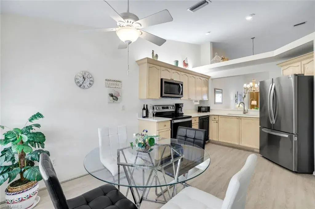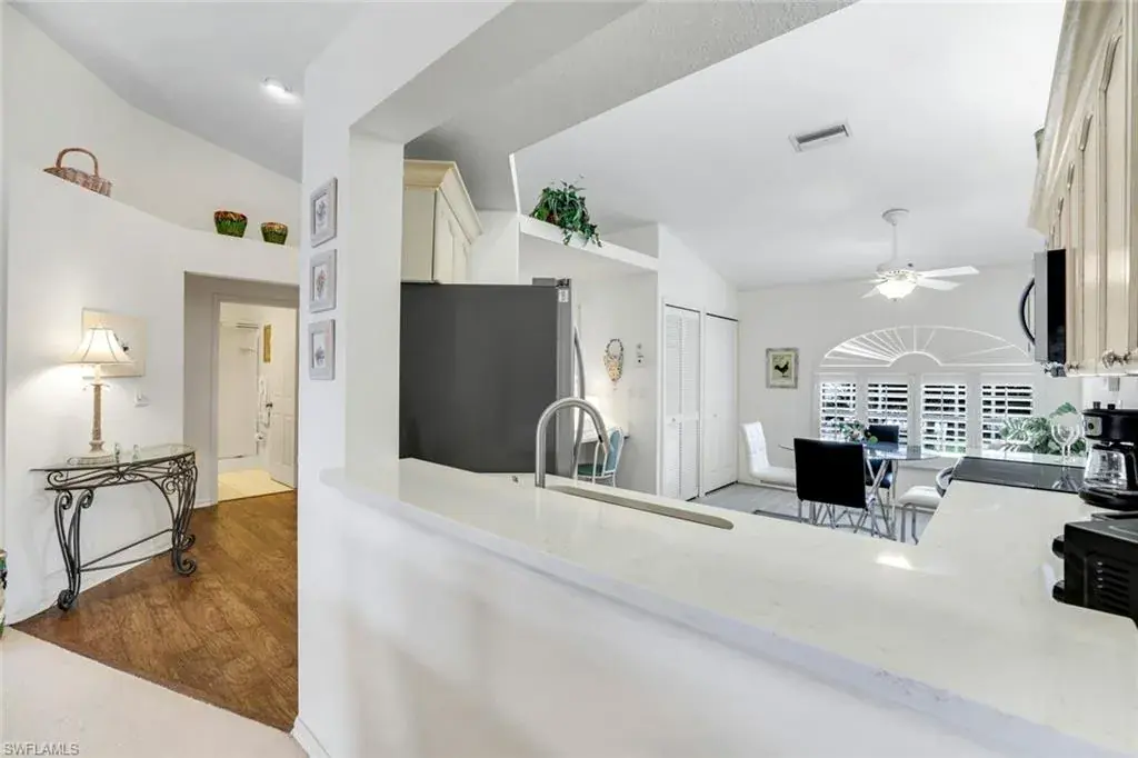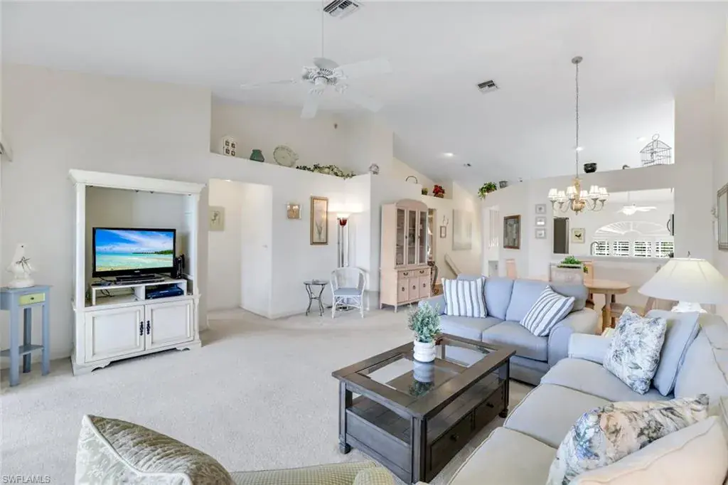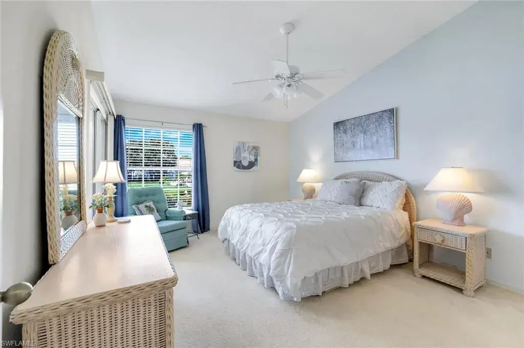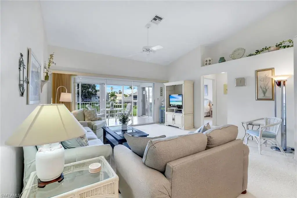 Wonderful lakefront condo with soaring ceilings, sparkling lake views and colorful sunsets from your own lanai. This meticulously maintained home is spacious and open with a split bedroom floor plan. The kitchen has great storage, large pantry and stainless steel appliances. Sip your morning coffee in the breakfast nook and revel in the beautiful sunrise. The large great room has dining and seating areas and opens up the the oversized lanai. The owner’s suite encompasses a large walk-in closet, an extra storage closet and dual sinks. A separate wing has your guest enjoying privacy. The spacious lanai is enjoyed nightly while sipping cocktails and watching the sun set. This is a great location within Bermuda Greens with a short walk to the community center as well as to the bocce court. Get involved with social gatherings or spend quiet days basking by the pool. Bermuda Greens is located in Imperial which is a 5 minute drive to Wiggins state park on the beach. Close to Mercato and a plethora of dining/shopping options. Located in the hub of all North Naples has to offer and under 30 minutes to SW Florida regional airport.