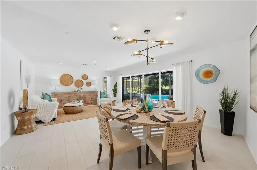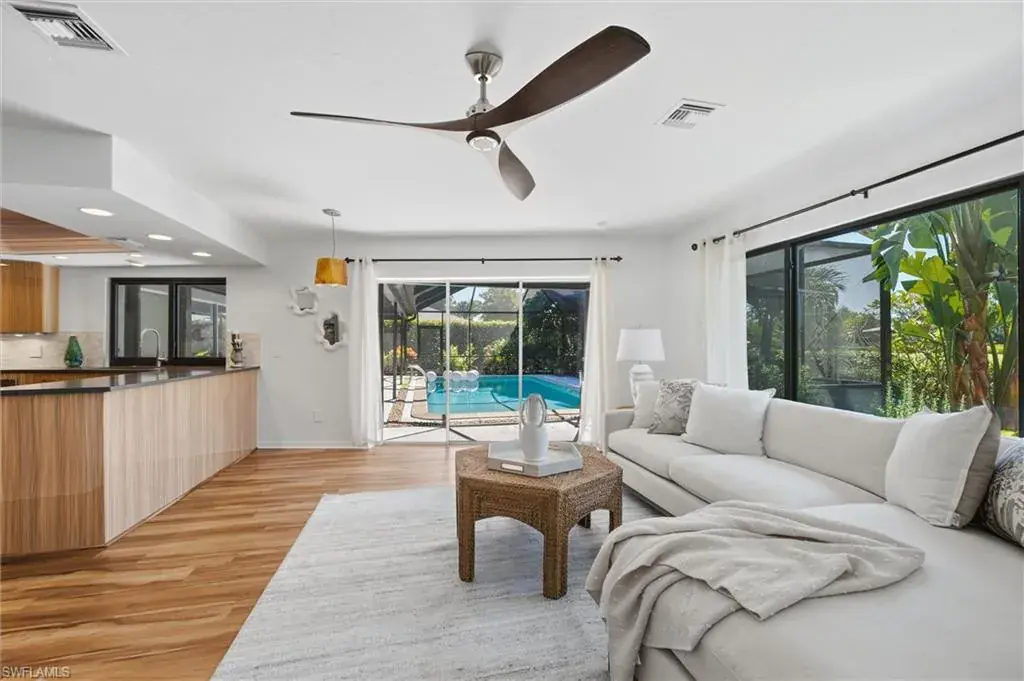 Positioned on one of the most desirable oversized corner lots in Big Cypress Golf and Country Club Community, this updated 3-bedroom, 2-bath pool home offers an exceptional combination of privacy, location, and value in the heart of Naples. Set back from the street with its own private driveway—one of only a few homes in the community with this distinction—the property enjoys a quiet setting, mature landscape design, and open golf course views rarely available in this neighborhood. The interior layout includes formal living and dining areas overlooking the screened pool and lanai, a redesigned kitchen with quartz countertops, custom cabinetry, and high-end stainless steel appliances, plus a comfortable family room. One bedroom functions perfectly as a home office or flex space, ideal for today’s lifestyle. Recent improvements include remodeled bathrooms, upgraded lighting and electrical, impact-resistant windows, a newer roof, and a spacious laundry and pantry area. The large screened lanai—partially covered for outdoor dining and relaxation—creates a private retreat surrounded by lush greenery and long golf course views. Located just around the corner from The Country Club of Naples, Vanderbilt Beach and minutes to downtown. Surrounded by high-end new construction, this property stands out for its privacy, quality, and central Naples address with an optional HOA. Homes with this combination of lot position, design, and condition are rarely available—schedule your private showing today.