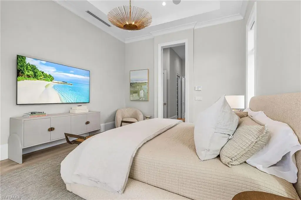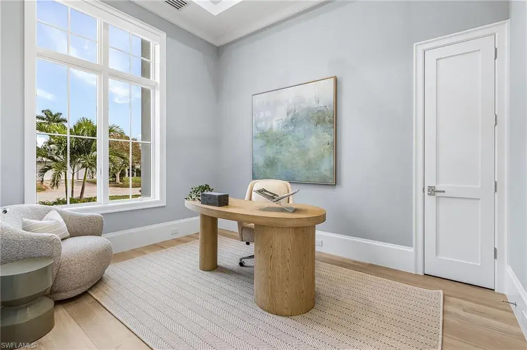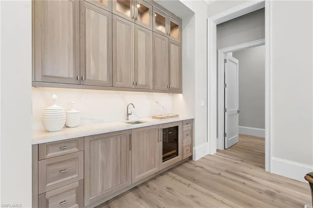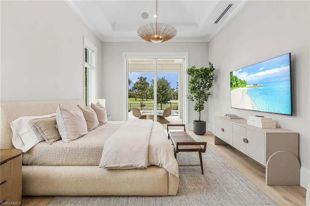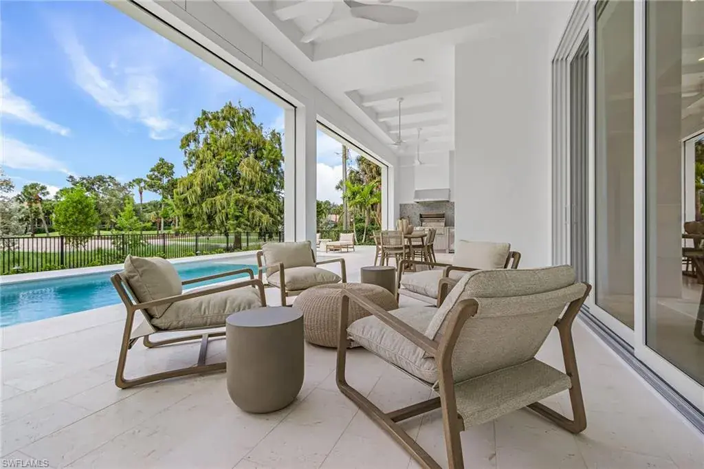 Experience luxury living in this brand-new, fully furnished home in the desirable Big Cypress Golf & Country Club — a centrally located, rapidly growing neighborhood in the heart of Naples. Built by Borelli Construction of Naples, a respected third-generation family builder, and designed and furnished by Studio Sea Bee, this residence offers timeless style and modern comfort with sweeping western golf course views and sunsets that fill the home with golden light. The thoughtful floor plan features four private en-suite bedrooms, each positioned for comfort and privacy, plus a three-car garage. The open great room design is ideal for entertaining, with a wet bar, large walk-in pantry, and dining area that flows seamlessly to the expansive covered lanai equipped with electric screens and hurricane shutters. Outside, enjoy a 45-foot heated pool with sun shelf and spa, perfectly oriented for afternoon sun and glowing evening skies. The primary suite showcases serene golf course views, dual custom closets, and a luxurious spa-like bath. Throughout the home, every detail has been meticulously crafted — white oak flooring, LED recessed lighting, designer fixtures, Wolf and Sub-Zero appliances, custom trim and millwork, and built-in Sonos speakers for whole-home sound. Additional features include a whole-house generator with a 1,000-gallon underground propane tank, hardwired automated window shades, and custom closet systems throughout. Enjoy modern luxury and relaxed golf course living in one of Naples’ most convenient locations — just minutes from beaches, dining, and shopping.