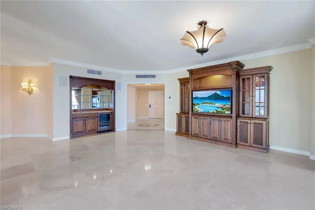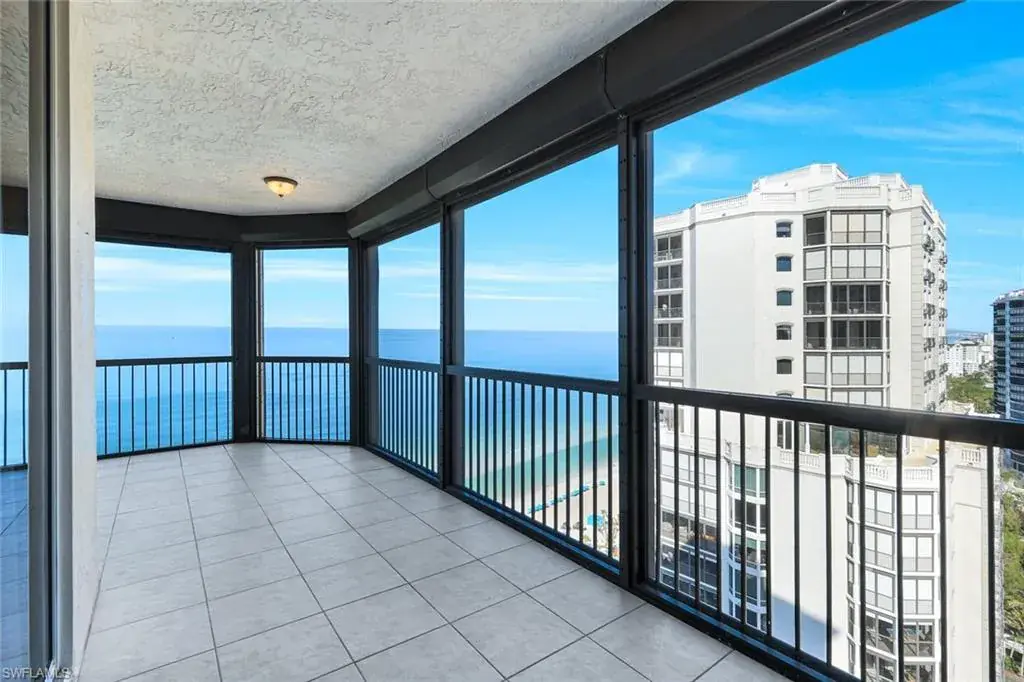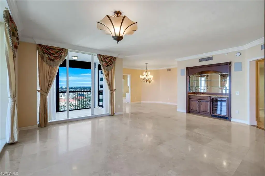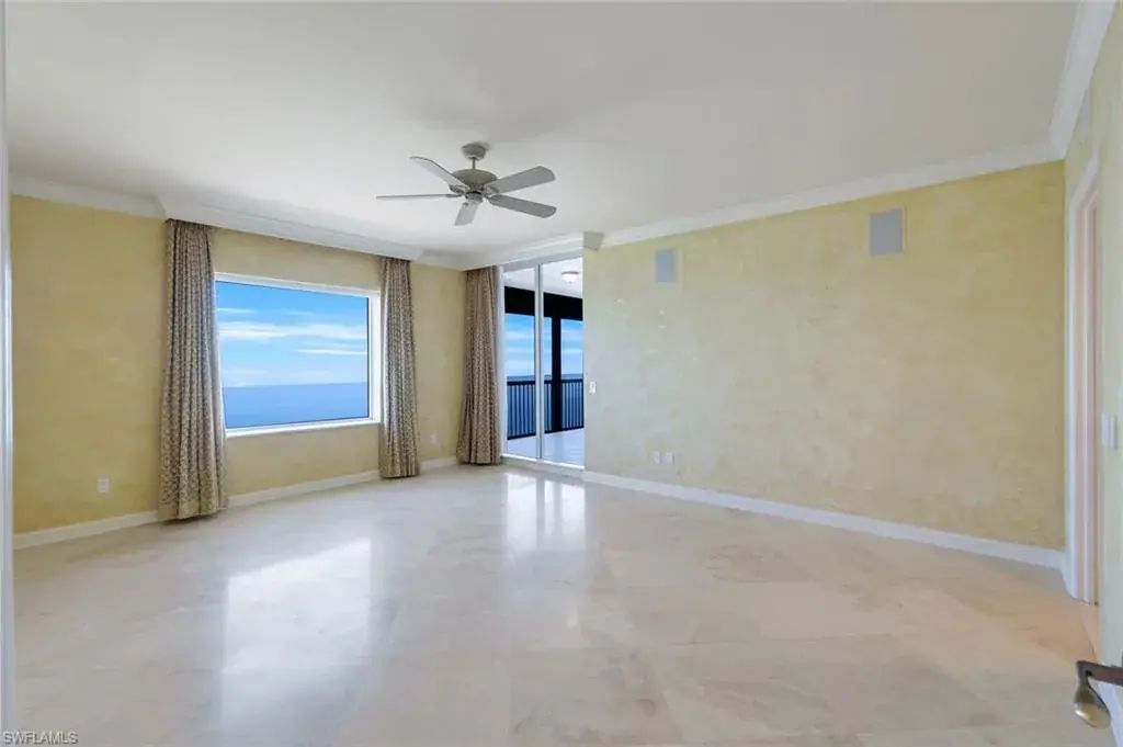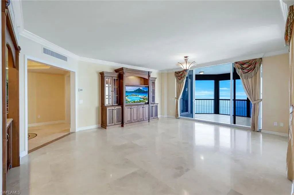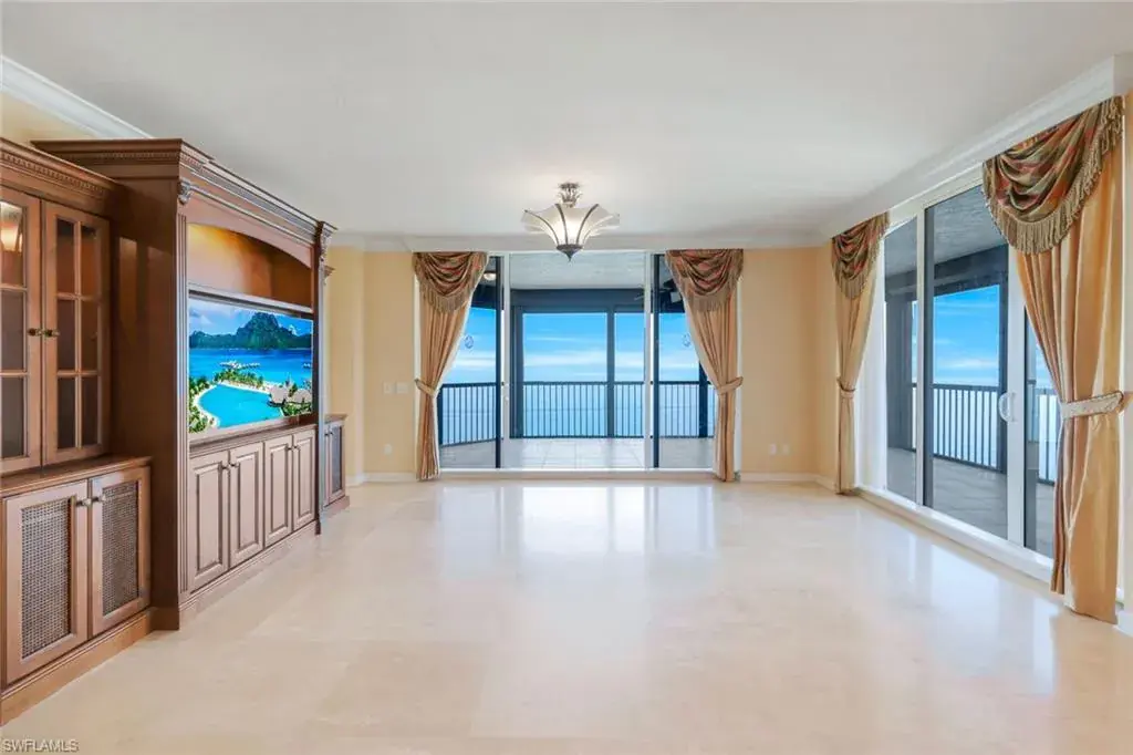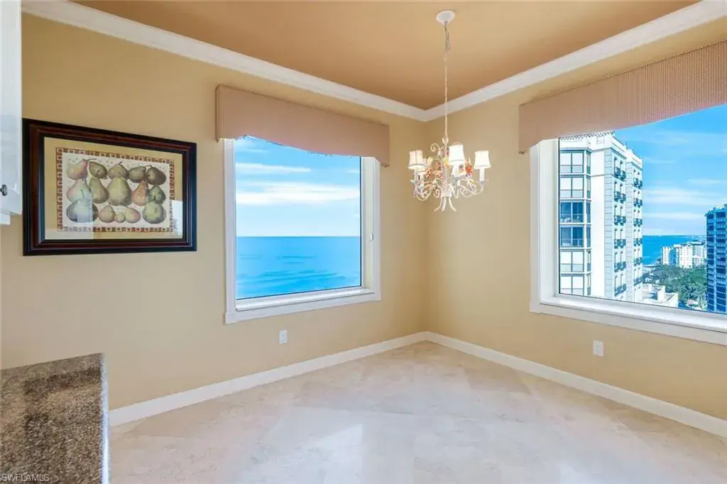 Welcome to the epitome of luxury living at The Biltmore. Residence 1904 is in the private gated community of Bay Colony within Pelican Bay. From this high end-unit, you can enjoy the spectacular sunsets over the beach and gulf, and the sunrises from the east. The living room, dining room and primary bedroom each have direct access to a 12′ x 26′ balcony. Additionally, the den/study and two guest bedrooms with en-suite bathrooms, have direct access to a 10′ x 33′ balcony. The living room enjoys a built-in entertainment center with TV and glass display cabinets, plus a built-in bar with wine cooler and glass display shelves. The den/study contains a built-in desk with overhead storage and cabinets, opposite is a display cabinet with TV and bookshelves. The chef’s eat-in kitchen boasts marble countertops and center island. The three picture windows in the kitchen have magnificent views of the gulf, beaches and sunsets, The room is appointed with high-end brands: Sub-Zero refrigerator w/icemaker, Wolfe cooktop, Bosch dishwasher, and new GE Profile double ovens and a reverse osmosis water system serving the water and ice for the fridge, plus a separate faucet at the sink. Additionally, there is a walk-in pantry with storage shelves and a large wine rack. The Biltmore offers superior management and maintenance teams, plus a 24-hour front desk. All leading to exceptional and timely service to its residents.