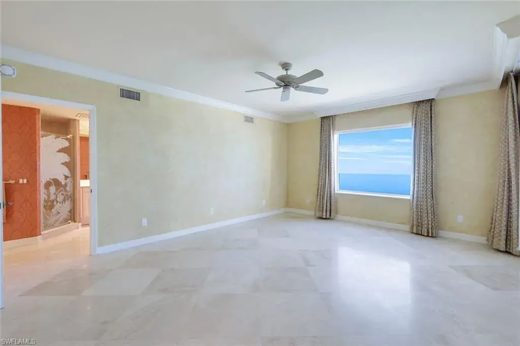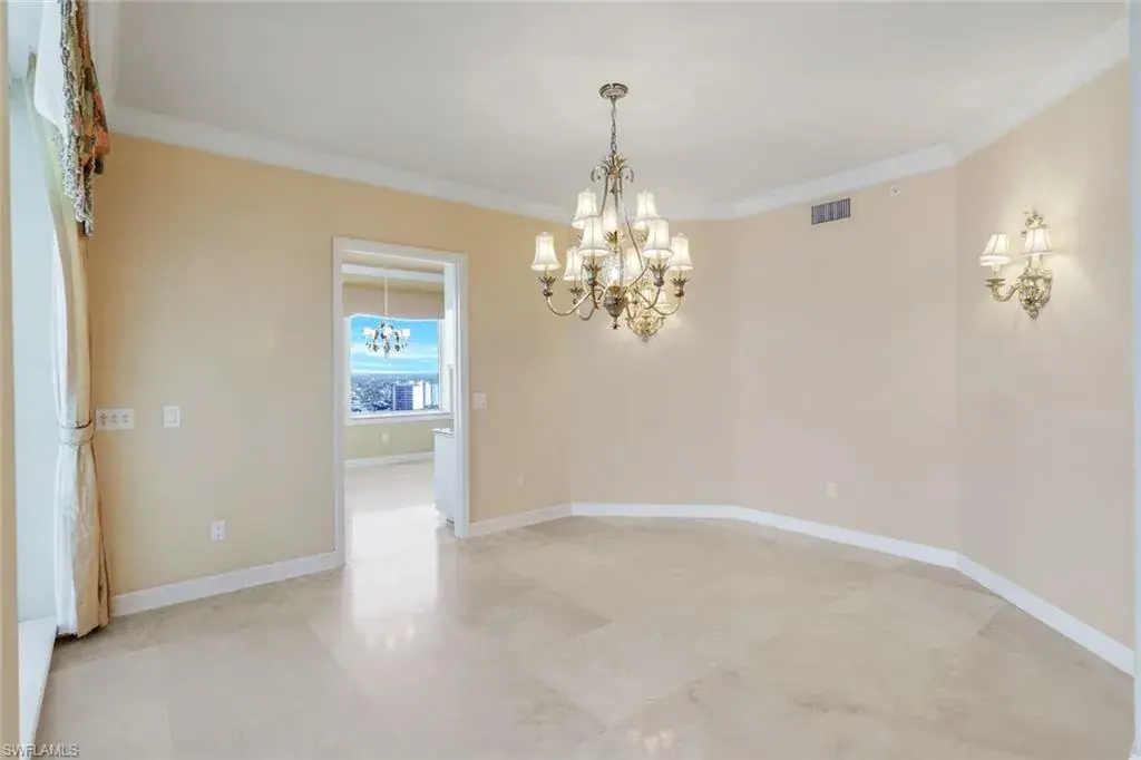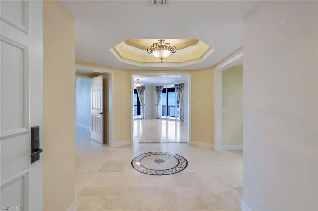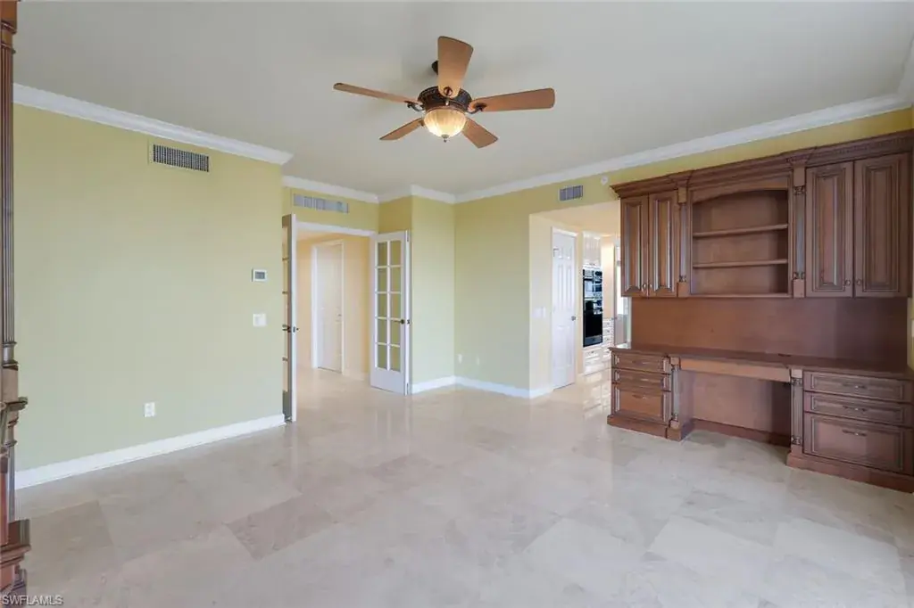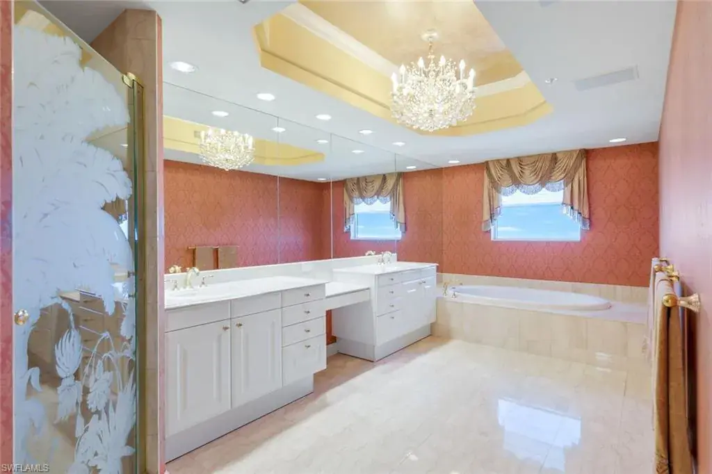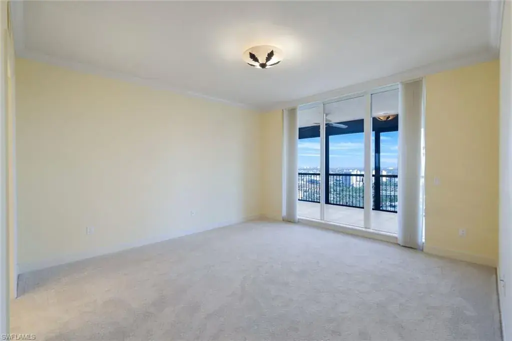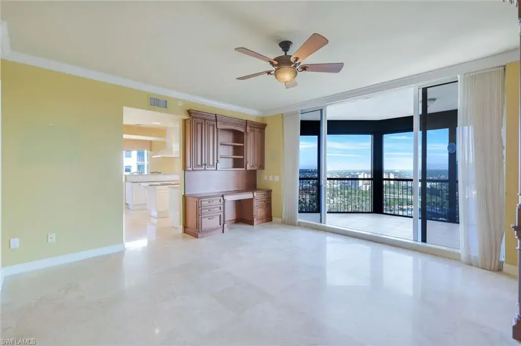 Welcome to the epitome of luxury living at The Biltmore. Residence 1904 is in the private gated community of Bay Colony within Pelican Bay. From this high end-unit, you can enjoy the spectacular sunsets over the beach and gulf, and the sunrises from the east. The living room, dining room and primary bedroom each have direct access to a 12′ x 26′ balcony. Additionally, the den/study and two guest bedrooms with en-suite bathrooms, have direct access to a 10′ x 33′ balcony. The living room enjoys a built-in entertainment center with TV and glass display cabinets, plus a built-in bar with wine cooler and glass display shelves. The den/study contains a built-in desk with overhead storage and cabinets, opposite is a display cabinet with TV and bookshelves. The chef’s eat-in kitchen boasts marble countertops and center island. The three picture windows in the kitchen have magnificent views of the gulf, beaches and sunsets, The room is appointed with high-end brands: Sub-Zero refrigerator w/icemaker, Wolfe cooktop, Bosch dishwasher, and new GE Profile double ovens and a reverse osmosis water system serving the water and ice for the fridge, plus a separate faucet at the sink. Additionally, there is a walk-in pantry with storage shelves and a large wine rack. The Biltmore offers superior management and maintenance teams, plus a 24-hour front desk. All leading to exceptional and timely service to its residents.