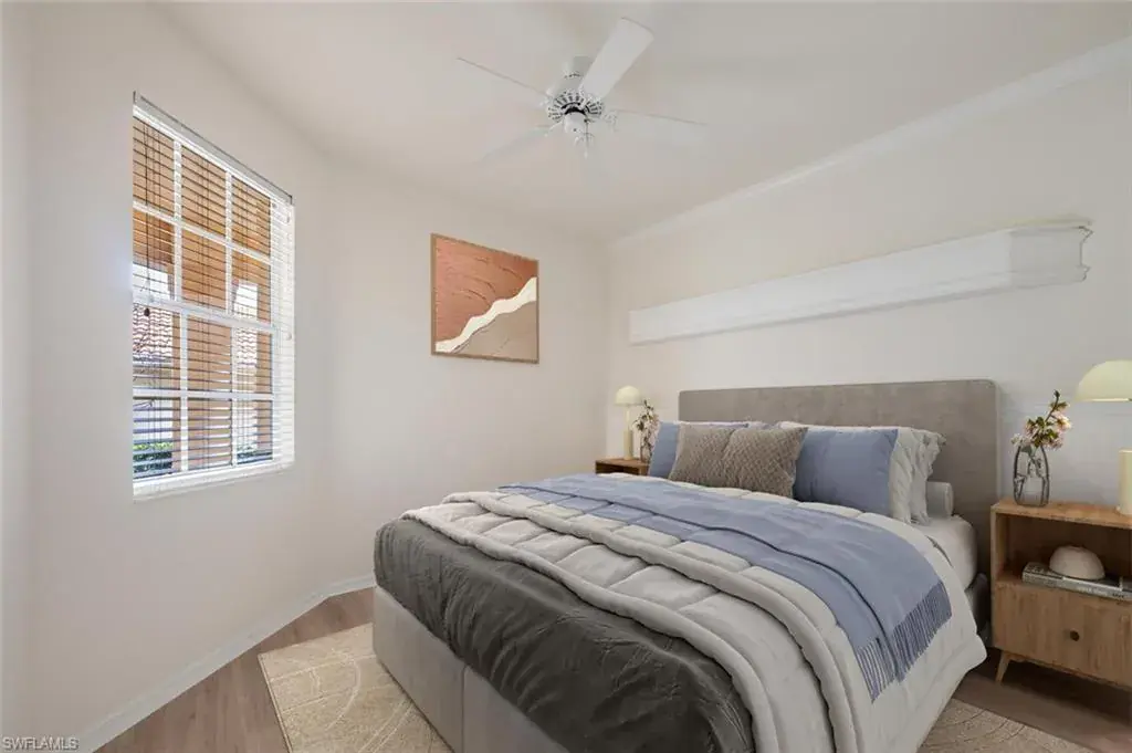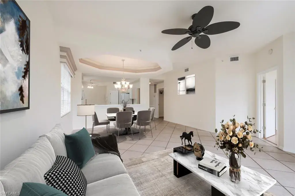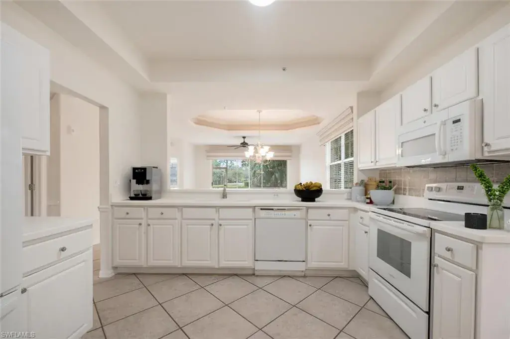 THIS PRIME FIRST FLOOR END LOCATION IS PRICED TO SELL! Forest Glen Golf & Country Club is Rated in TOP THREE for bundled Golf Course resort communities. Undeniably the best prime end location on first floor over looking golf course, lake and preserve. Two bedrooms, plus den, screened-in lanai and 1- car garage. TOTALY REFRESHED with new paint (dover white) as blank canvas to decorate as you like. Extra details include crown molding, tray ceilings to this bright sunny residence. Flooring is tile or bamboo wood for easy care. Impressive gated resort community with 18 hole championship golf course, driving range, YOU CAN OWN YOUR GOLF CART HERE, ( just pay trail fees) tennis, pickle ball, bocce ball, poolside Eagles Nest bar, enormous resort pool, spa, fitness center, ladies & mens locker rooms, pro shop, biking and walking paths! Dining room events include Seafood Buffets, Prime Rib night, Karaoke nite! Forest Glen is action packed with fun events!
