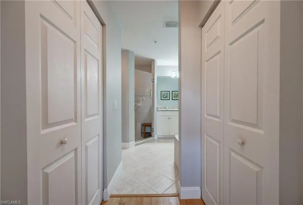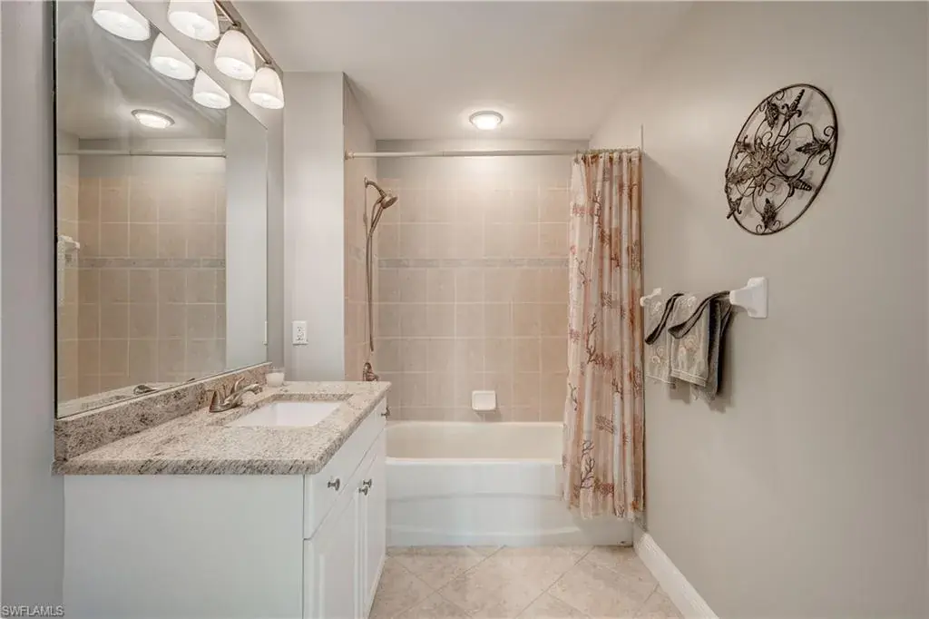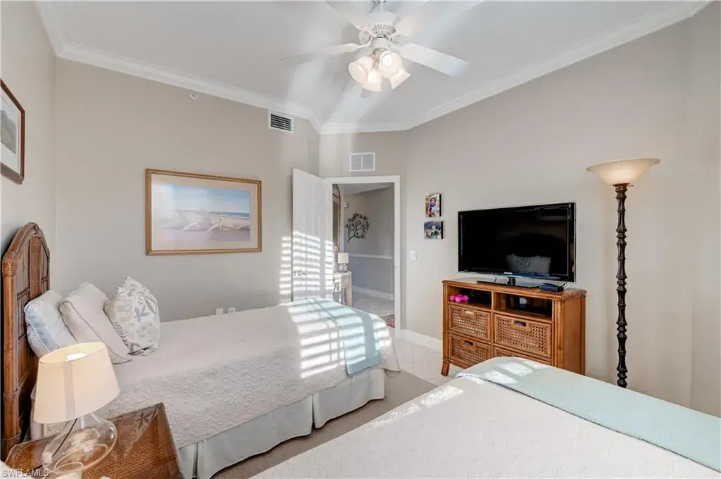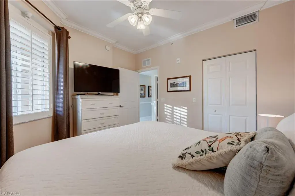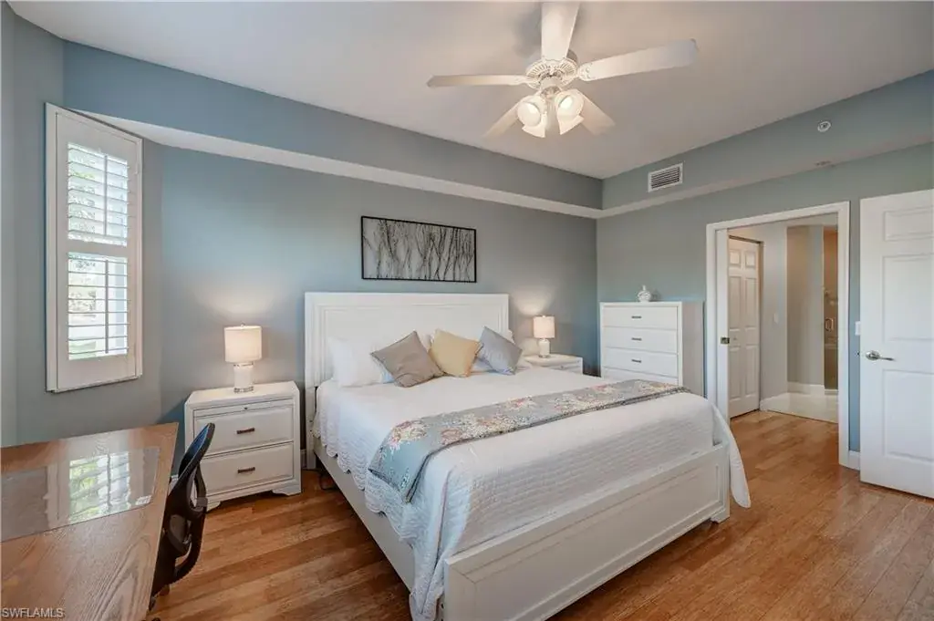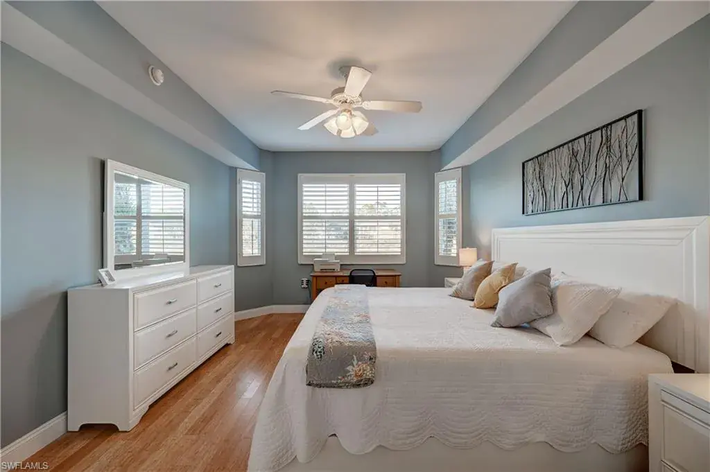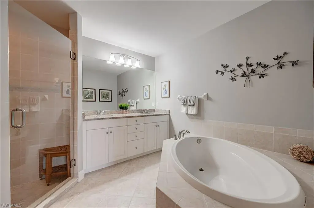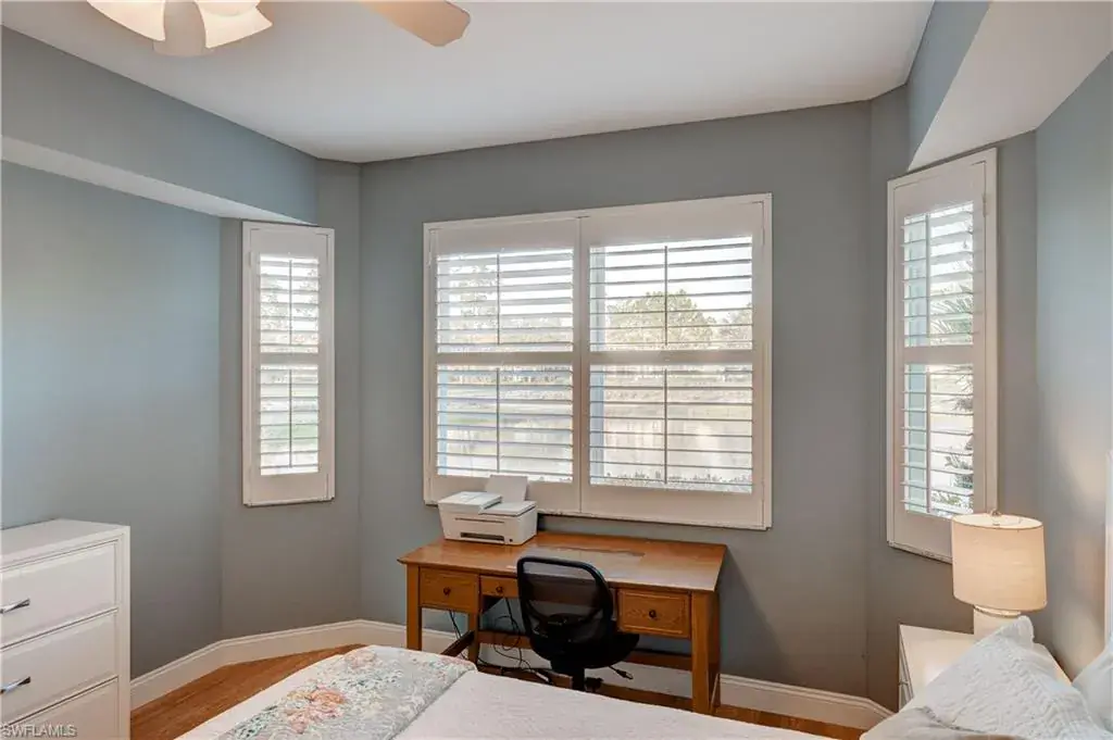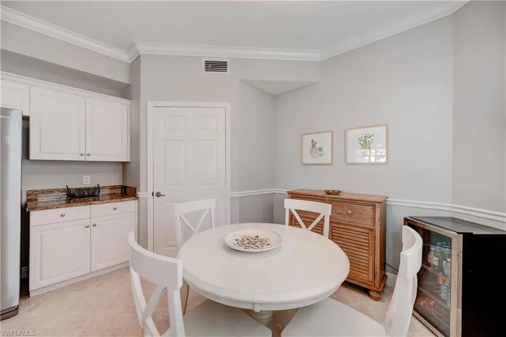 A stunning corner unit that lives like a single-family home while offering the maintenance-free convenience of a condo. This 2+Den, 1-car garage residence is light, bright, and freshly painted, with breathtaking lake and golf course views that remain private and tranquil, thanks to the cart path being across the lake. The open floor plan features granite countertops throughout, tile on the diagonal, and bamboo flooring in the bedrooms, creating a seamless blend of elegance and comfort. The kitchen boasts a stylish backsplash, stainless steel appliances, and a large pantry, while the spacious great room flows effortlessly onto the screened lanai—perfect for entertaining. Thoughtful upgrades include custom fans and lighting, plantation shutters, crown molding, a frameless glass shower door, and his-and-her walk-in closets. With impact doors and windows, a dedicated laundry room with ample storage, and an included PHANTOM SCREEN on the front door for a refreshing cross breeze, every detail has been designed for effortless Florida living. GOLF CART, GARAGE TOOLS, AND TWO BIKES ARE INCLUDED! Nestled in an amenity-rich community with bundled golf (no wait list), tennis, pickleball, resort-style pools with on-site dining, and more, this home offers a truly exceptional lifestyle just minutes from Naples and Marco Island beaches, shopping, dining, and everyday conveniences. Don’t miss this rare opportunity—schedule your private showing today!