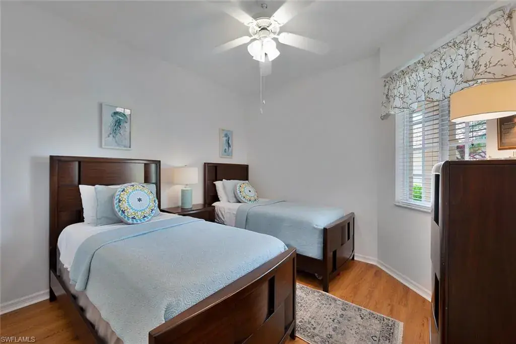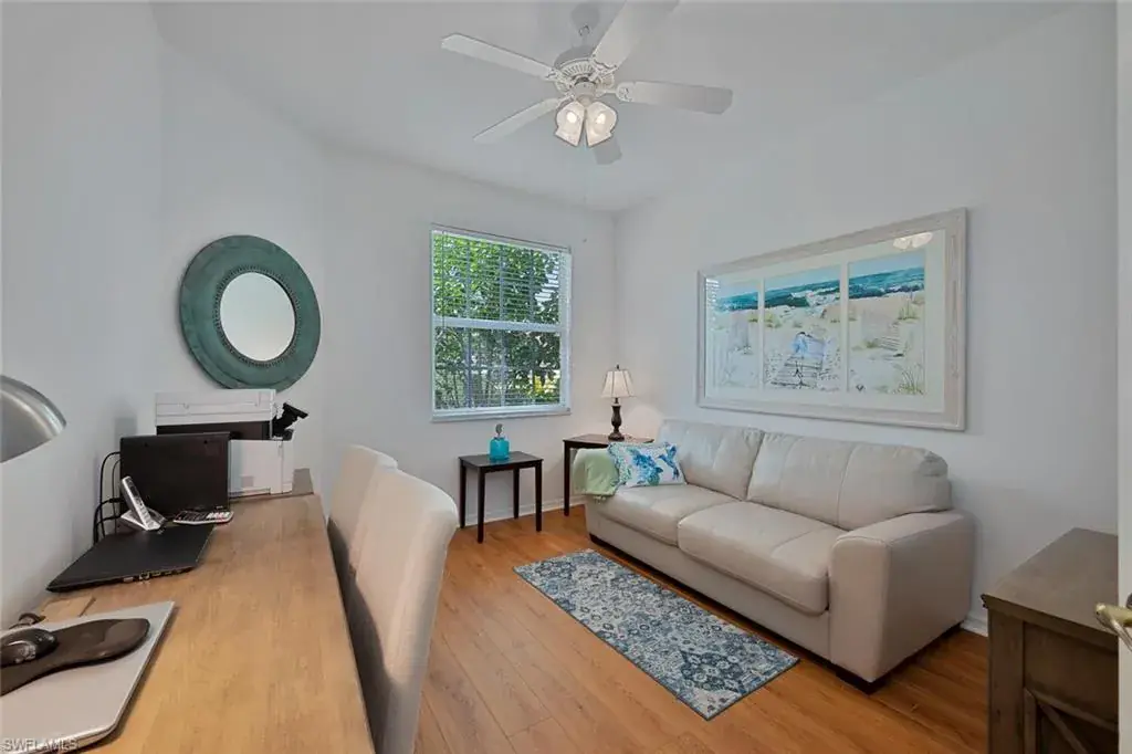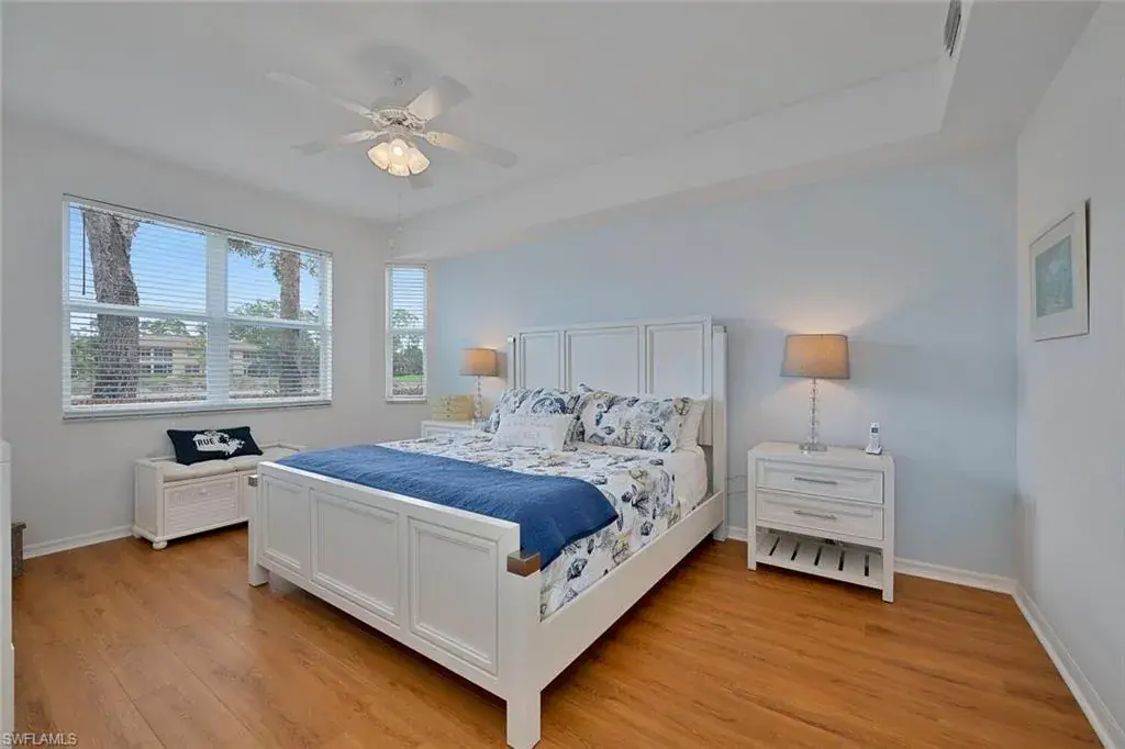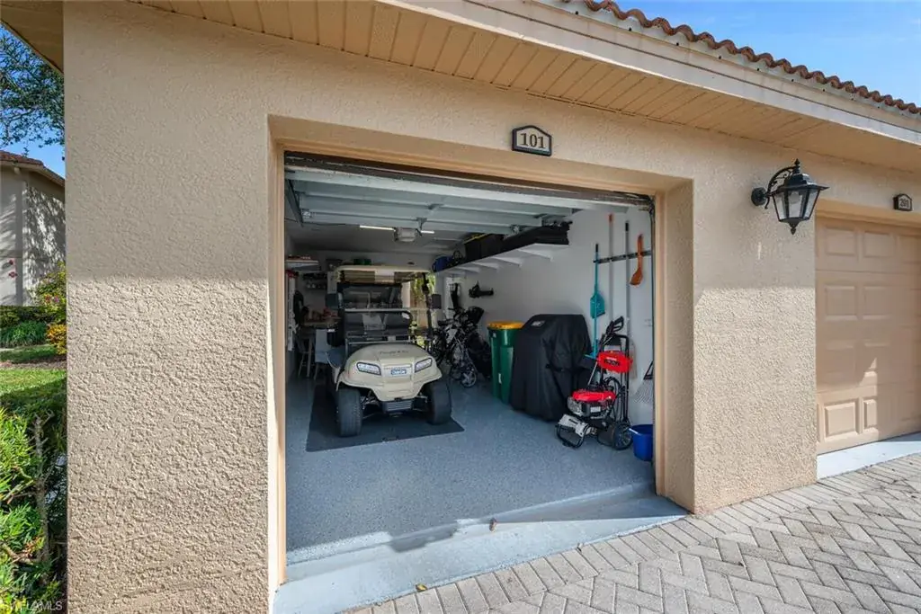 Florida living at its finest! This immaculate and spacious Turnkey furnished 2-Bedroom + Den, 2-Bath, First Floor, END UNIT condo comes with a Full Golf Membership! Well designed and very tastefully furnished, this condo features tile flooring throughout the main living areas, vinyl flooring in the bedrooms and den, updated light fixtures, Impact-Resistant Doors/Windows and a detached 1 car garage. The oversized eat-in kitchen offers stainless steel appliances, a large pantry, and kitchen gadgets galore, allowing you to settle in quickly and easily. The spacious Master Suite is a true retreat, featuring two large walk-in closets, a Master bath with a separate tub and shower and dual sinks. Step onto the screened lanai to relax and take in the stunning long lake views and the picturesque 6th hole of the golf course. This home offers the perfect blend of comfort, style, and resort-style living. Nestled within the sought after and amenity-rich Forest Glen Golf and Country Club community which offers bundled golf, pickleball, tennis, bocce, an expansive socially active clubhouse with Bar & Restaurant, Resort Style pool, three satellite pools, an Outdoor Bar and Grill and acres of pristine nature trails. Forest Glen is centrally located and only minutes to 5th Ave, the Naples Zoo, Marco Island and many nearby shops and restaurants. Don’t miss this great home.