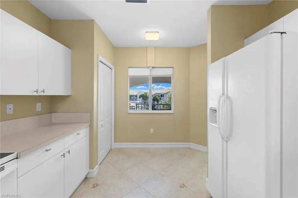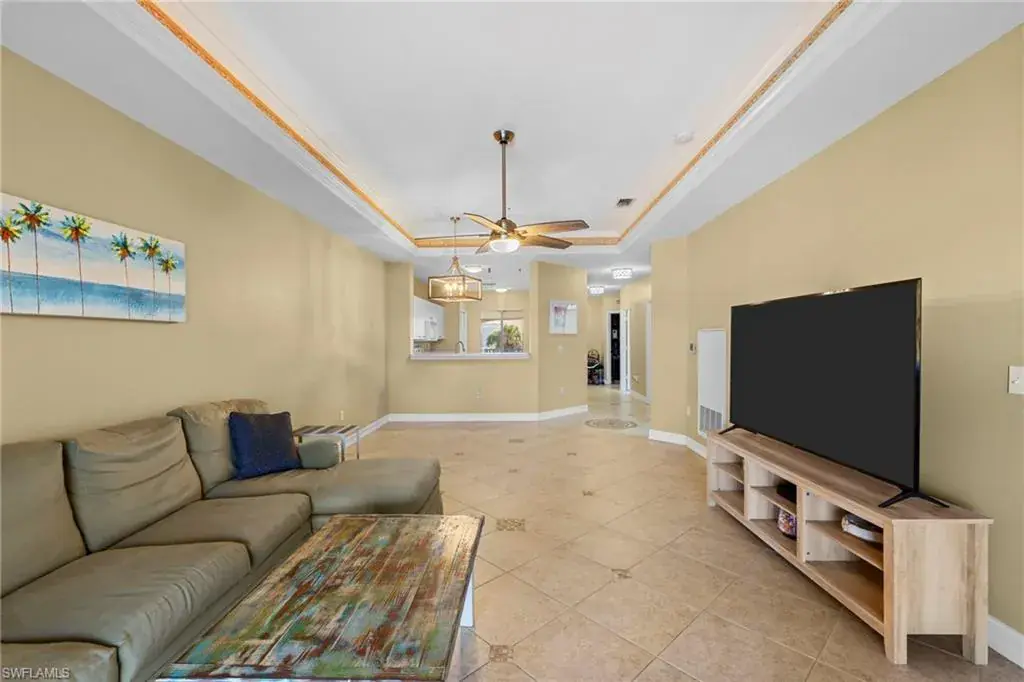 ACCEPTING BACK-UP OFFERS! PROPERTY UNDER CONTRACT WITH CONTINGENCIES. BEAUTIFUL 3RD FLOOR, 3-BEDROOM “END-UNIT” CONDO WITH RAISED LIVING ROOM CEILING, IN A PET-FRIENDLY BUILDING W/ ELEVATOR & CARPORT SPACE! This pristine & well-maintained Naples condo offers a new HVAC in 2022, new interior paint in 2020 & a new washer/dryer in 2020! Features extra natural light courtesy of the extra windows available only in a rare end-unit! This 3-bedroom, 2-bathroom residence features neutral marbled tile laid on the diagonal throughout, raised ceilings with double crown molding (12″ higher in living room than units on other floors), a bright kitchen with white cabinetry, and a large laundry room with generous storage. The 3rd bedroom includes a large nook for an additional office/workspace in the bedroom. Step outside and enjoy peaceful mornings or relaxing evenings on the spacious screened-in lanai. This newer building features concrete block construction and a tile roof. Blue Heron is a gated community with low HOA fees and desirable amenities including a clubhouse & resort-style pool. Ideally located just minutes from Naples’ world-renowned white sand beaches, 5th Avenue, shopping, dining, and easy access to I-75.