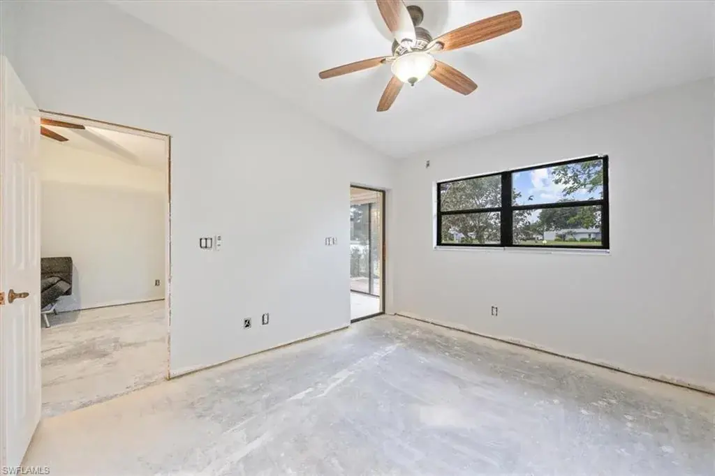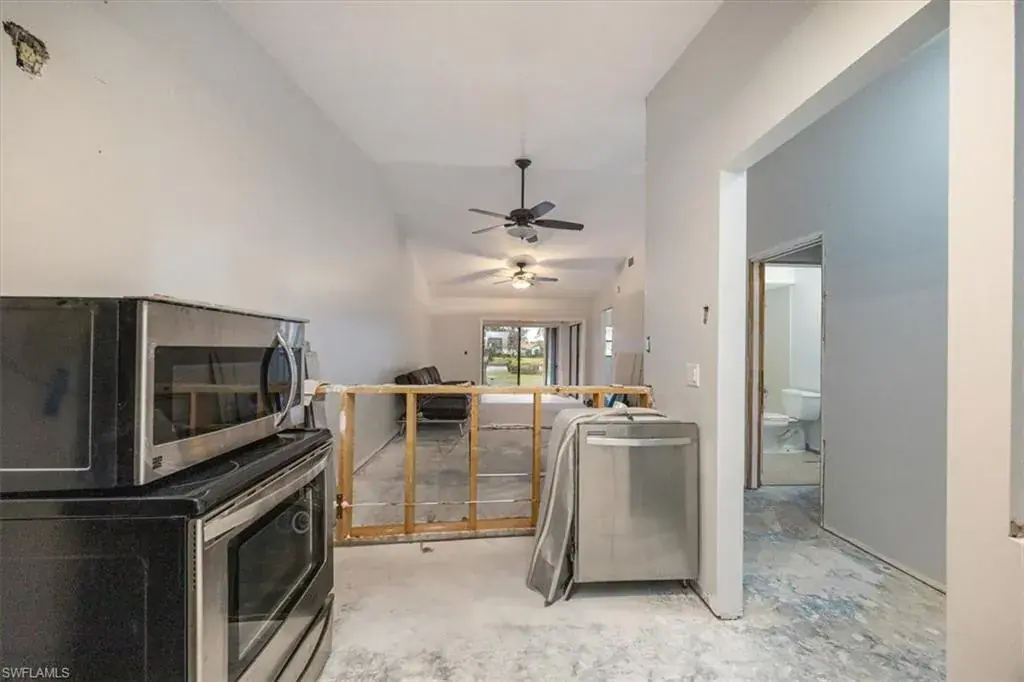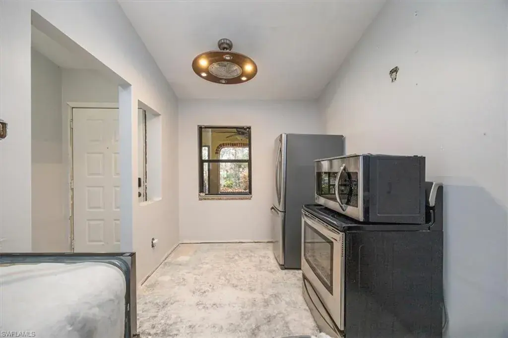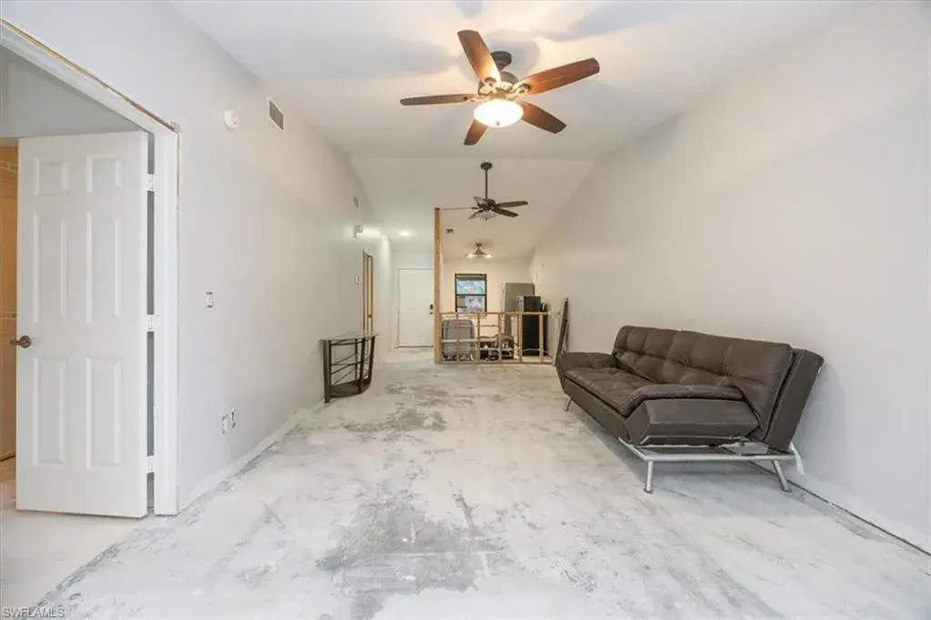 DESIGN YOUR DREAM HOME! This charming 2-bedroom, 2-bath, ground-floor condo presents a unique opportunity to create your ideal living space. Sold in decorator-ready condition, it’s a blank slate waiting for your personal vision! The unit comes with kitchen appliances and a washer and dryer for added convenience. This is an AS-IS sale – needs flooring, cabinetry, door casements, etc. Recent upgrades include new roofs installed in 2022, along with impact windows and roll-down shutters on the lanai for extra peace of mind. Relax on the screened front lanai or unwind on the back patio, which overlooks a serene lake and beautifully maintained grounds. Nestled in the peaceful Boca Ciega Manor community, this low-density neighborhood features tranquil lakes, lush tropical landscaping, and amenities like a community pool and spa. Seize this rare opportunity to customize your home in one of Naples’ most desirable locations!