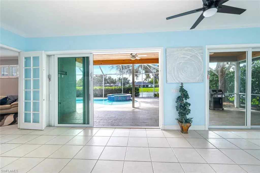 Rarely Available Lakefront Gem in Boca Palms! Experience breathtaking sunsets and sparkling lake views from this beautifully maintained southern-exposure home, perfectly situated in the highly sought-after Boca Palms community. This fabulous 3-bedroom + den, 2-bath residence blends comfort, style, and peace of mind with thoughtful upgrades throughout. Enjoy the benefits of a newer roof (2019), a custom-designed pool and spa (2017), plantation shutters, and hurricane-impact rated exterior doors for ultimate security and convenience.The open-concept kitchen is a chef’s dream — complete with granite countertops, tile backsplash, stainless steel appliances, and a sunny eat-in dining area perfect for casual gatherings.The spacious primary suite offers a serene retreat featuring dual walk-in closets and a spa-style bathroom with a soaking tub, frameless glass shower, and elegant granite finishes. Two additional bedrooms include built-in closets, while the den provides a versatile space ideal for a home office or guest room. Step outside to your private outdoor oasis, where a sparkling pool and spa overlook the tranquil lake — the perfect setting to relax, entertain, and enjoy Florida’s natural beauty. Boca Palms residents enjoy resort-style amenities, including a community pool, clubhouse, pickleball, and tennis courts — all just steps away. Located only five minutes from Mercato’s upscale shopping, dining, and nightlife, as well as Vanderbilt Beach and Wiggins Pass State Park, this home truly captures the best of Naples living. Zoned for top-rated schools (Pelican Marsh Elementary, North Naples Middle, and Aubrey Rogers High School), this property offers the perfect blend of location, lifestyle, and luxury. Don’t miss your chance to own this exceptional lakefront home — schedule your private showing today!