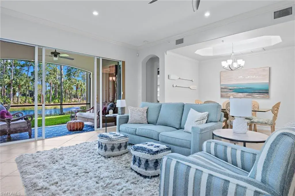 Location is everything!! Enjoy a resort lifestyle unique to Bolero at The Ritz-Carlton Naples, Tiburon. Bolero is one of the best located communities within Tiburon, and properties are rarely available. This meticulously maintained condominium offers a neutral palette with coastal decor. And, it’s just a short distance to the resort style community pool, Tiburon Golf Club, and The Ritz-Carlton Hotel! The generously sized open floor plan welcomes you, flowing effortlessly into a beautiful lanai area where you will enjoy tranquil views of the lake, fountain, and 10th hole of the Greg Norman designed golf course. Enter the expansive primary suite to find an abundance of natural light streaming from multiple windows, and floor to ceiling sliders. The luxurious primary bathroom features dual sinks, soaking tub, beautiful mirror, a walk-in closet and large linen closet. The spacious dining room and kitchen complete the open concept living area, perfect for entertaining. There are two additional bedrooms and a full bath for your guests to enjoy. This wonderful floor plan meets the needs of the most discerning buyers. Featuring a space that lives like a single family home with direct access from the attached 2-car garage into the kitchen. Perfect for the family that enjoys maintenance free living, and the luxury lifestyle of an outdoor oasis. NEW Hot Water Heater and NEWER A/C. Tiburon boasts 36 holes of Greg Norman-designed championship golf, concierge services, restaurants, fitness center, spa, tennis and private beach shuttle. Tiburon is located close to beaches, world-class shopping and dining. GOLF & SOCIAL MEMBERSHIPS are IMMEDIATELY available, but not required to live in the community. Just 3 miles to Vanderbilt Beach and 1.5 miles to the shops and restaurants at Mercato.