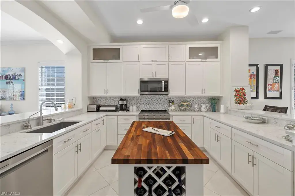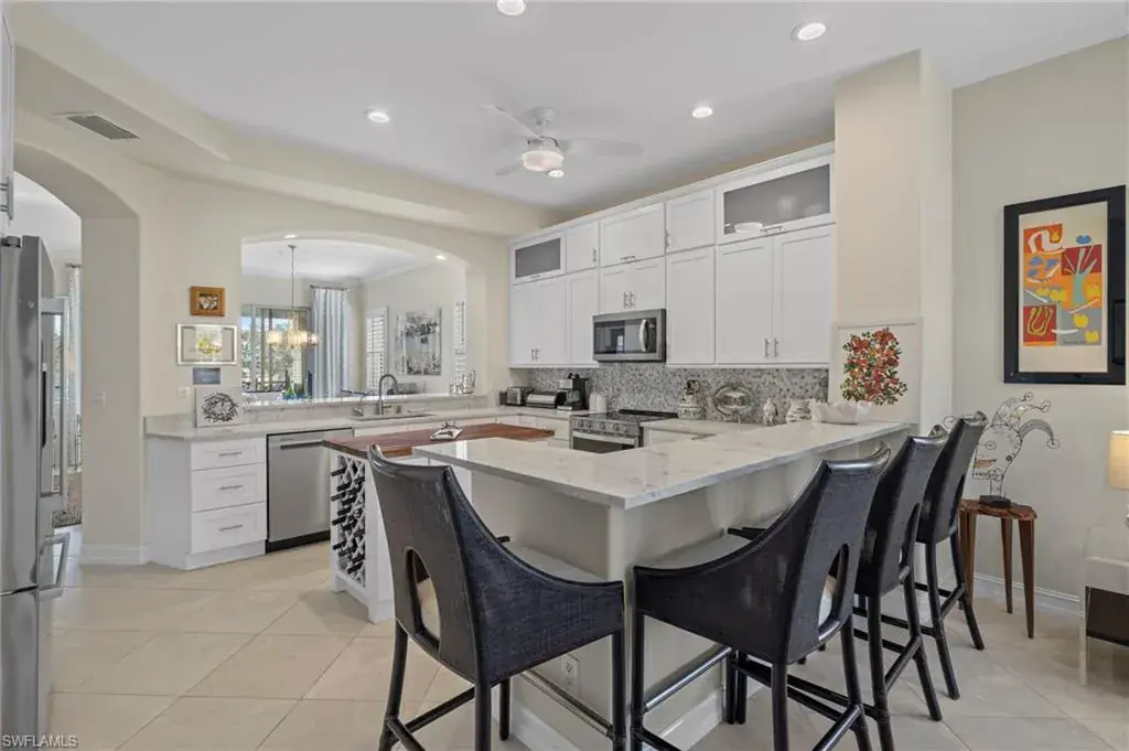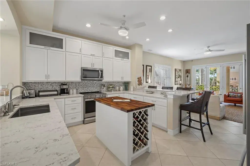 Stunningly updated condominium with breathtaking views of the lake, fountain, and Tiburon golf course at The Ritz-Carlton Golf Resort. Addressing every need of the most sophisticated buyers, this property features a beautifully RENOVATED gourmet kitchen with quartz counters, high-end stainless steel appliances, island with wine storage, and pantry with pull-out drawers. The luxurious porcelain tile floors greet you as you step off the elevator into your private oasis. Located in popular Bolero, just a short distance to The Ritz-Carlton Hotel and Tiburon Golf Club. This stunning residence lives like a single-family home with a living room, dining room, separate family room, and a spacious primary suite. Two guest bedrooms and oversized lanai complete the space. Electric hurricane shutters and StormSmart screen allow you to lock and leave. Park your cars in the private 2 car garage connected to the main lobby. MEMBERSHIPS are AVAILABLE but not mandatory. Tiburon features 36 holes of Greg Norman-designed championship golf, concierge services, restaurants, a fitness center, spa, tennis, and private luxury beach shuttle. World-class shopping and dining just minutes away. Newer Roof