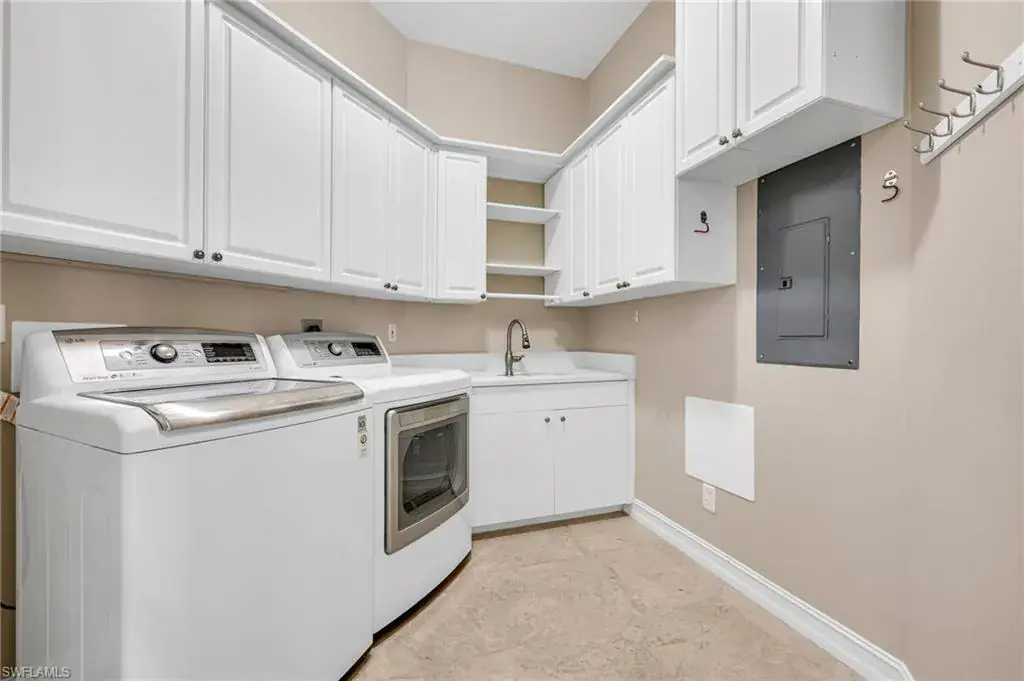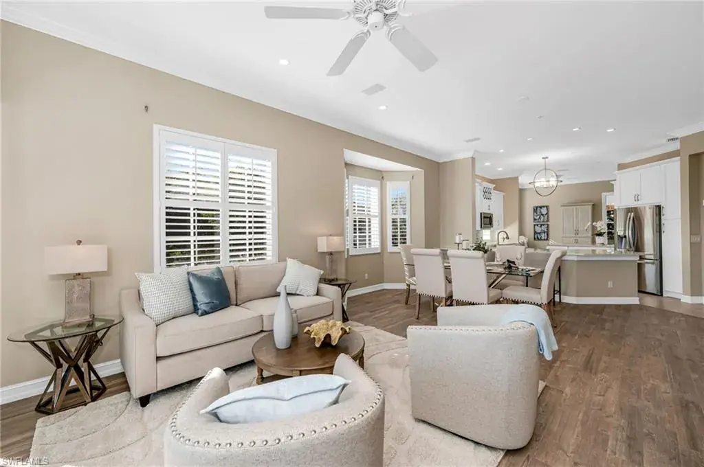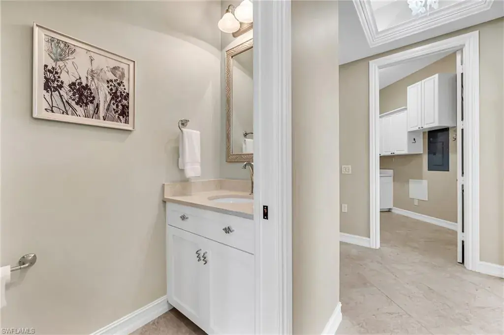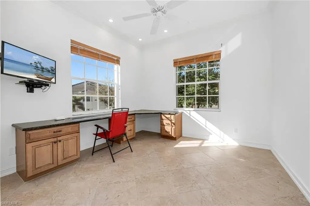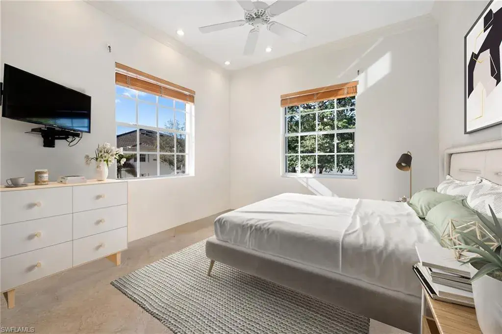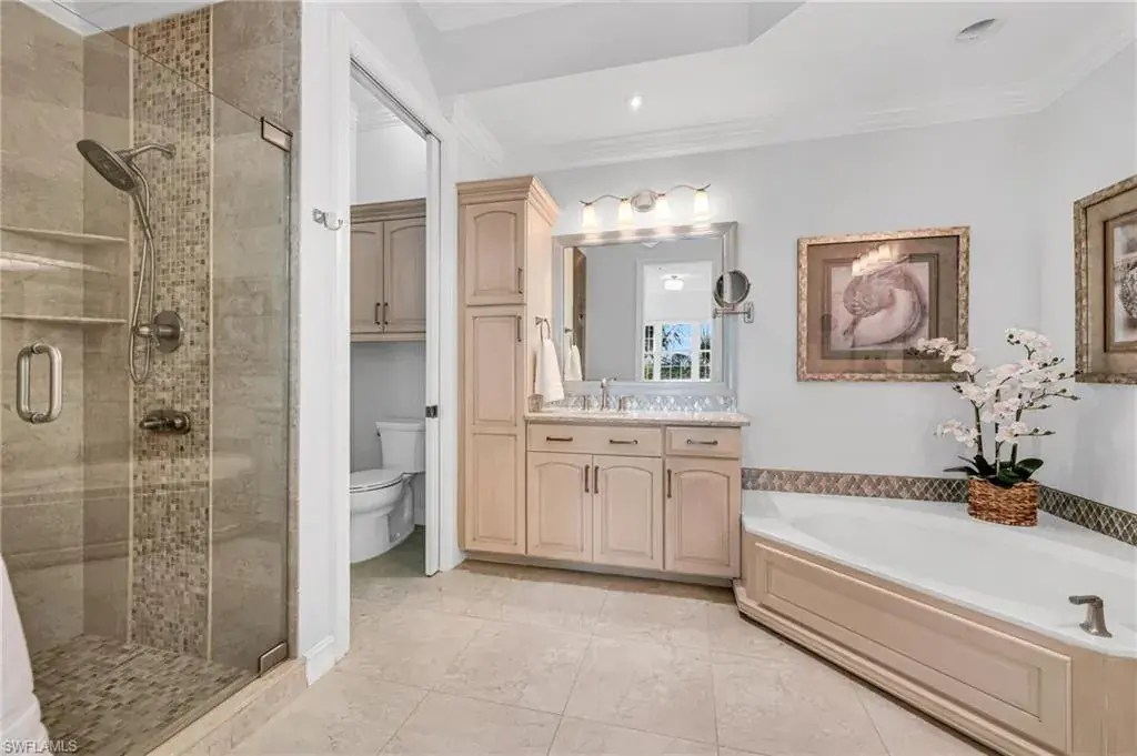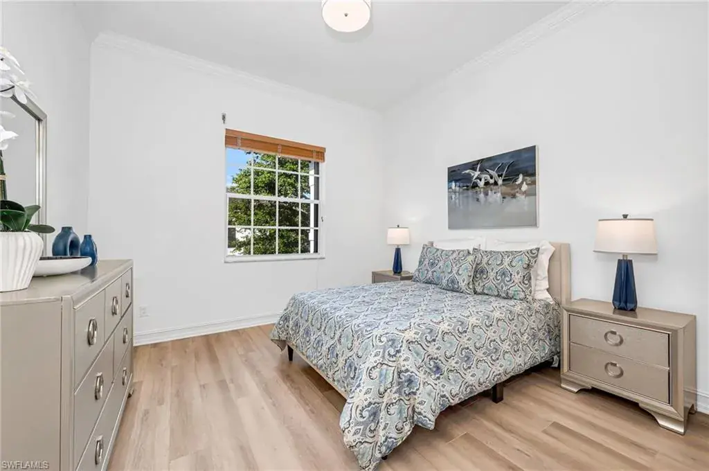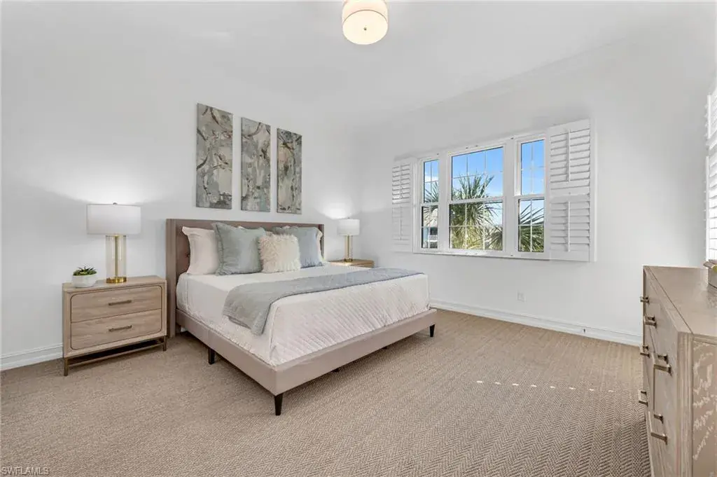 Coveted, second floor END UNIT overlooking a tranquil lake. Enjoy coffee on the screened lanai as natural morning light abounds. Kitchen and bathrooms have been re-imagined with KraftMaid dovetail cabinetry accompanied by quartz and granite countertops. Take advantage of various, roll outs, pot and pan drawers and extensive storage. The kitchen boasts stainless steel appliances with an abundance of counter service areas to prepare meals for guests and family. The floor plan allows for eat in kitchen at the counter, an area for formal dining or a meal on the lanai. All bedrooms recently painted in 2025; as well as newer lighting fixtures and fans in many areas. Breakwater 2nd Floor units enjoy oversized, 30’x 21′ garages which are a premium in Pelican Bay.