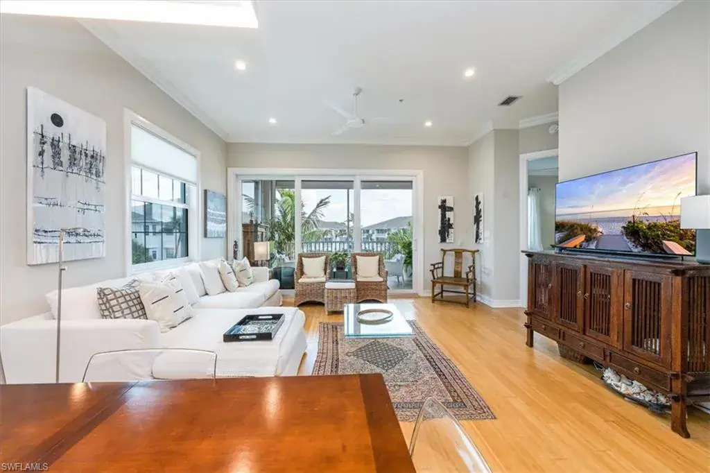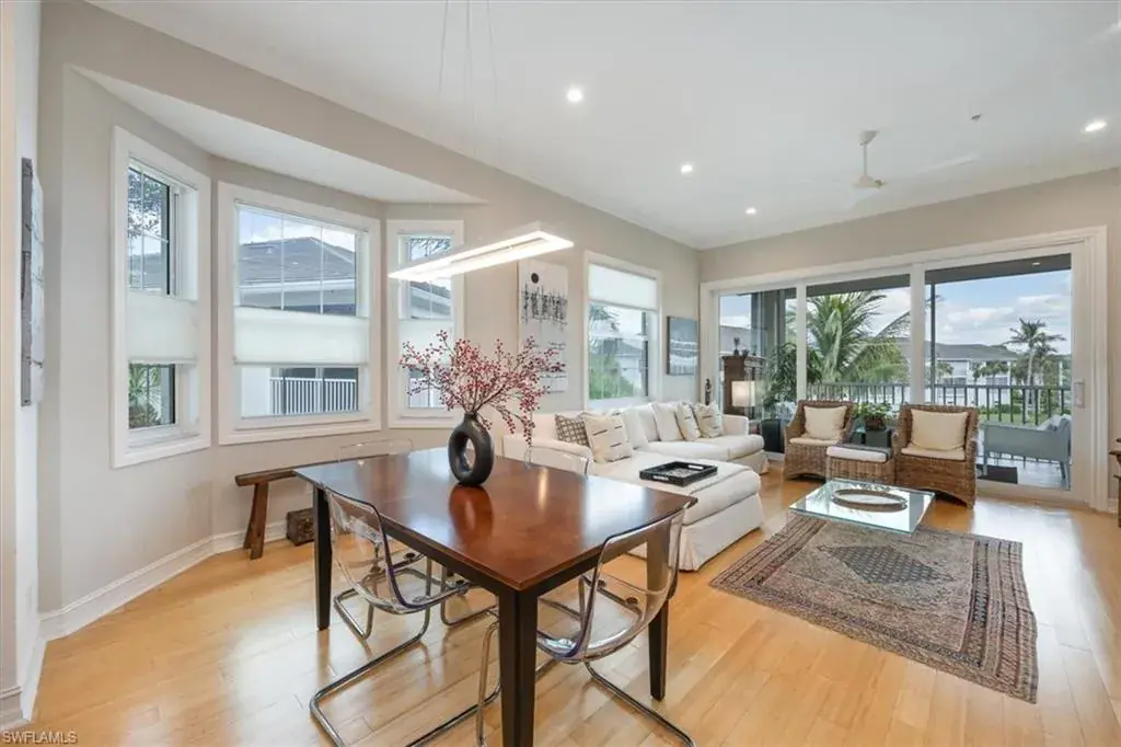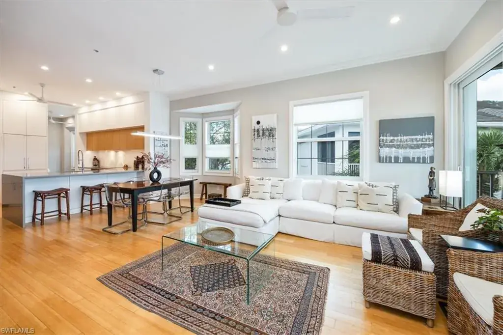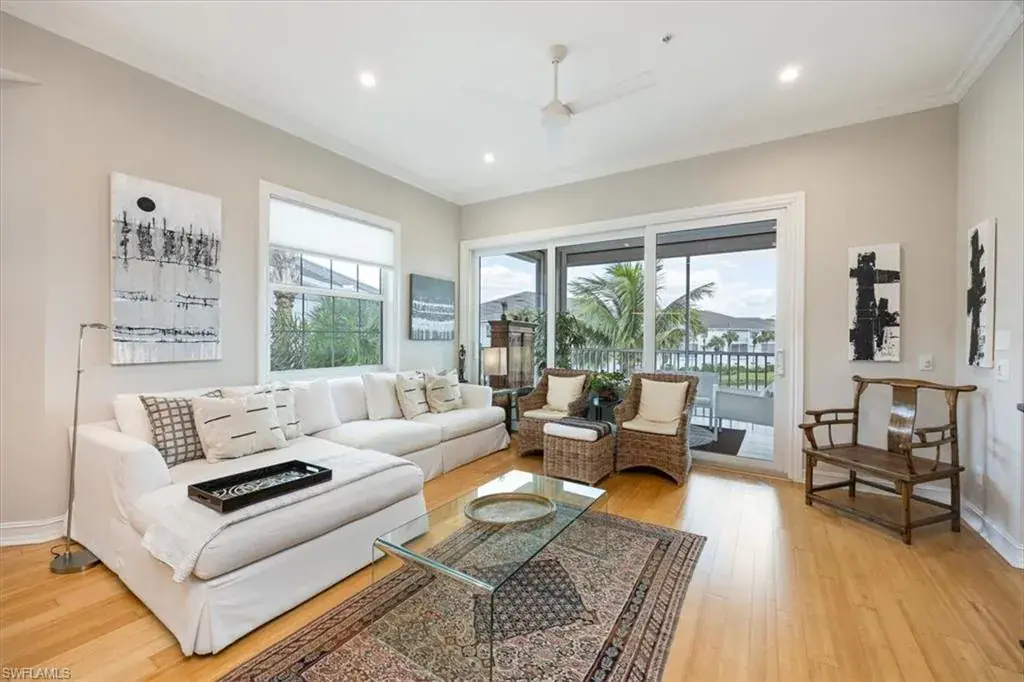 This top-floor, end-unit is the epitome of modern luxury living! Spanning over 1,800 square feet, this elegant home highlights 3 bedrooms, a den/office, 2.5 baths, and an oversized 2-car garage. The kitchen has been redesigned with custom cabinetry, premium appliances, an induction cooktop, a waterfall countertop, and pull-out drawers for added convenience. The spacious, light-filled primary suite includes two walk-in closets. Its ensuite bathroom is a tranquil retreat, featuring a soaking tub, floating vanity, herringbone tile surround, and custom-built cabinetry. The guest bedrooms are thoughtfully positioned away from the primary suite, ensuring privacy for all. Relax on the screen enclosed lanai which over looks the serene lake and water feature.  Additional upgrades include new impact-resistant windows and sliding glass doors, as well as an electric roll-down Kevlar shutter on the lanai!  Residents of Pelican Bay have access to two private beachfront pavilions, complete with food and beverage service, beach attendants, and various water activities. Additional amenities include a world-class tennis & pickle ball, fitness center, and 43 acres of parks and recreational areas. Close to Naples finest attractions. Breakwater is a Pet friendly community and offers a flexible rental policy!