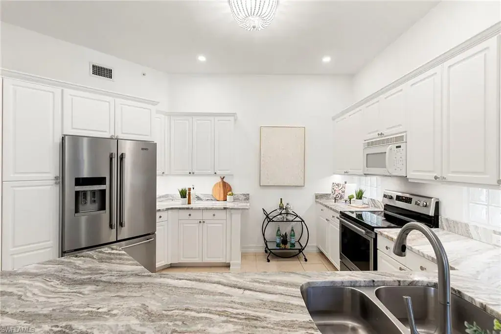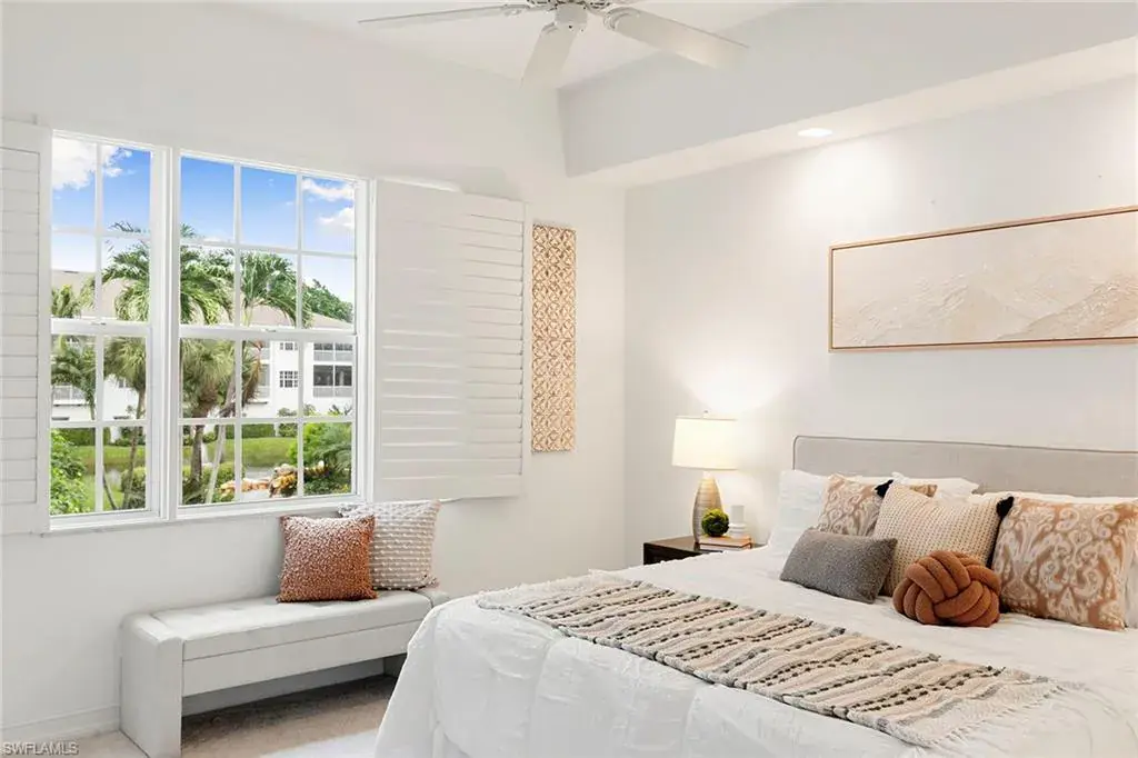Welcome to one of the most spacious floor plans in Breakwater, an ideal opportunity for those seeking comfort, privacy and the legendary Pelican Bay lifestyle. This bright end-unit condominium features four true bedrooms and two and a half baths, perfectly designed for hosting family and friends with ease. Tucked inside a gated enclave, you’ll enjoy elevator access from your oversized two-car garage to your first living level. The open-concept great room flows into the dining area and kitchen, which features a breakfast bar for casual meals. High ceilings and updated finishes include new kitchen counters, plantation shutters, lanai blinds, and stylish lighting, adding to the inviting feel. Recent improvements include a new roof (2022), exterior paint (2023), appliances, HVAC, and water heater replaced in 2018, making this condominium a smart choice for long-term enjoyment and peace of mind. Pelican Bay residents enjoy two private beach clubs with restaurants and chair service, attended fitness centers, tennis and miles of walking and biking paths. Breakwater also offers its own clubhouse, pool, spa, and fitness room for residents. If you’ve been searching for a spacious, low-maintenance condominium that makes it easy to live the Naples lifestyle and host the people you love, this is it.