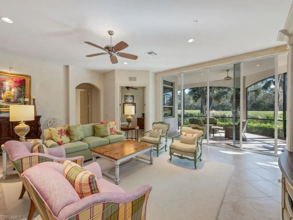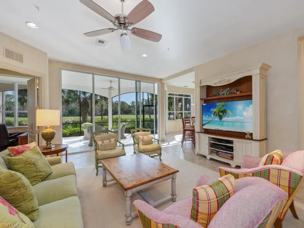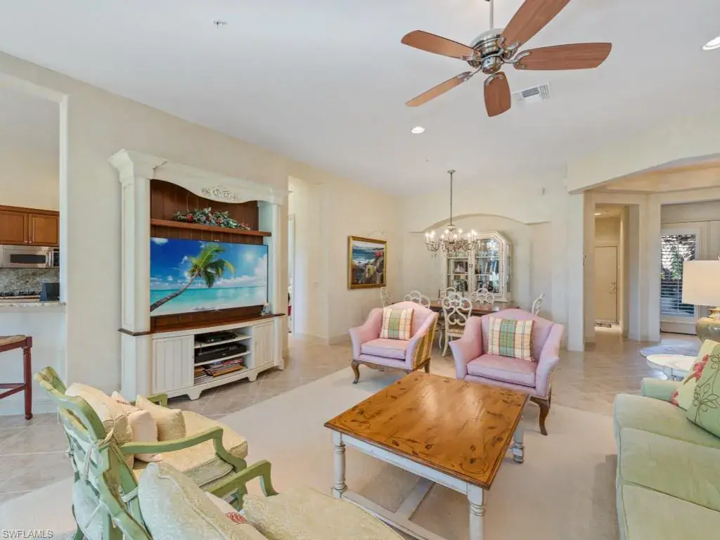 NO WAIT! GOLF MEMBERSHIP SLOT AVAILABLE IMMEDIATELY! | NEWLY RENOVATED PRIVATE BEACH CLUB! Located in the beautiful Mediterra golf & country club community of Naples, this exquisite coach home offers a harmonious blend of elegance and comfort. Bathed in natural light from expansive windows, the spacious layout boasts a versatile den and a luxurious primary suite complete with walk-in closets, private lanai access, and a spa-like bathroom featuring dual vanities, a soaking tub, and a separate shower. The premium kitchen, outfitted with stainless steel appliances and a cozy breakfast nook, is perfect for culinary enthusiasts and casual dining alike. Step onto the oversized screened lanai and be captivated by stunning golf course views. Enjoy the neighborhood pool and spa just steps from your door. Mediterra is a prestigious luxury golf & country club community featuring Two championship Tom-Fazio golf courses for avid golfers, a private beach club with restaurant & bar, multiple tennis courts, pickle-ball & bocce, fitness center, pristine bike & jogging trails, and luxurious dining at the private country club restaurant. The Mediterra Beach Club offers an escape to a 10,000 sq. ft two-story private oceanfront paradise on the Gulf of Mexico. Featuring a restaurant & bar that serves members via indoor & outdoor dining, this private facility boasts a heated swimming pool, a sundeck, and cabana beach service for chairs, umbrellas & refreshments.