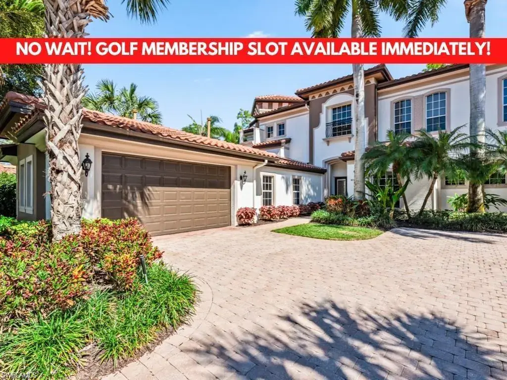 Boasting three bedrooms, a den and three bathrooms, and an attached two-car garage, this immaculate residence features an open floor plan with ample natural light flooding in from the glass sliding doors in the main living area. The well-appointed chefs kitchen is accented by stainless appliances and granite countertops. The spacious primary suite is indulgent with a walk-in closet, and luxurious en-suite bathroom. A generously sized screened lanai offering vibrant golf course views is perfect for relaxation. Mediterra is a prestigious luxury golf & country club community in Naples, featuring Two championship Tom-Fazio golf courses for avid golfers, a private beach club with a restaurant & bar, multiple tennis courts, pickle-ball & bocce, fitness center, pristine bike & jogging trails, and luxurious dining at the private country club restaurant. Don’t miss this exceptional opportunity to embrace the Naples lifestyle—schedule your showing today! NEWLY RENOVATED PRIVATE BEACH CLUB —The Mediterra Beach Club offers an escape to a 10,000 sq. ft two-story private oceanfront paradise on the Gulf of Mexico. Featuring a restaurant & bar that serves members via indoor & outdoor dining, this private facility boasts a heated swimming pool, a sundeck, and cabana beach service for chairs, umbrellas & refreshments.Discover luxurious living in this stunning first-floor coach home located in the Brendisi neighborhood of Mediterra. GOLF MEMBERSHIP SLOT AVAILABLE IMMEDIATELY.