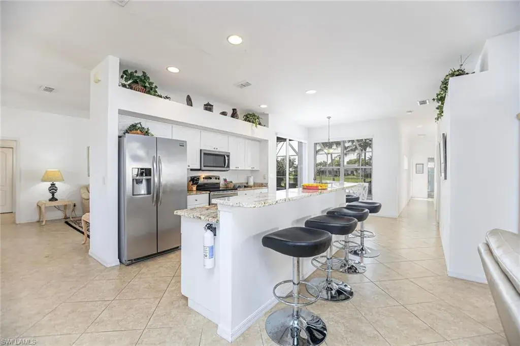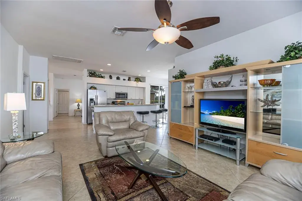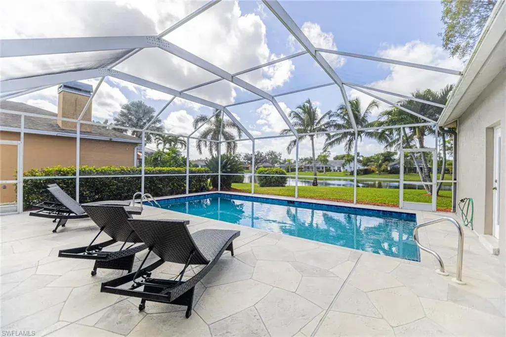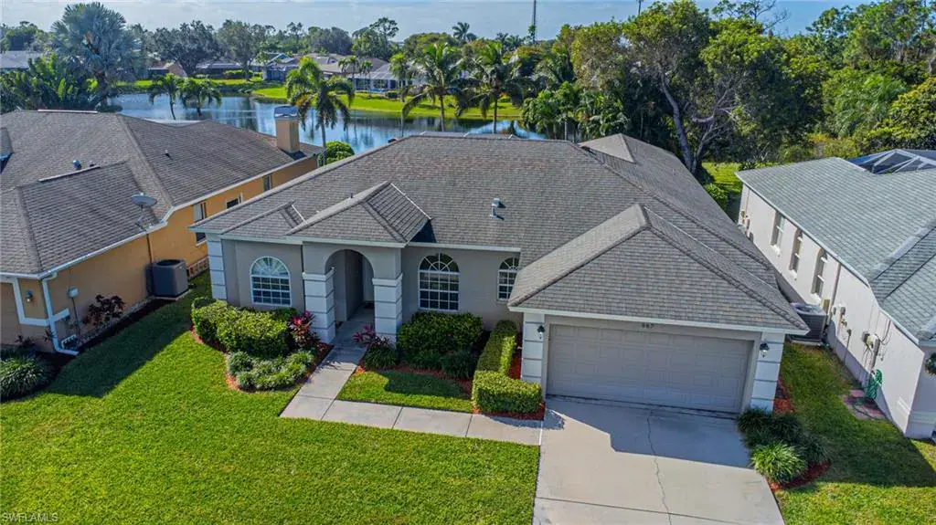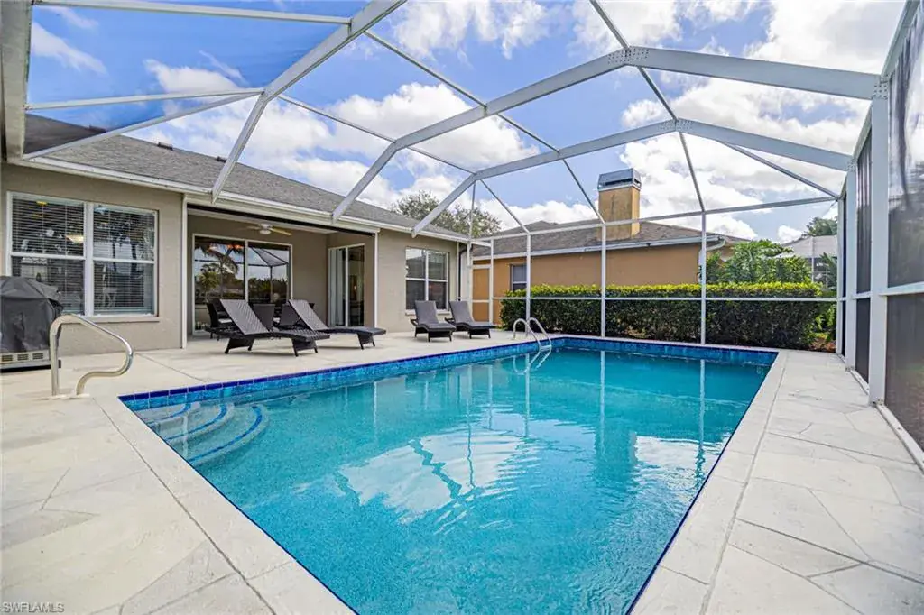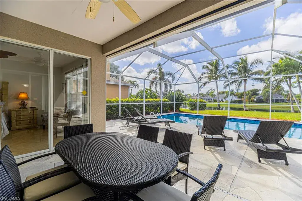 This striking Turnkey furnished home has a view of the pool and lake from almost every room. The moment you enter this home you are greeted by a striking view across its beautiful formal living area out to the lanai and very large swimming pool. Take in the sparkling lake with birds, ducks, turtles, otters and many other wildlife the lakes in our Briarwood community have become known for.