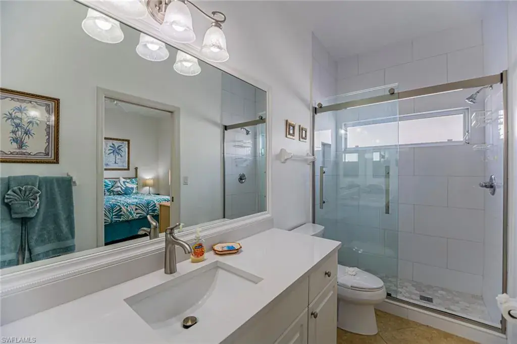 This 4 bedroom 3 bath home has to master suites with private bathroom, the 2 additional rooms share a 3rd bathroom that has convenient access out to the pool area.